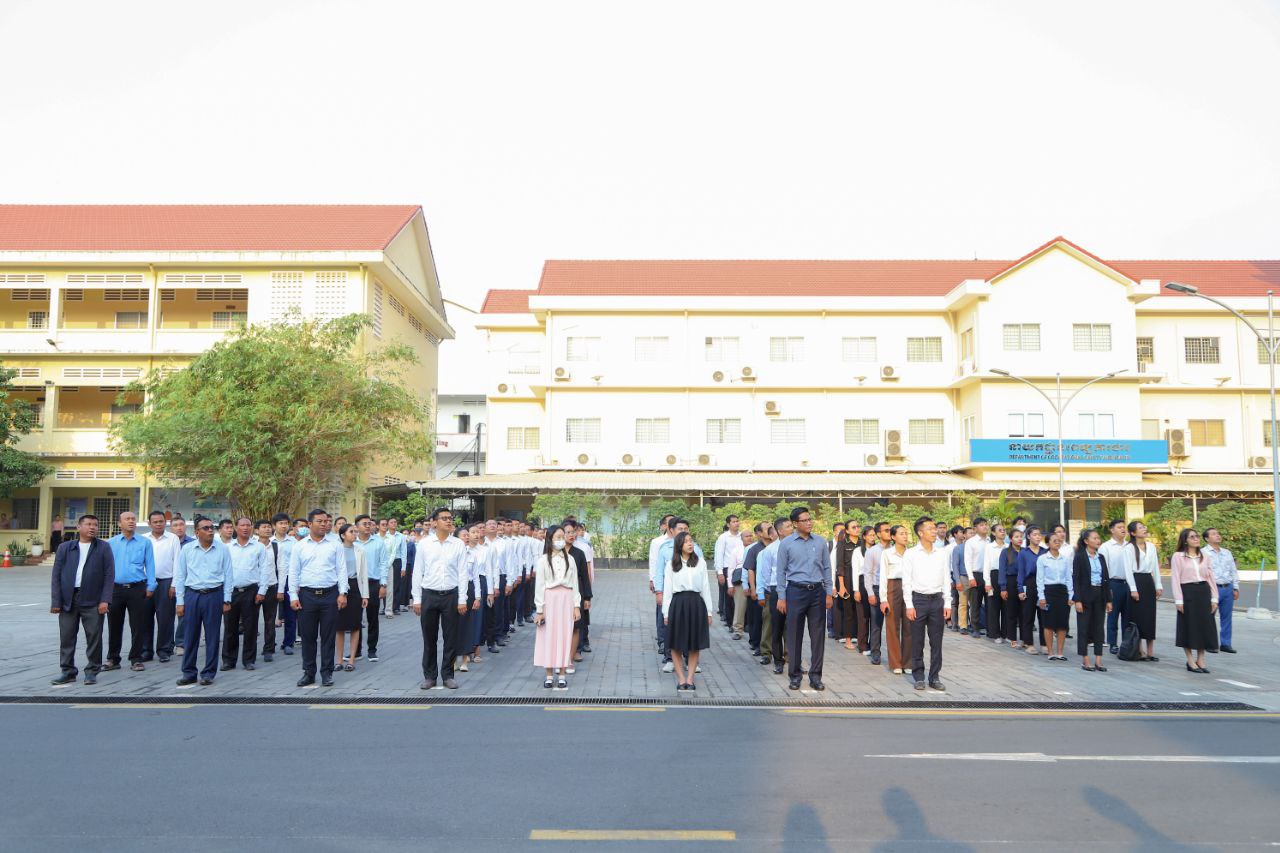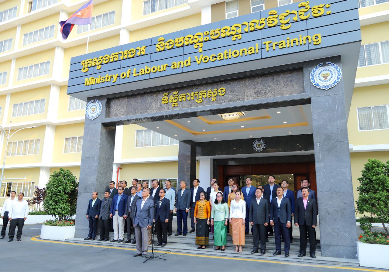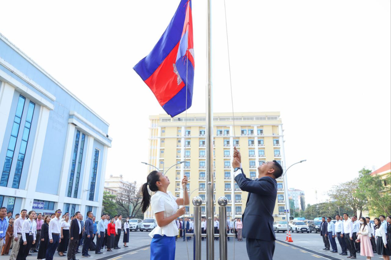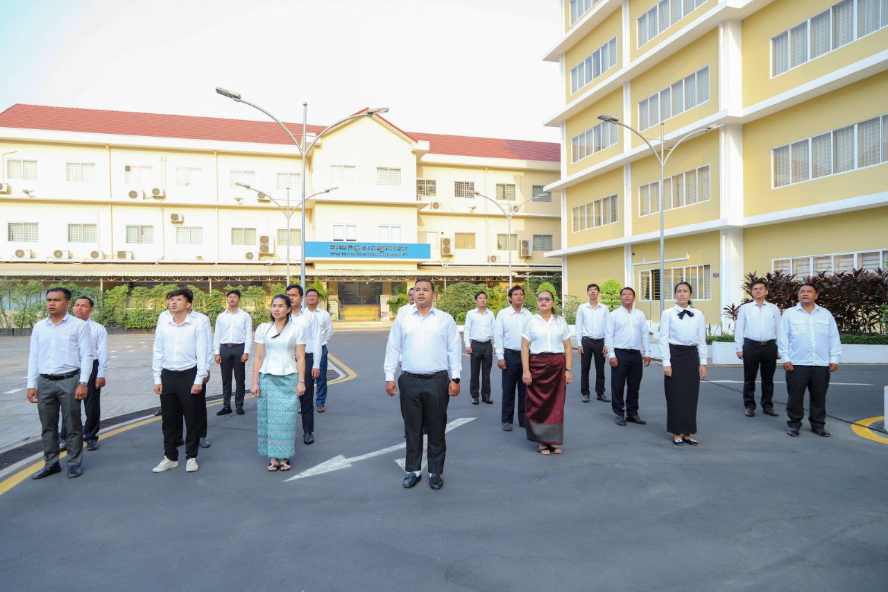 ថ្នាក់ដឹកនាំ និងមន្ត្រីរាជការនៃក្រសួងការងារ និងបណ្តុះបណ្តាលវិជ្ជាជីវៈ ចូលរួមគោរពទង់ជាតិនៃព្រះរាជាណាចក្រកម្ពុជា