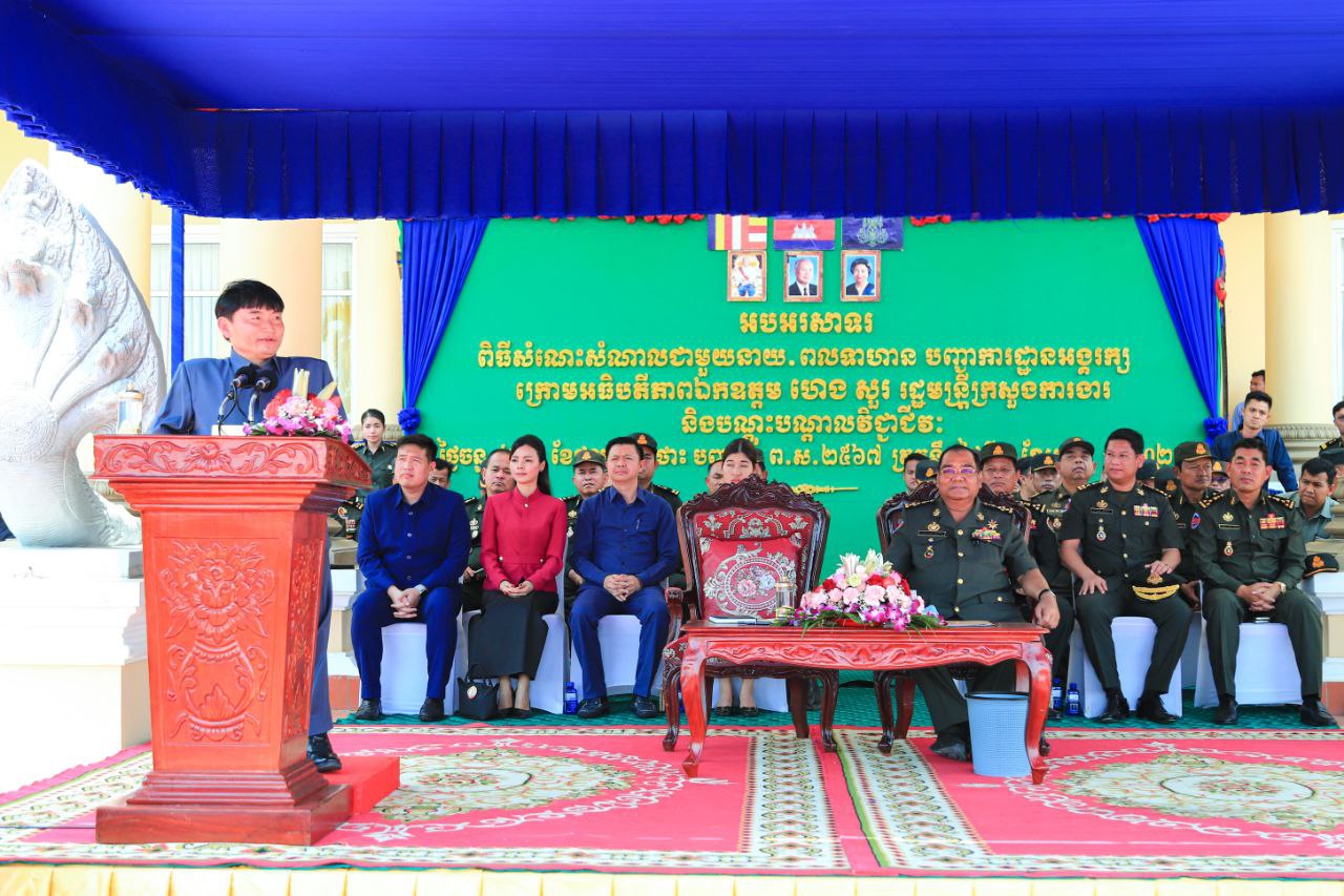 ក្នុងឱកាសនោះ ឯកឧត្តមរដ្ឋមន្ត្រី ក៏ផ្តាំផ្ញើសួរសុខទុក្ខពីសម្តេចមហាបវរធិបតី ហ៊ុន ម៉ាណែត នាយករដ្ឋមន្ត្រីនៃព្រះរាជាណចក្រកម្ពុជា ជូនចំពោះនាយទាហានជាន់ខ្ពស់ នាយទាហាន នាយទាហានរង និងពលទាហានគ្រប់រូប ដែលកំពុងតែមានវត្តមាននៅទីនេះផងដែរ៕