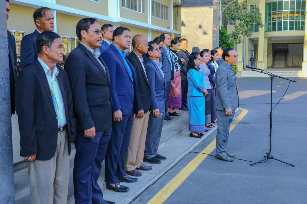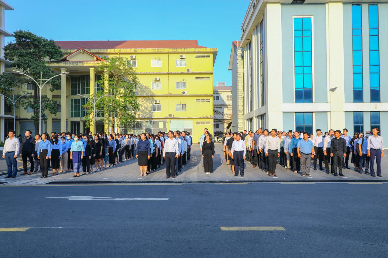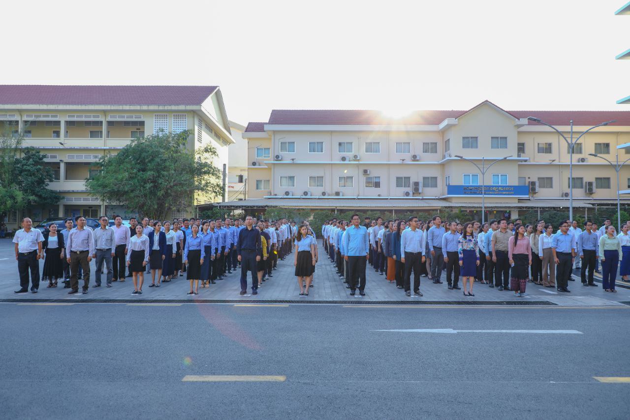 សូមជម្រាបជូនថា ក្រសួងការងារ និងបណ្តុះបណ្តាលវិជ្ជាជីវៈ បានរៀបចំកម្មវិធីគោរពទង់ជាតិមានចំនួនពីរដងក្នុងមួយសប្តាហ៍ ដែលត្រូវធ្វើឡើងជារៀងរាល់ម៉ោង ៧ព្រឹកនៃថ្ងៃចន្ទ និងរៀងរាល់ម៉ោង ៥ល្ងាចនៃថ្ងៃសុក្រ៕