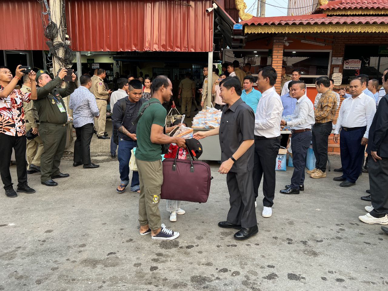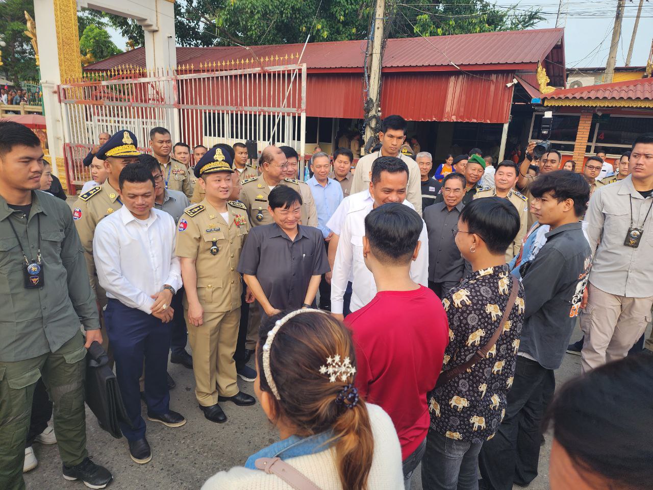 ឯកឧត្តម ហេង សួរ រដ្ឋមន្ត្រីក្រសួងការងារ និងបណ្តុះបណ្តាលវិជ្ជាជីវៈ នៅព្រឹកថ្ងៃទី៩ ខែមេសា ឆ្នាំ២០២៤នេះ បានអមដំណើរឯកឧត្តមអភិសន្តិបណ្ឌិត ស សុខា ឧបនាយករដ្ឋមន្ត្រី រដ្ឋមន្ត្រីក្រសួងមហាផ្ទៃ ចុះជួបសំណេះសំណាលសួរសុខទុក្ខបងប្អូនពលករ និងប្រជាពលរដ្ឋខ្មែរ ដែលវិលត្រឡប់ចូលព្រះរាជាណាចក្រកម្ពុជាវិញ តាមច្រកទ្វារព្រំដែនអន្តរជាតិដូង ក្នុងស្រុកកំរៀង ខេត្តបាត់ដំបង ក្នុងឱកាសបុណ្យចូលឆ្នាំថ្មីប្រពៃណីជាតិខ្មែរ៕