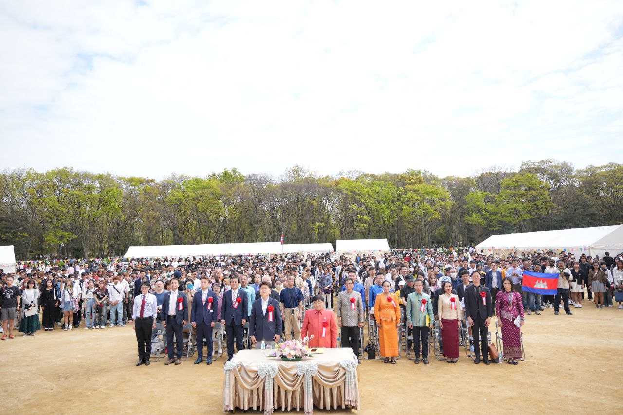 សូមបញ្ជាក់ថា ក្រសួងការងារ និងបណ្តុះបណ្តាលវិជ្ជាជីវៈ បានសហការជាមួយស្ថានឯកអគ្គរាជទូតនៃព្រះរាជាណាចក្រកម្ពុជាប្រចាំប្រទេសជប៉ុន ក្រុមការងារ ESEA និងសមាគមមិត្តយើង កាលពីថ្ងៃទី៧ ខែមេសា ឆ្នាំ២០២៤បានរៀបចំកម្មវិធី “សង្រ្កាន្តខ្មែរនៅជប៉ុន” ដើម្បីអបអរសាទរពិធីបុណ្យចូលឆ្នាំថ្មីប្រពៃណីខ្មែរ ឆ្នាំរោង ឆស័ក ព.ស. ២៥៦៨ នៅសួនអូសាកា(Osaka Castle)ក្នុងក្រុងអូសាកានៃខេត្តអូសាការបស់ប្រទេសជប៉ុន ក្រោមអធិបតីភាព ឯកឧត្តម ហេង សួរ រដ្ឋមន្ត្រីក្រសួងការងារ និងបណ្តុះបណ្តាលវិជ្ជាជីវៈ ដោយមានការអញ្ជើញចូលរួមពីឯកឧត្តមណាកាណុ ហីរូមាសា(Nakano Hiromasa) សមាជិករដ្ឋសភានៃប្រទេសជប៉ុន តំណាងអភិបាលខេត្ត និងក្រុងអូសាកា បងប្អូនសហគមន៍ខ្មែរ និស្សិត កម្មសិក្សាការី ពលករ និងភ្ញៀវកិត្តិយសជាតិ និងអន្តរជាតិសរុបជាង១ម៉ឺននាក់។