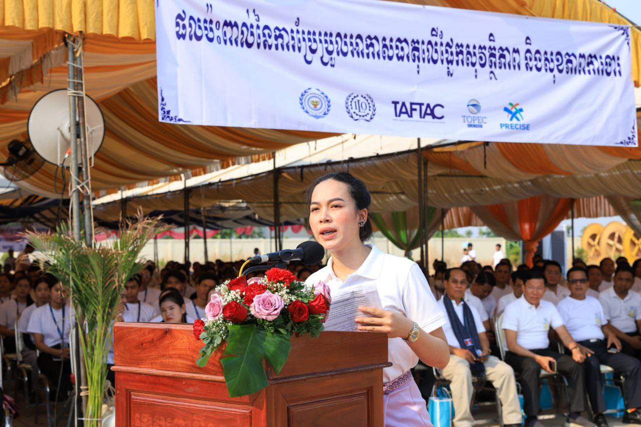 (ពោធិ៍សាត់)៖ ឯកឧត្តម ហេង សួរ រដ្ឋមន្ត្រីក្រសួងការងារ និងបណ្តុះបណ្តាលវិជ្ជាជីវៈ នៅព្រឹកថ្ងៃព្រហស្បតិ៍ ទី២ ខែឧសភា ឆ្នាំ២០២៤នេះ បានអញ្ជើញជាអធិបតីក្នុងទិវាពិភពលោកដើម្បីសុវត្ថិភាព និងសុខភាពការងារ២៨ មេសា ក្រោមប្រធានបទ “ផលប៉ះពាល់នៃការប្រែប្រួលអាកាសធាតុ លើផ្នែកសុវត្ថិភាព និងសុខភាពការងារ” ដែលធ្វើឡើងនៅក្នុងក្រុមហ៊ុន ថូភេក អេឡិកទ្រិក ឯ.ក នាខេត្តពោធិ៍សាត់ ដោយមានការចូលរួមពីឯកឧត្តម ខូយ រីដា អភិបាលខេត្តពោធិ៍សាត់ តំណាងអង្គការអន្តរជាតិខាងការងារ(ILO) តំណាងភាគីនិយោជក និងតំណាងភាគីសហជីព។