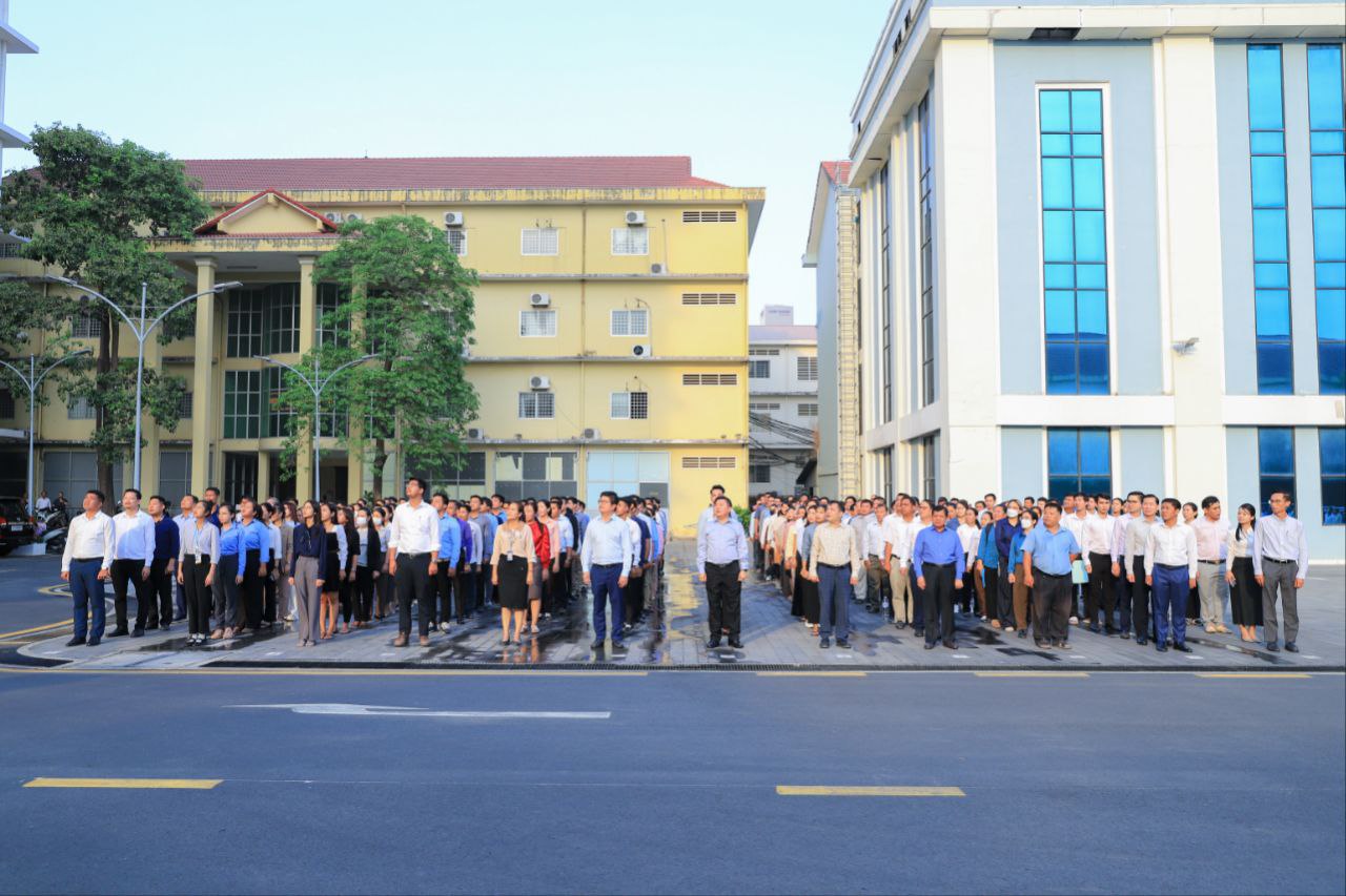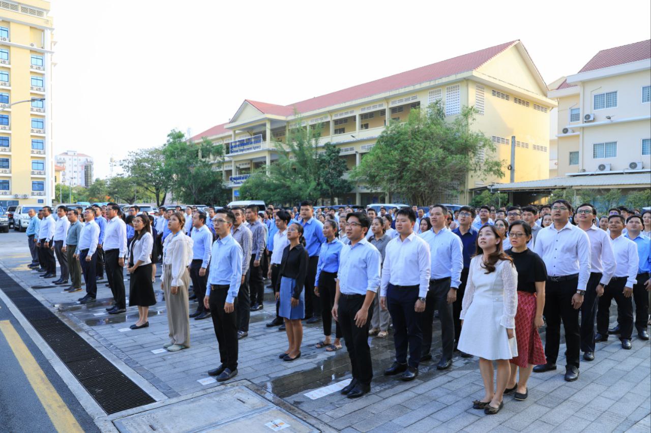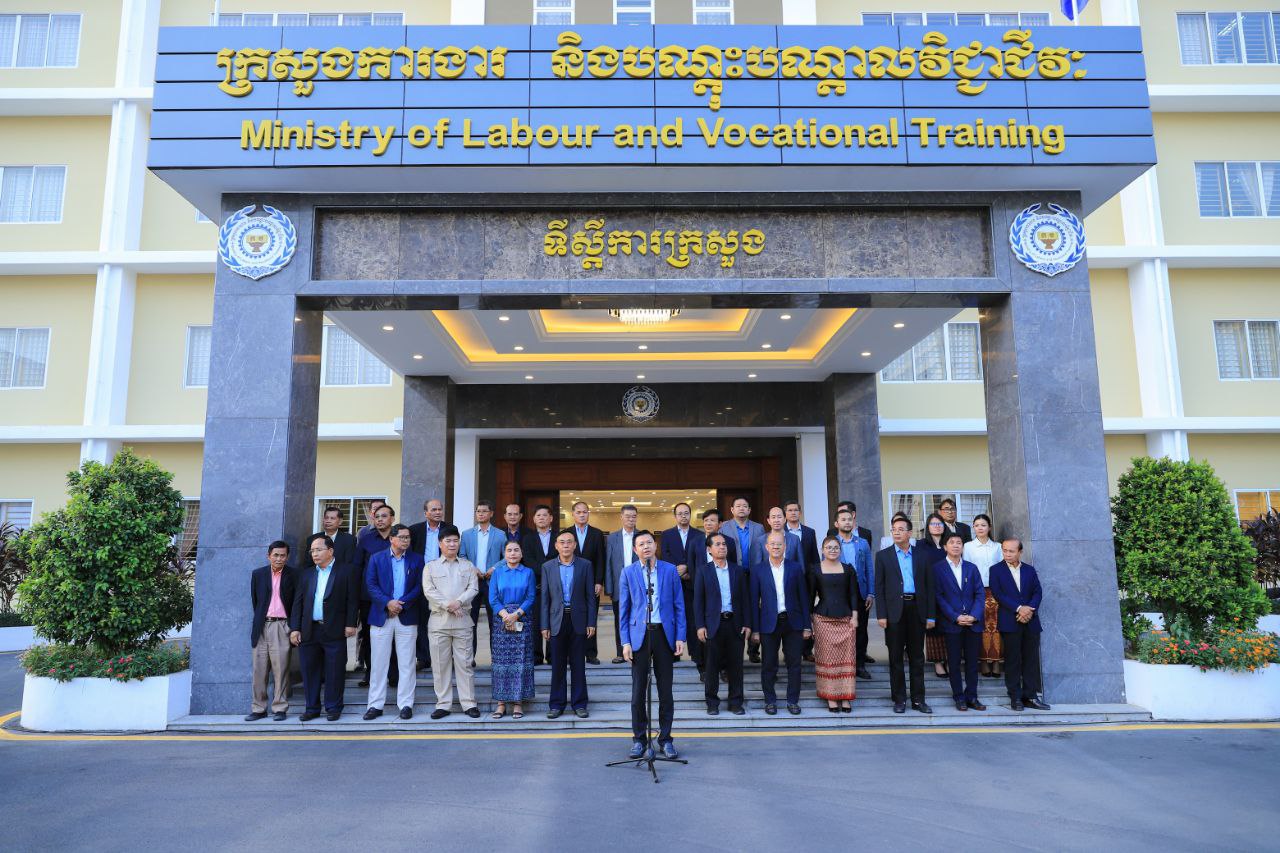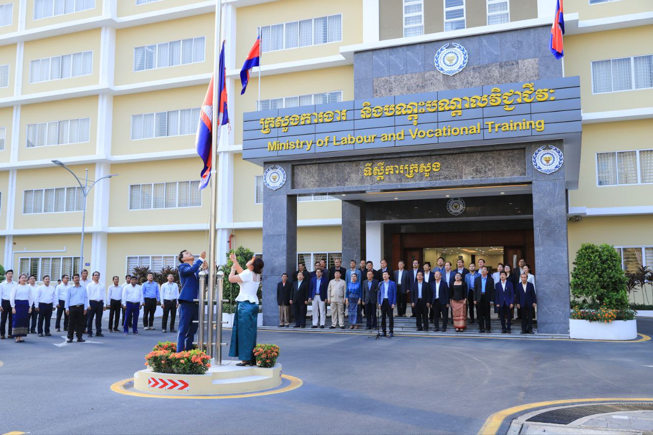 ថ្នាក់ដឹកនាំ និងមន្ត្រីរាជការនៃក្រសួងការងារ និងបណ្តុះបណ្តាលវិជ្ជាជីវៈ ចូលរួមគោរពទង់ជាតិនៃព្រះរាជាណាចក្រកម្ពុជា