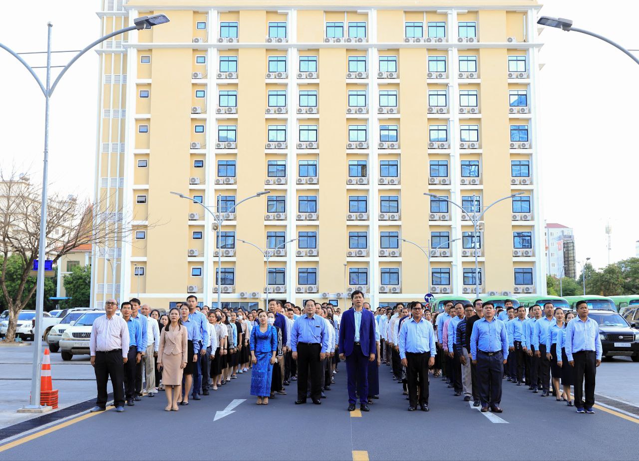 នាល្ងាចថ្ងៃសុក្រទី១០ ខែឧសភា ឆ្នាំ២០២៤ ថ្នាក់ដឹកនាំ និងមន្ត្រីរាជការនៃក្រសួងការងារ និងបណ្តុះបណ្តាលវិជ្ជាជីវៈ បានចូលរួមគោរពទង់ជាតិនៃព្រះរាជាណាចក្រកម្ពុជា ដោយច្រៀងចម្រៀងបទ «នគររាជ» និងច្រៀងបទ «ពង្សាវតាខ្មែរ» ដោយផ្ទាល់រួមគ្នា។