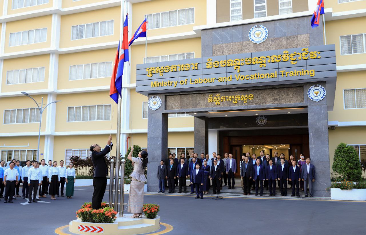 សូមជម្រាបជូនថា ក្រសួងការងារ និងបណ្តុះបណ្តាលវិជ្ជាជីវៈ បានរៀបចំកម្មវិធីគោរពទង់ជាតិមានចំនួនពីរដងក្នុងមួយសប្តាហ៍ ដែលត្រូវធ្វើឡើងជារៀងរាល់ម៉ោង ៧ព្រឹកនៃថ្ងៃចន្ទ និងរៀងរាល់ម៉ោង ៥ល្ងាចនៃថ្ងៃសុក្រ៕
