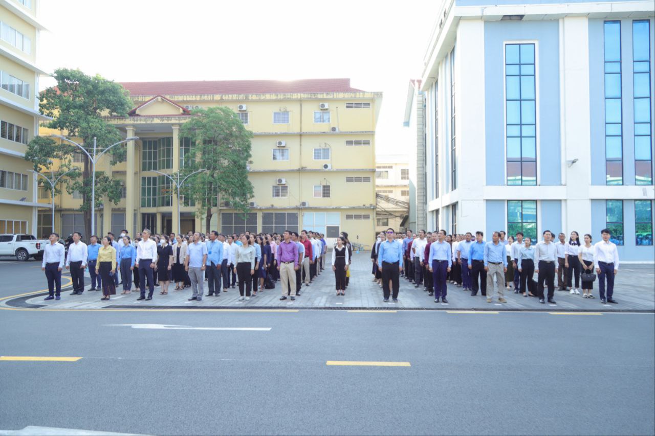 នាព្រឹកថ្ងៃចន្ទ ទី១៣ ខែឧសភា ឆ្នាំ២០២៤ ថ្នាក់ដឹកនាំ និងមន្ត្រីរាជការនៃក្រសួងការងារ និងបណ្តុះបណ្តាលវិជ្ជាជីវៈ បានចូលរួមគោរពទង់ជាតិនៃព្រះរាជាណាចក្រកម្ពុជា ដោយច្រៀងចម្រៀងបទ «នគររាជ» និងច្រៀងបទ «ពង្សាវតាខ្មែរ» ដោយផ្ទាល់រួមគ្នា។