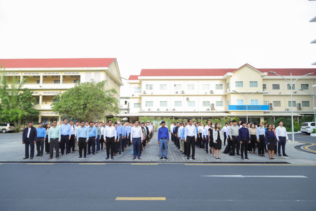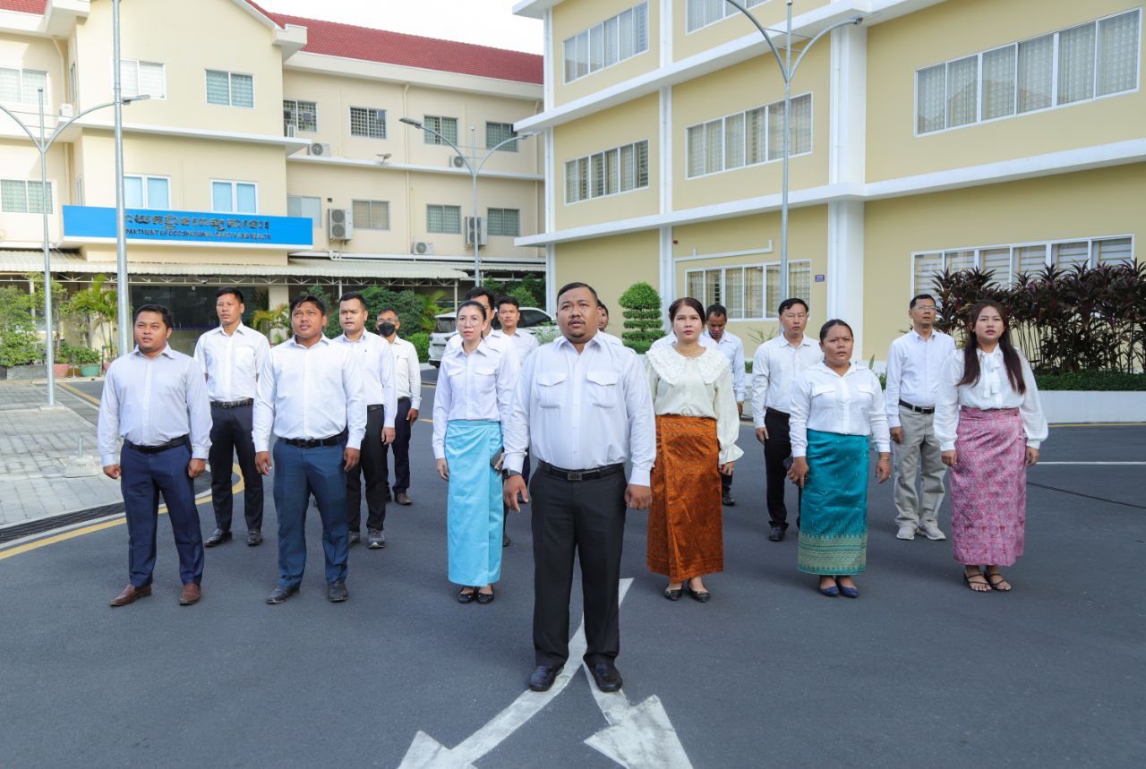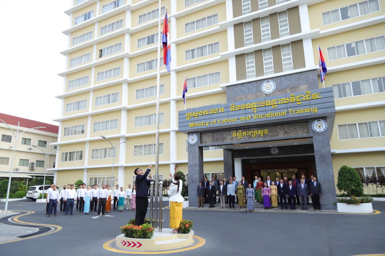 ថ្នាក់ដឹកនាំ និងមន្ត្រីរាជការនៃក្រសួងការងារ និងបណ្តុះបណ្តាលវិជ្ជាជីវៈ ចូលរួមគោរពទង់ជាតិនៃព្រះរាជាណាចក្រកម្ពុជា