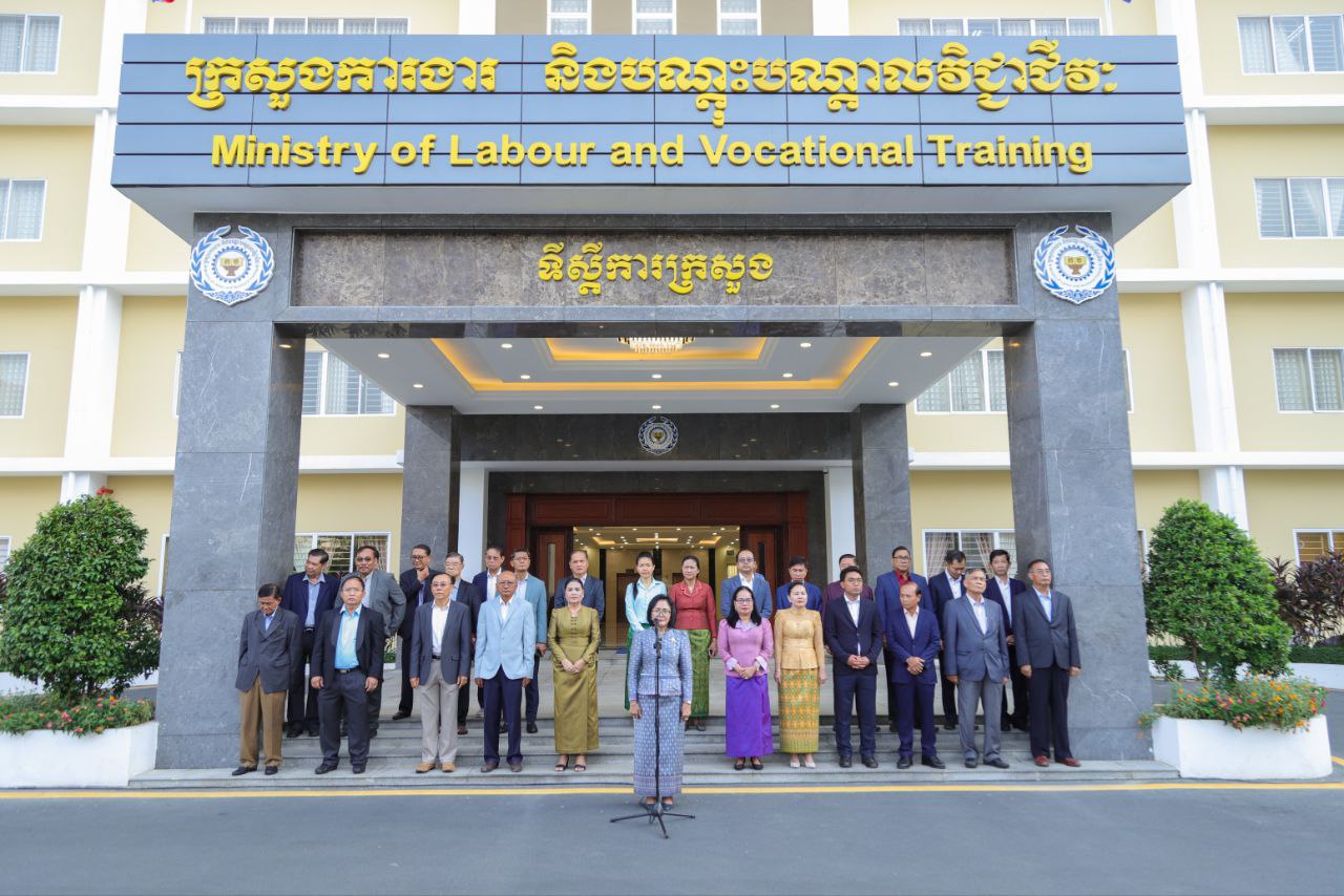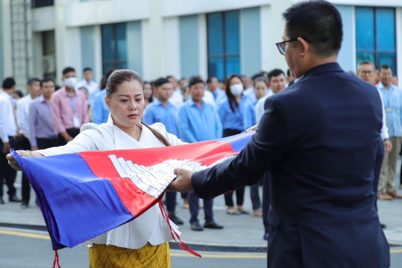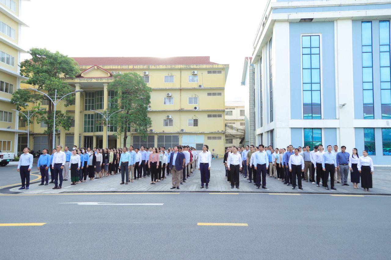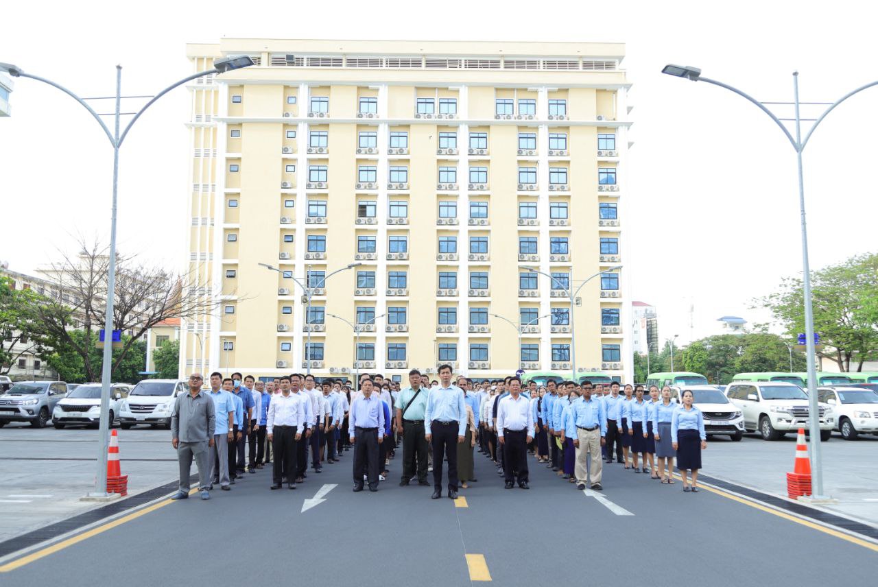 ថ្នាក់ដឹកនាំ និងមន្ត្រីរាជការនៃក្រសួងការងារ និងបណ្តុះបណ្តាលវិជ្ជាជីវៈ ចូលរួមគោរពទង់ជាតិនៃព្រះរាជាណាចក្រកម្ពុជា