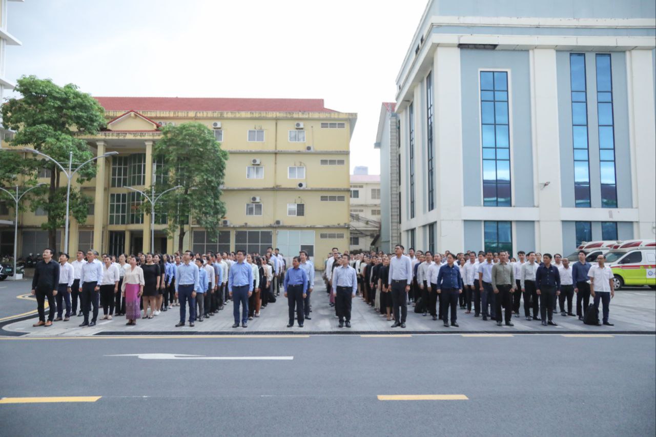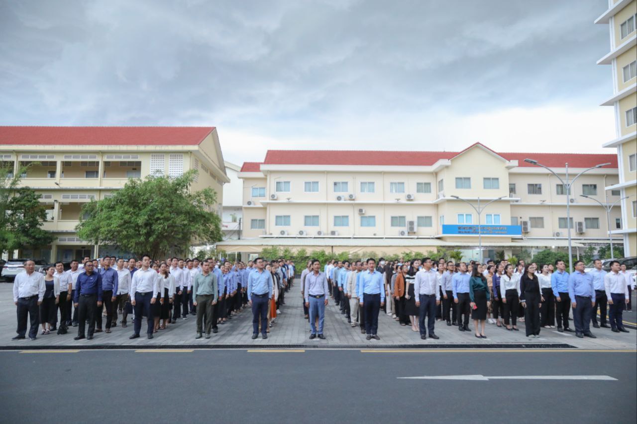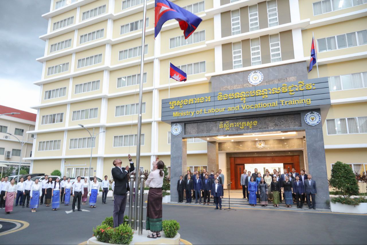 ថ្នាក់ដឹកនាំ និងមន្ត្រីរាជការនៃក្រសួងការងារ និងបណ្តុះបណ្តាលវិជ្ជាជីវៈ ចូលរួមគោរពទង់ជាតិនៃព្រះរាជាណាចក្រកម្ពុជា