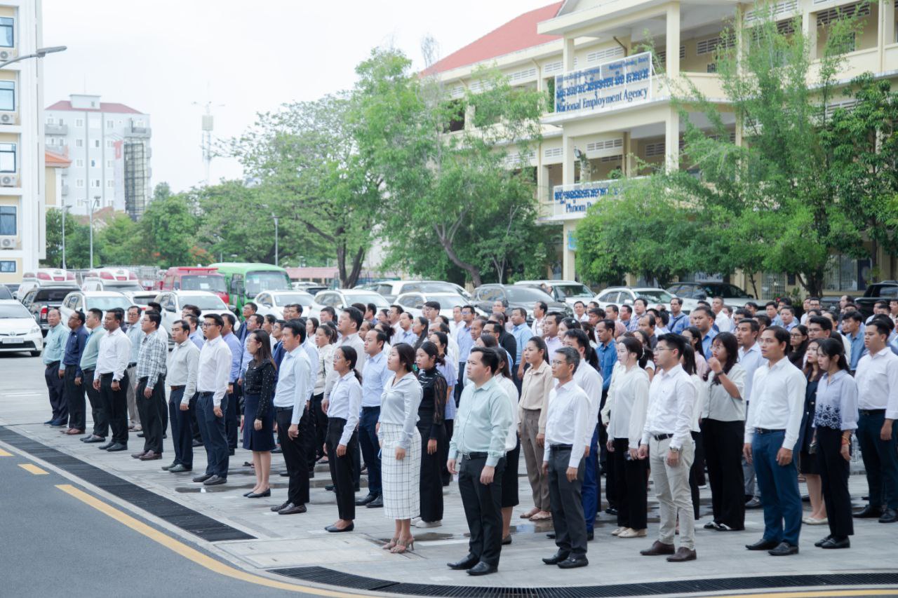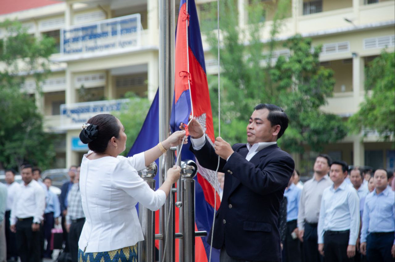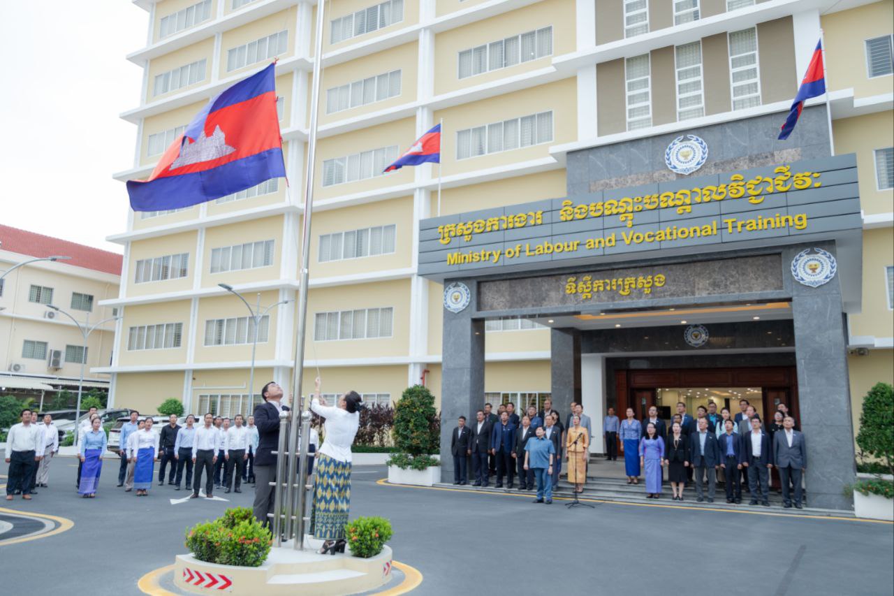 ថ្នាក់ដឹកនាំ និងមន្ត្រីរាជការនៃក្រសួងការងារ និងបណ្តុះបណ្តាលវិជ្ជាជីវៈ ចូលរួមគោរពទង់ជាតិនៃព្រះរាជាណាចក្រកម្ពុជា