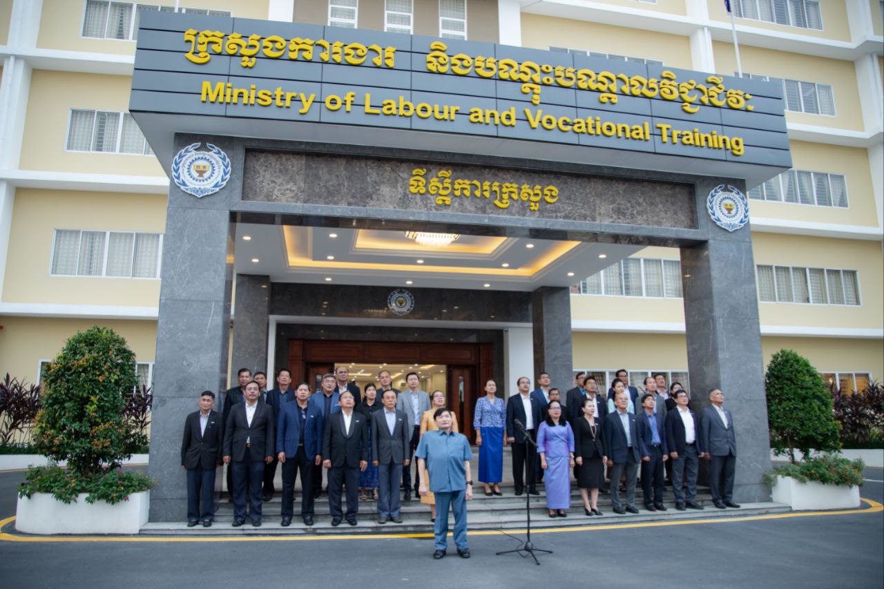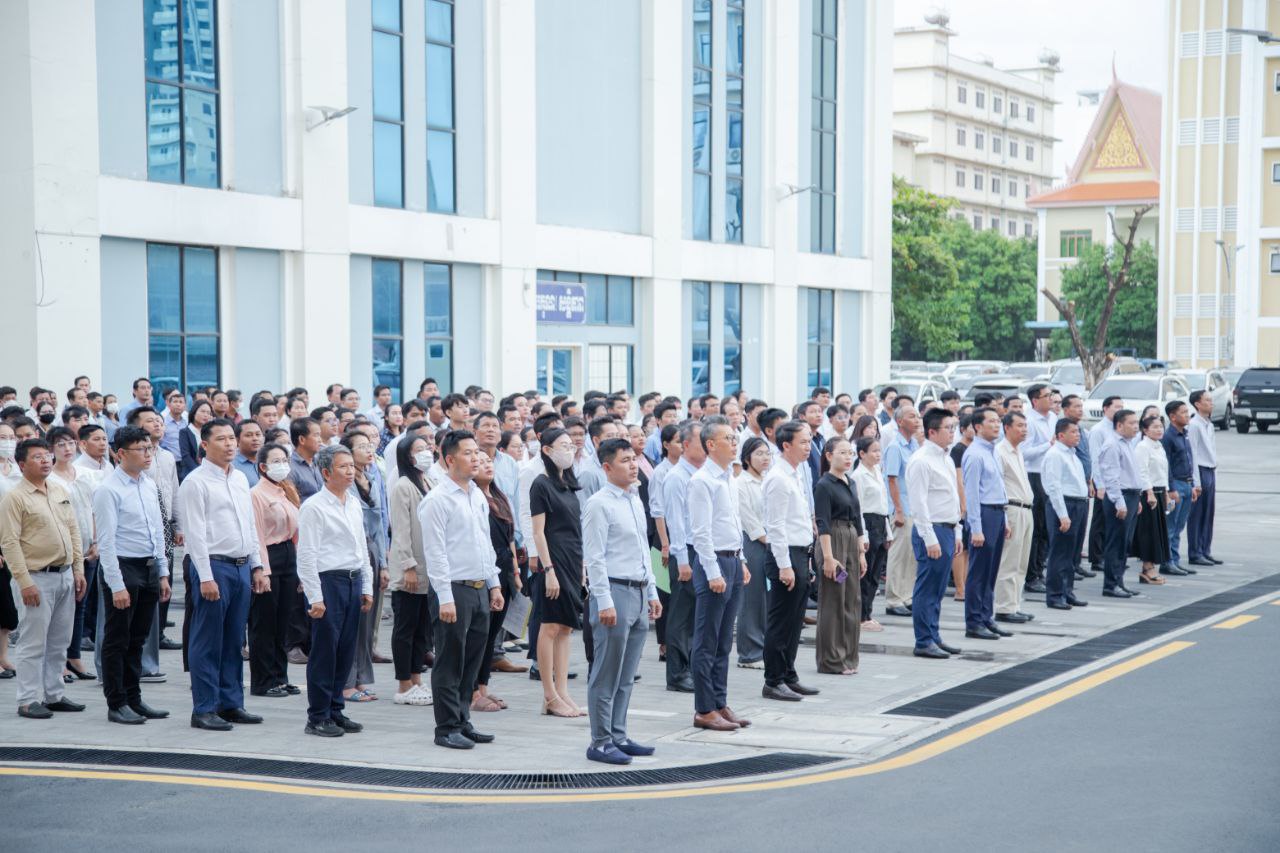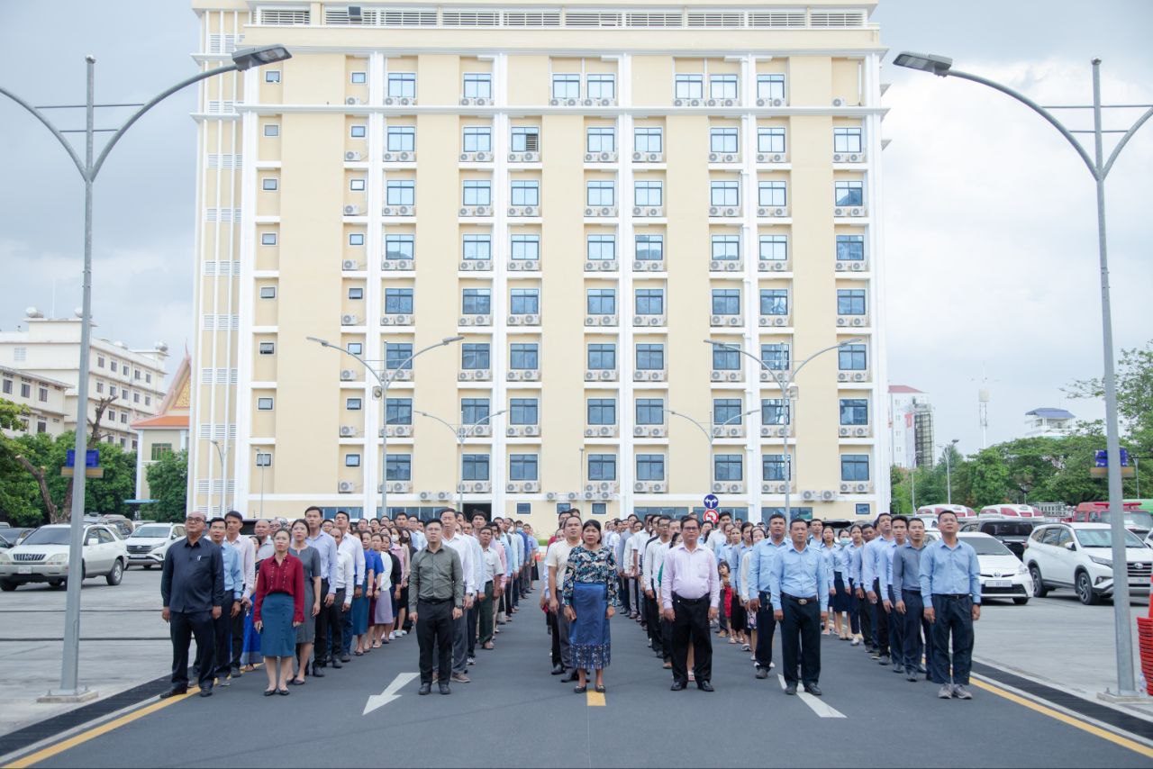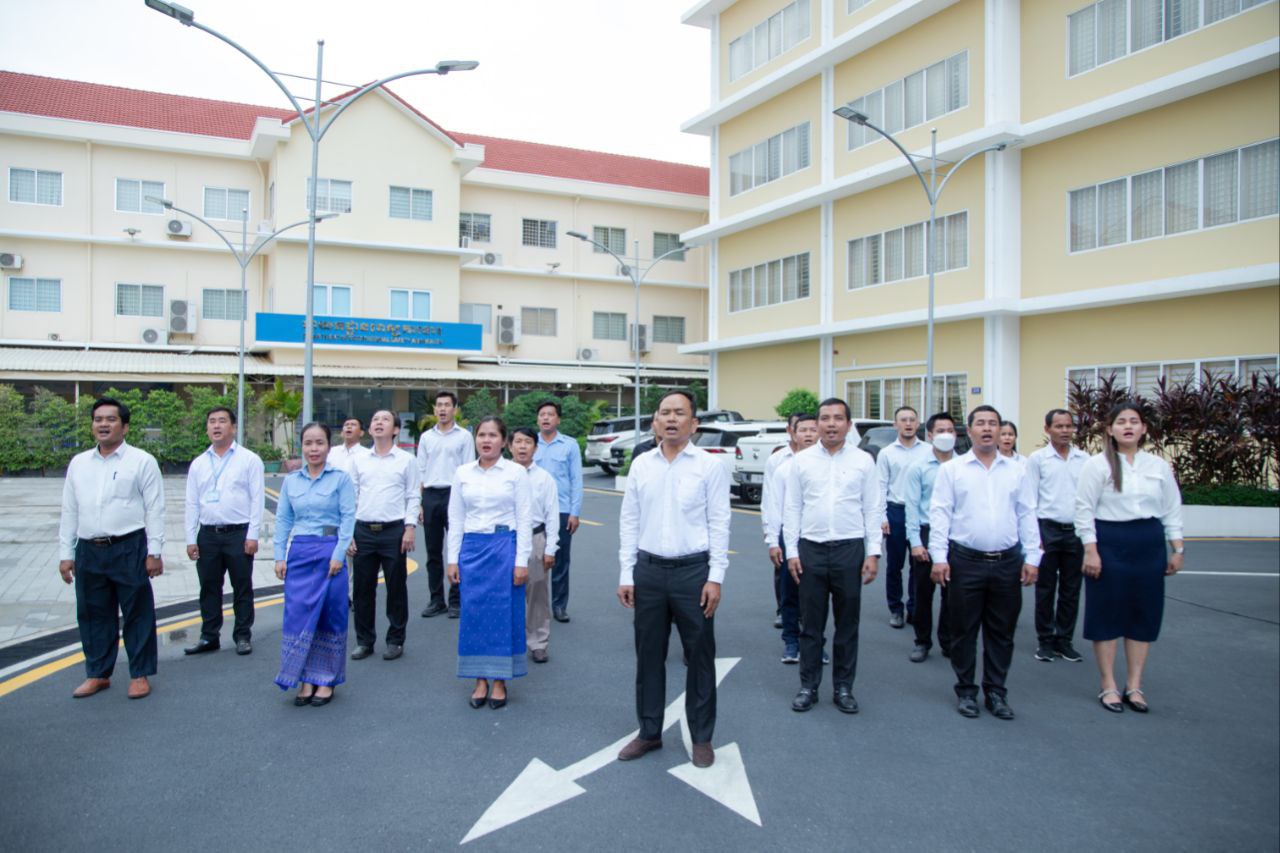 ថ្នាក់ដឹកនាំ និងមន្ត្រីរាជការនៃក្រសួងការងារ និងបណ្តុះបណ្តាលវិជ្ជាជីវៈ ចូលរួមគោរពទង់ជាតិនៃព្រះរាជាណាចក្រកម្ពុជា