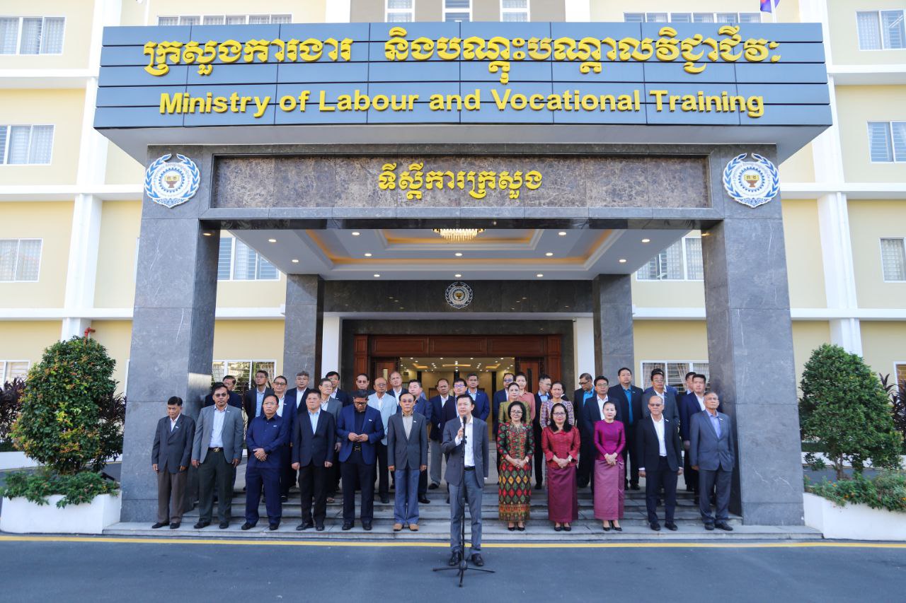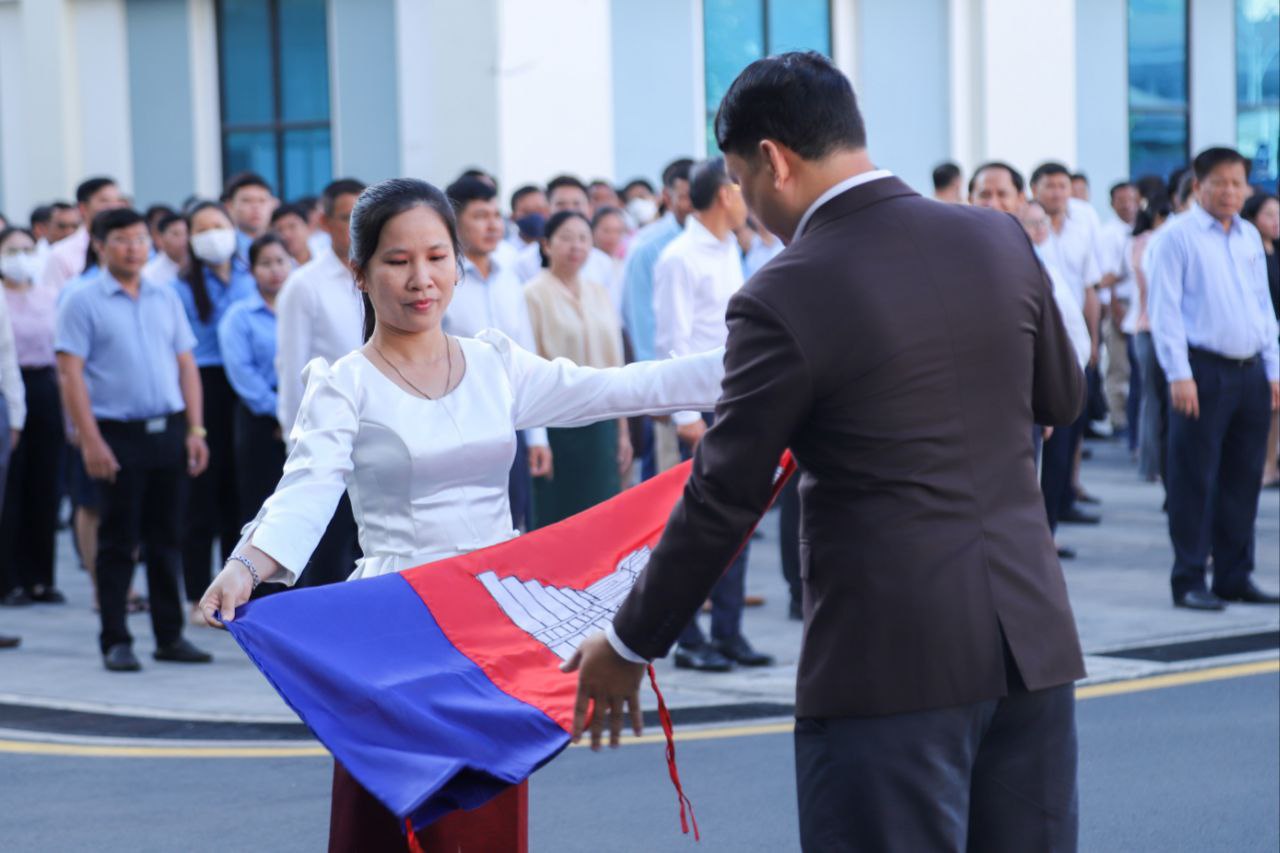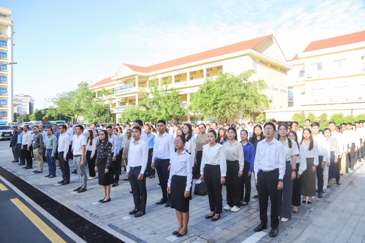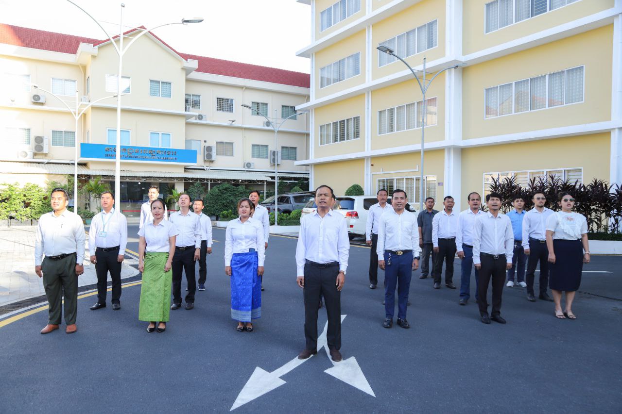 ថ្នាក់ដឹកនាំ និងមន្ត្រីរាជការនៃក្រសួងការងារ និងបណ្តុះបណ្តាលវិជ្ជាជីវៈ ចូលរួមគោរពទង់ជាតិនៃព្រះរាជាណាចក្រកម្ពុជា
