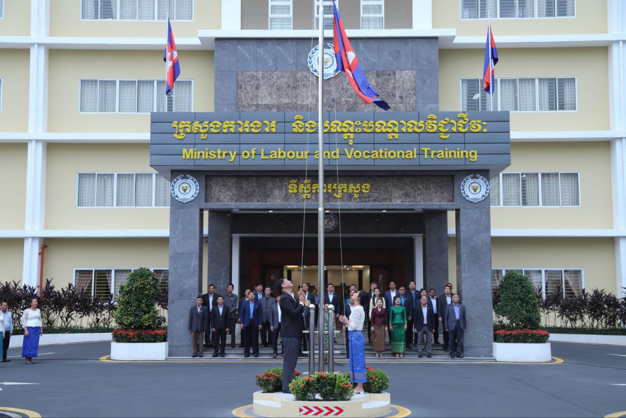 សូមជម្រាបជូនថា ក្រសួងការងារ និងបណ្តុះបណ្តាលវិជ្ជាជីវៈ បានរៀបចំកម្មវិធីគោរពទង់ជាតិមានចំនួនពីរដងក្នុងមួយសប្តាហ៍ ដែលត្រូវធ្វើឡើងជារៀងរាល់ម៉ោង ៧ព្រឹកនៃថ្ងៃចន្ទ និងរៀងរាល់ម៉ោង ៥ល្ងាចនៃថ្ងៃសុក្រ៕