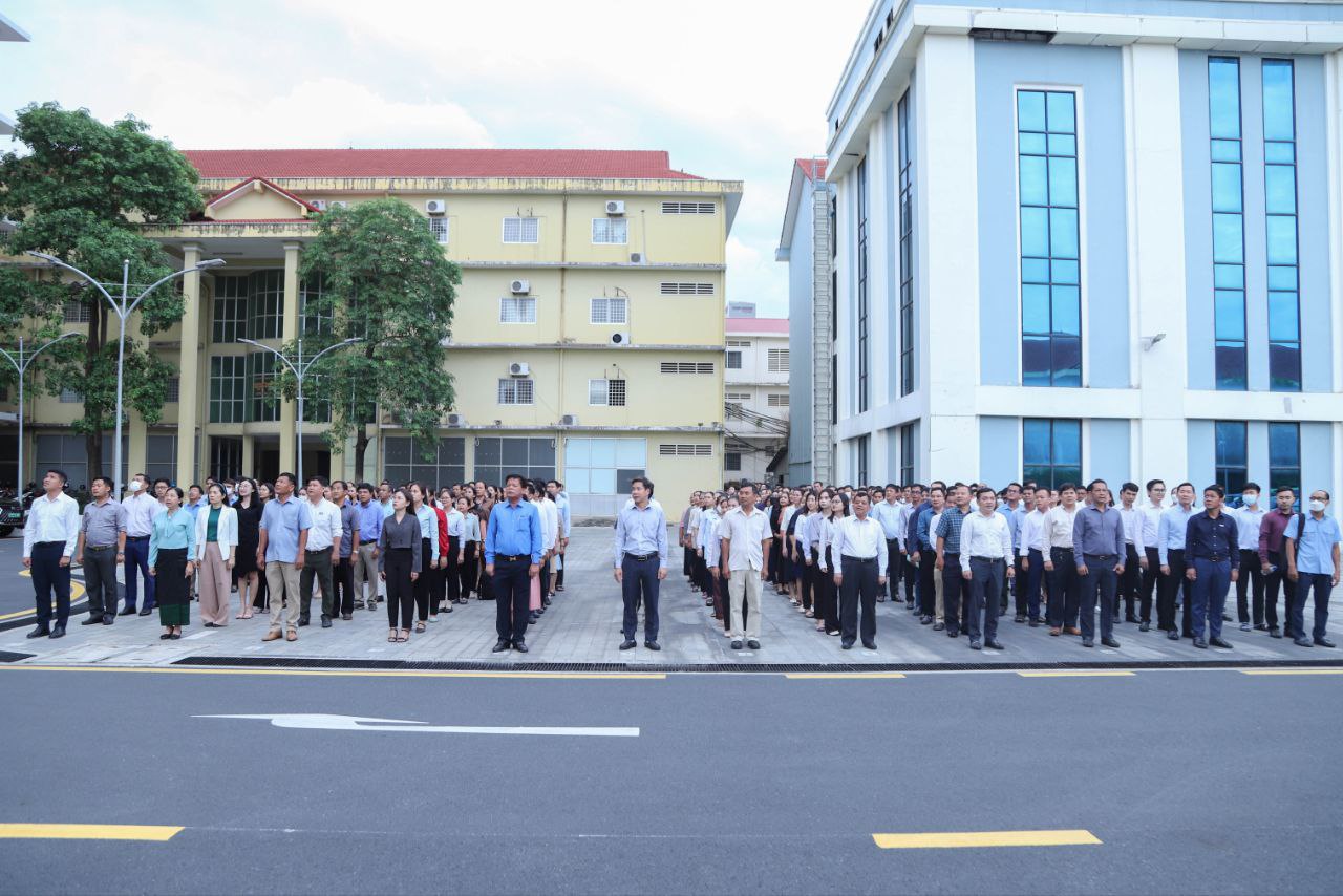 នាល្ងាចថ្ងៃសុក្រ ទី២១ ខែមិថុនា ឆ្នាំ២០២៤ ថ្នាក់ដឹកនាំ និងមន្ត្រីរាជការនៃក្រសួងការងារ និងបណ្តុះបណ្តាលវិជ្ជាជីវៈ បានចូលរួមគោរពទង់ជាតិនៃព្រះរាជាណាចក្រកម្ពុជា ដោយច្រៀងចម្រៀងបទ «នគររាជ» និងច្រៀងបទ «ពង្សាវតារខ្មែរ» ដោយផ្ទាល់រួមគ្នា។