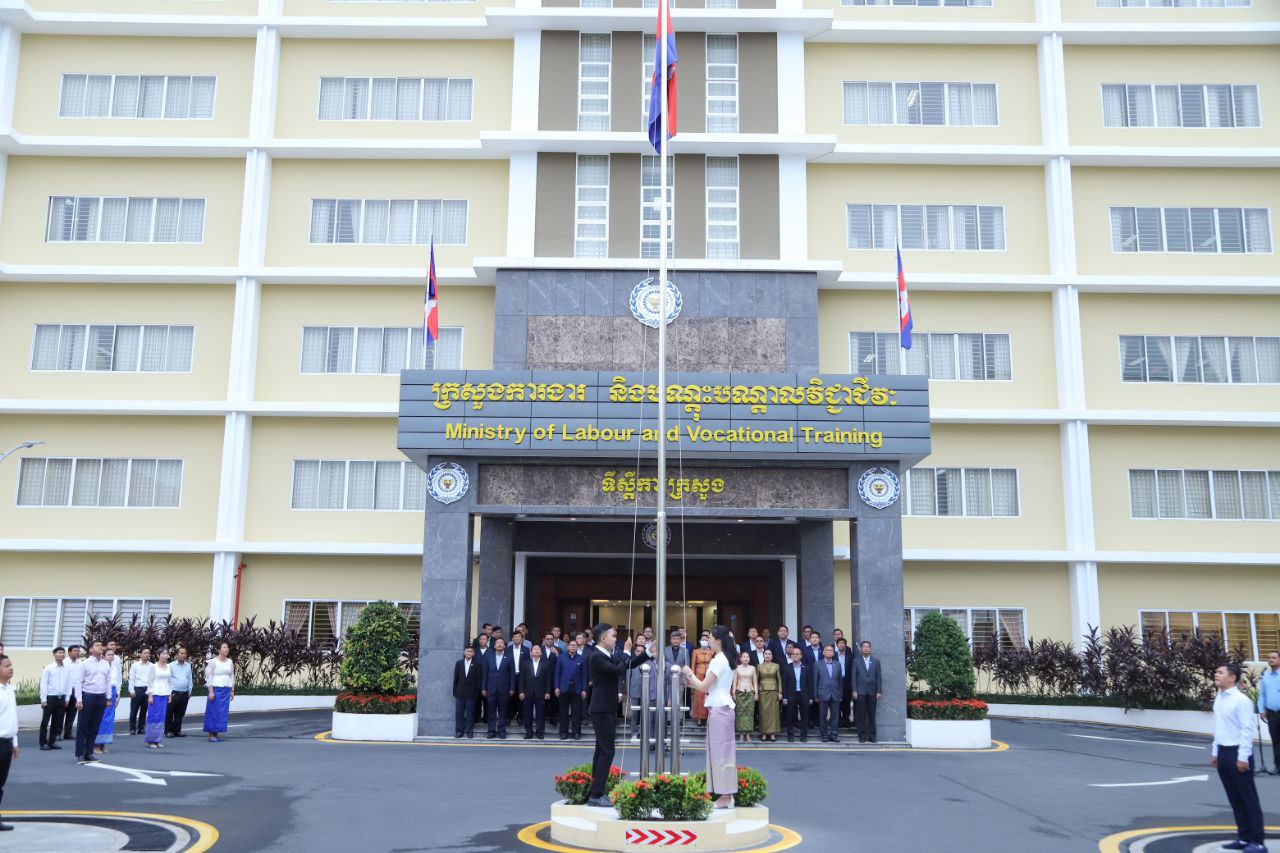 សូមជម្រាបជូនថា ក្រសួងការងារ និងបណ្តុះបណ្តាលវិជ្ជាជីវៈ បានរៀបចំកម្មវិធីគោរពទង់ជាតិមានចំនួនពីរដងក្នុងមួយសប្តាហ៍ ដែលត្រូវធ្វើឡើងជារៀងរាល់ម៉ោង ៧ព្រឹកនៃថ្ងៃចន្ទ និងរៀងរាល់ម៉ោង ៥ល្ងាចនៃថ្ងៃសុក្រ៕