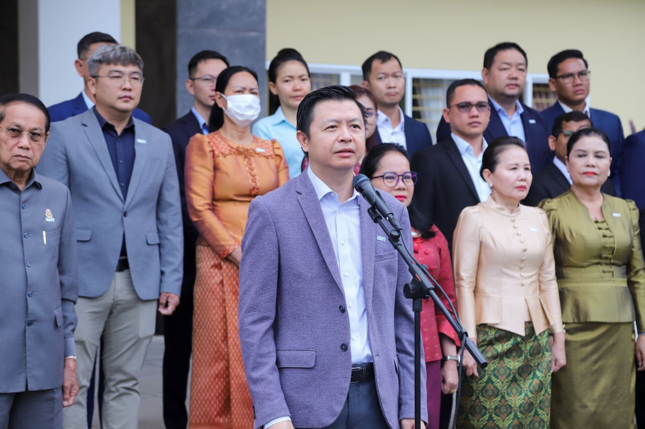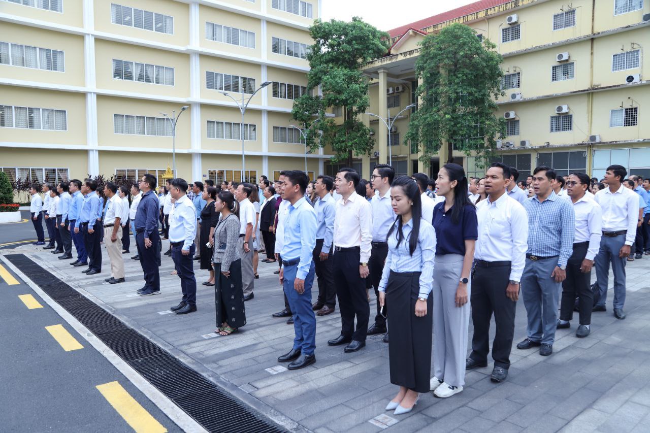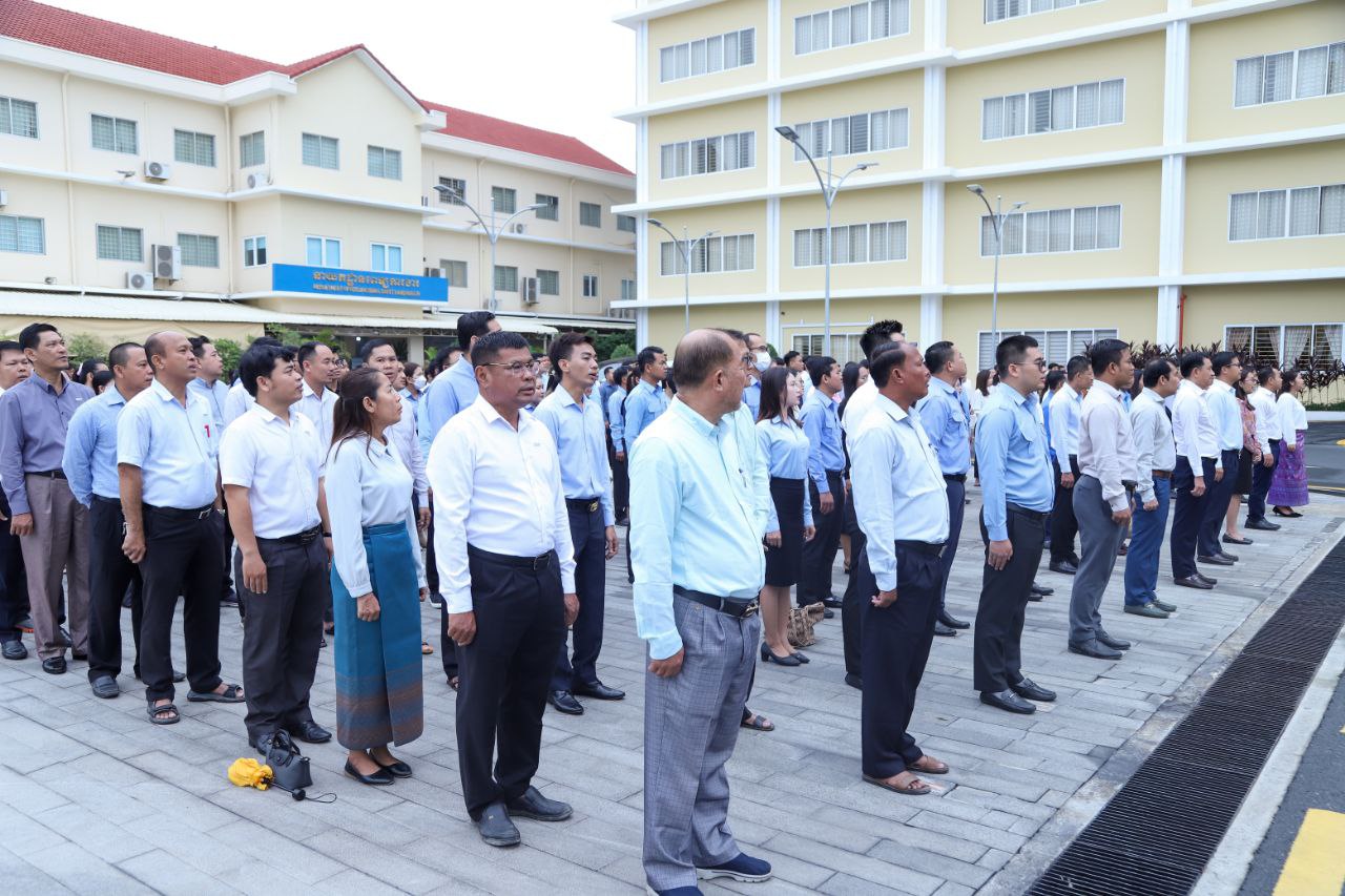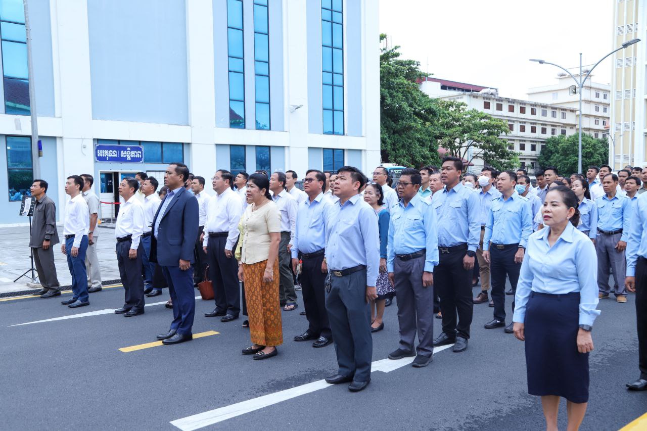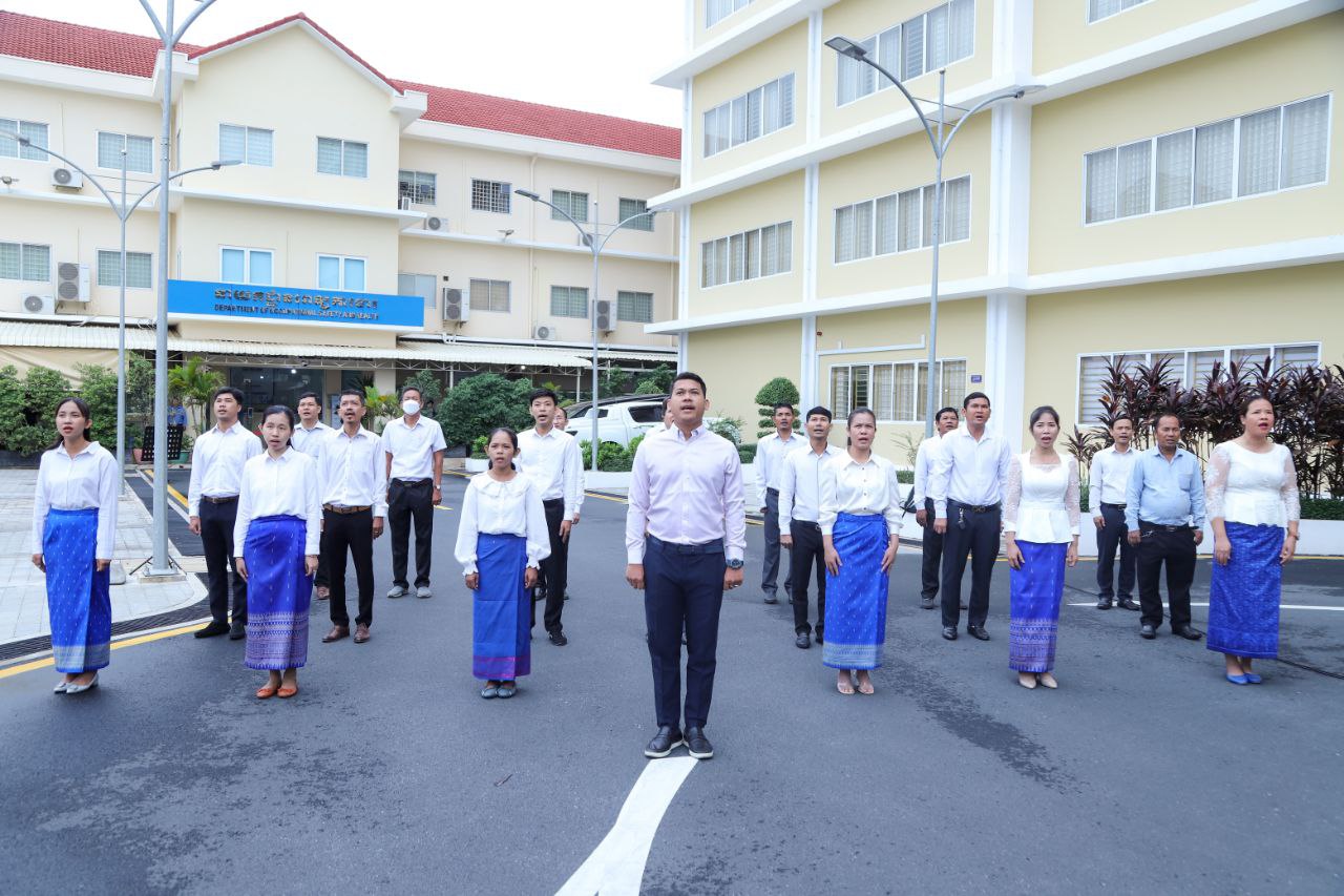 នាព្រឹកថ្ងៃចន្ទ ទី២៤ ខែមិថុនា ឆ្នាំ២០២៤នេះ ថ្នាក់ដឹកនាំ និងមន្ត្រីរាជការនៃក្រសួងការងារ និងបណ្តុះបណ្តាលវិជ្ជាជីវៈ បានចូលរួមគោរពទង់ជាតិនៃព្រះរាជាណាចក្រកម្ពុជា ដោយច្រៀងចម្រៀងបទ «នគររាជ» និងច្រៀងបទ «ពង្សាវតារខ្មែរ» ដោយផ្ទាល់រួមគ្នា។