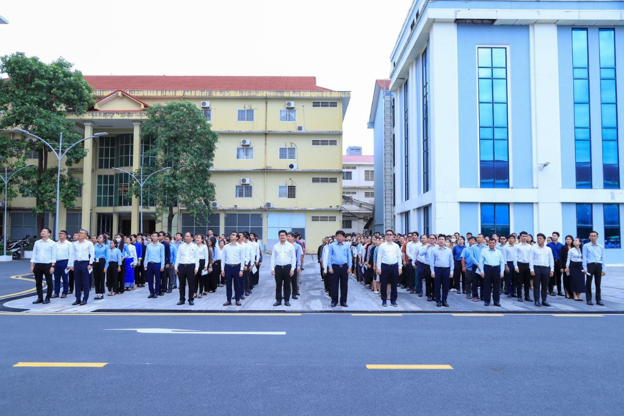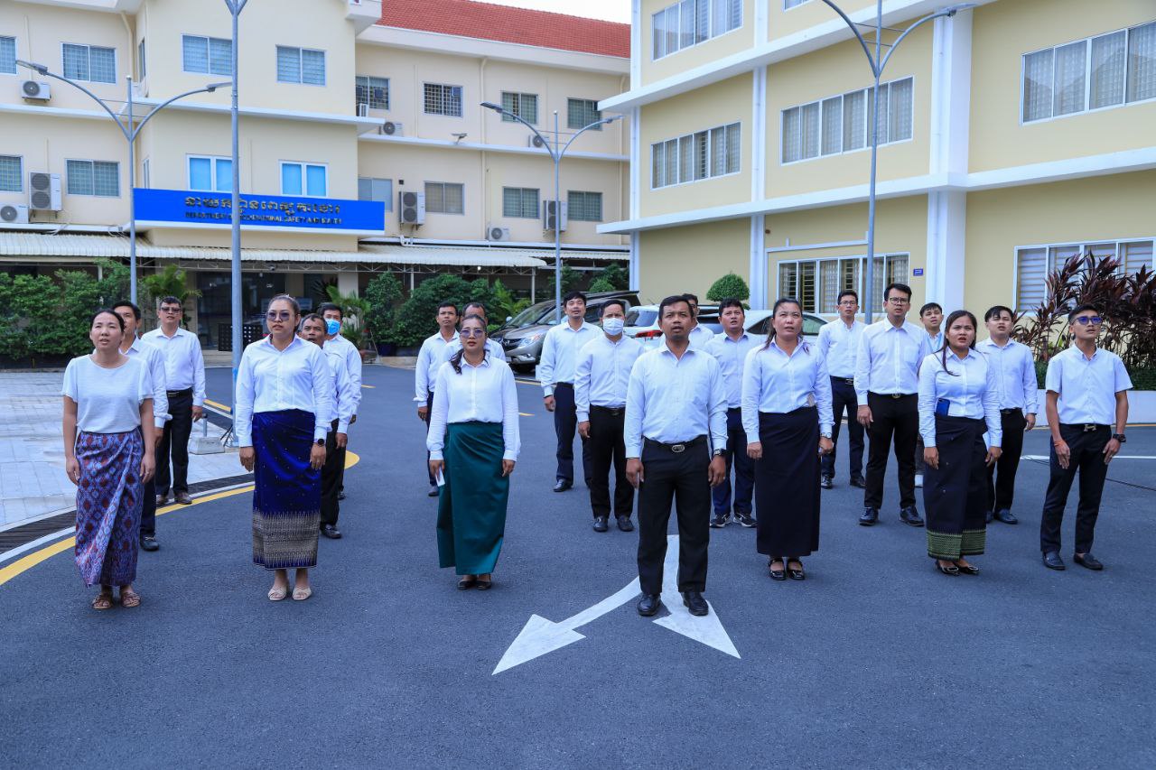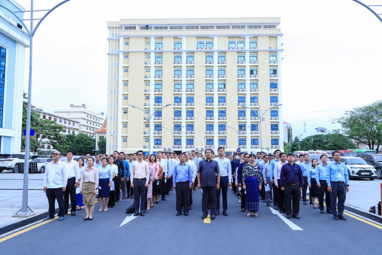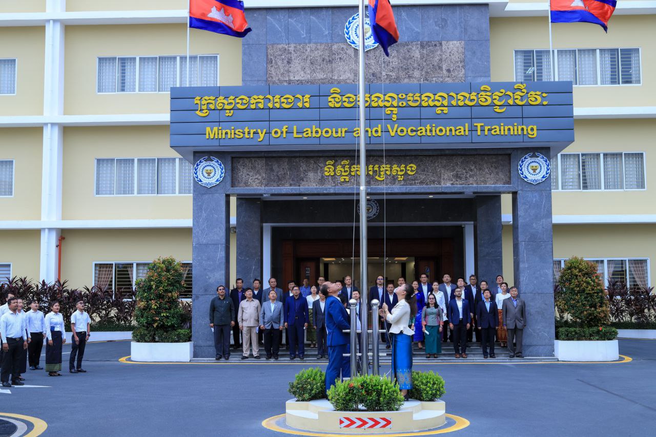 ថ្នាក់ដឹកនាំ និងមន្ត្រីរាជការនៃក្រសួងការងារ និងបណ្តុះបណ្តាលវិជ្ជាជីវៈ ចូលរួមគោរពទង់ជាតិនៃព្រះរាជាណាចក្រកម្ពុជា