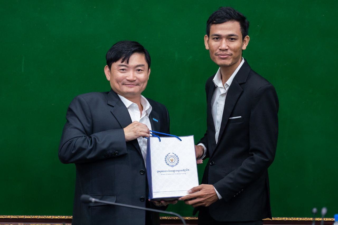 (ភ្នំពេញ)៖ ឯកឧត្តម ហេង សួរ រដ្ឋមន្ត្រីក្រសួងការងារ និងបណ្តុះបណ្តាលវិជ្ជាជីវៈ នៅរសៀលថ្ងៃអង្គារ ទី២៣ ខែកក្កដា ឆ្នាំ២០២៤នេះ បានអនុញ្ញាតឱ្យនិស្សិតជ័យលាភី ១៧រូប ដែលទទួលបានអាហារូបករណ៍រដ្ឋាភិបាលឆែក និងរដ្ឋាភិបាលអាល្លឺម៉ង់ បានចូលជួបនៅទីស្តីការក្រសួងការងារ និងបណ្តុះបណ្តាលវិជ្ជាជីវៈ