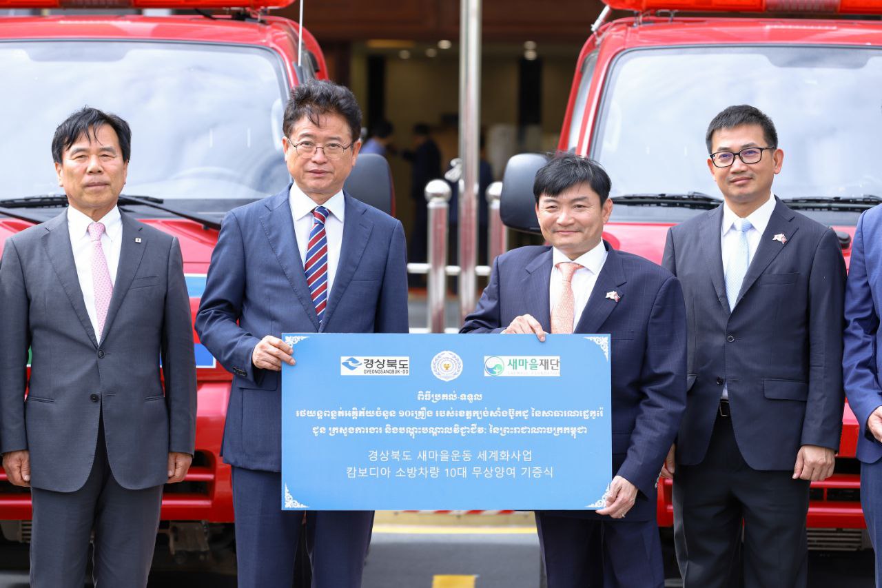 (ភ្នំពេញ)៖ ឯកឧត្តម ហេង សួរ រដ្ឋមន្ត្រីក្រសួងការងារ និងបណ្តុះបណ្តាលវិជ្ជាជីវៈ នៅរសៀលថ្ងៃសុក្រ ទី២៦ ខែកក្កដា ឆ្នាំ២០២៤នេះ បានទទួលជំនួយរថយន្តពន្លត់អគ្គិភ័យចំនួន១០គ្រឿងពីឯកឧត្តម Lee Cheol-Woo អភិបាលខេត្តក្យង់សាំងប៊ូកដូនៃសាធារណរដ្ឋកូរ៉េ ដោយមានការសម្របសម្រួលពីអង្គការចលនាភូមិថ្មីនៃសាធារណរដ្ឋកូរ៉េ។