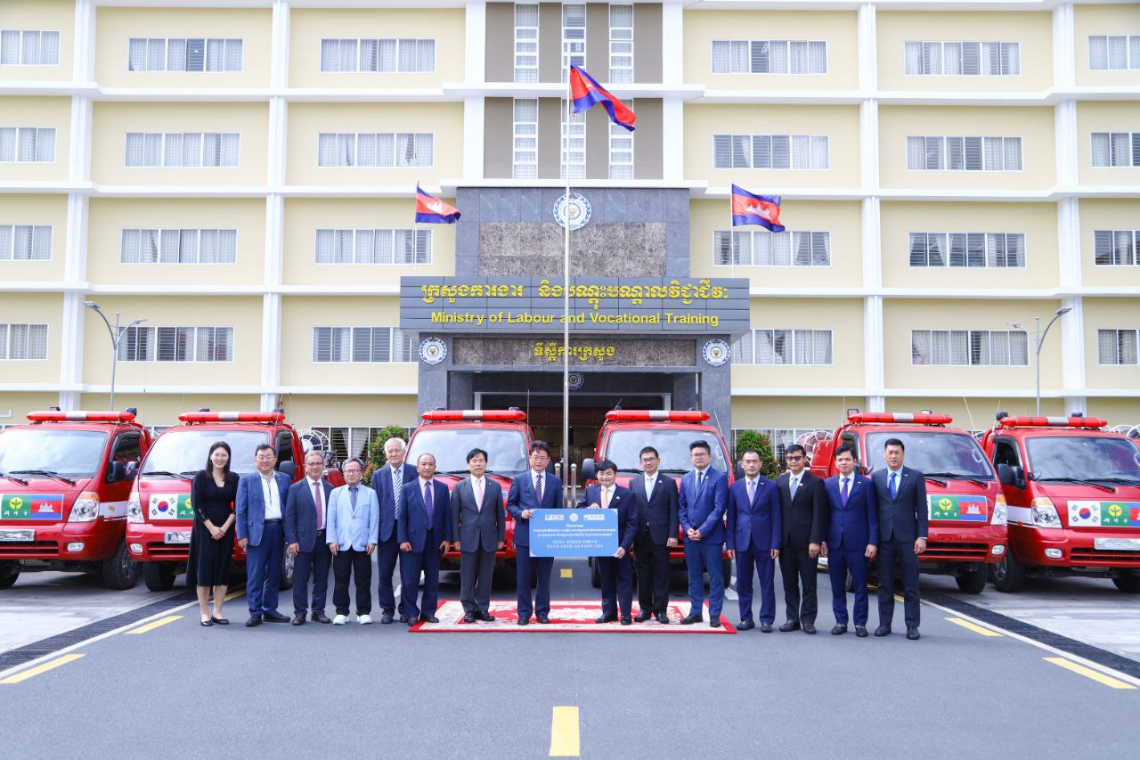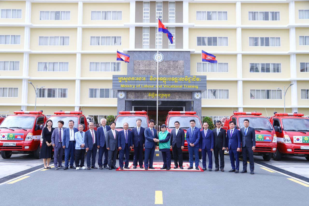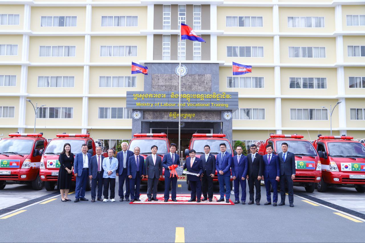 ក្រសួងការងារ និងបណ្តុះបណ្តាលវិជ្ជាជីវៈ ទទួលជំនួយរថយន្តពន្លត់អគ្គិភ័យពីខេត្តក្យង់សាំងប៊ូកដូរបស់កូរ៉េខាងត្បូង