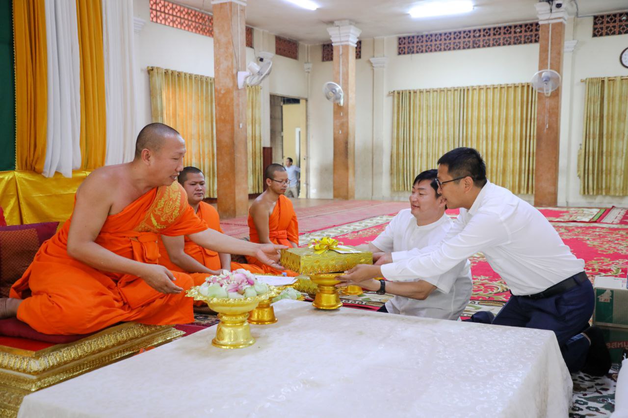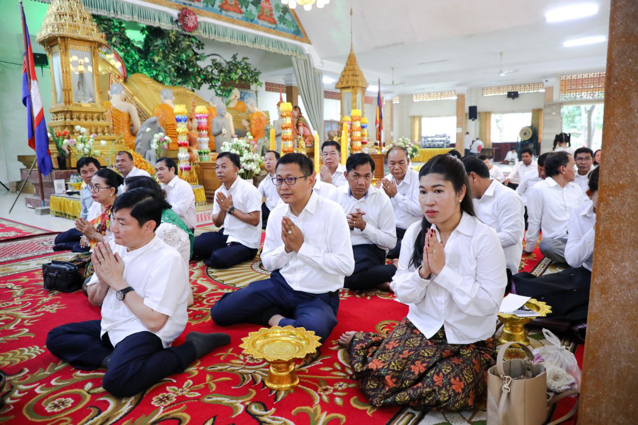 សម្ភារៈដែលឯកឧត្តមរដ្ឋមន្ត្រី និងក្រុមការងារបានប្រគេនជូនរួមមាន ទៀនវស្សា១គូ អង្ករ៨បាវ សាដក១ ស្ករស១បាវ ទឹកដោះគោខាប់១កេស ទឹកក្រូច១០កេស ទឹកសុទ្ធ១០កេស មីម៉ាម៉ា២កេសធំ ត្រីខ១កេស និងបច្ច័យមួយចំនួនទៀត។