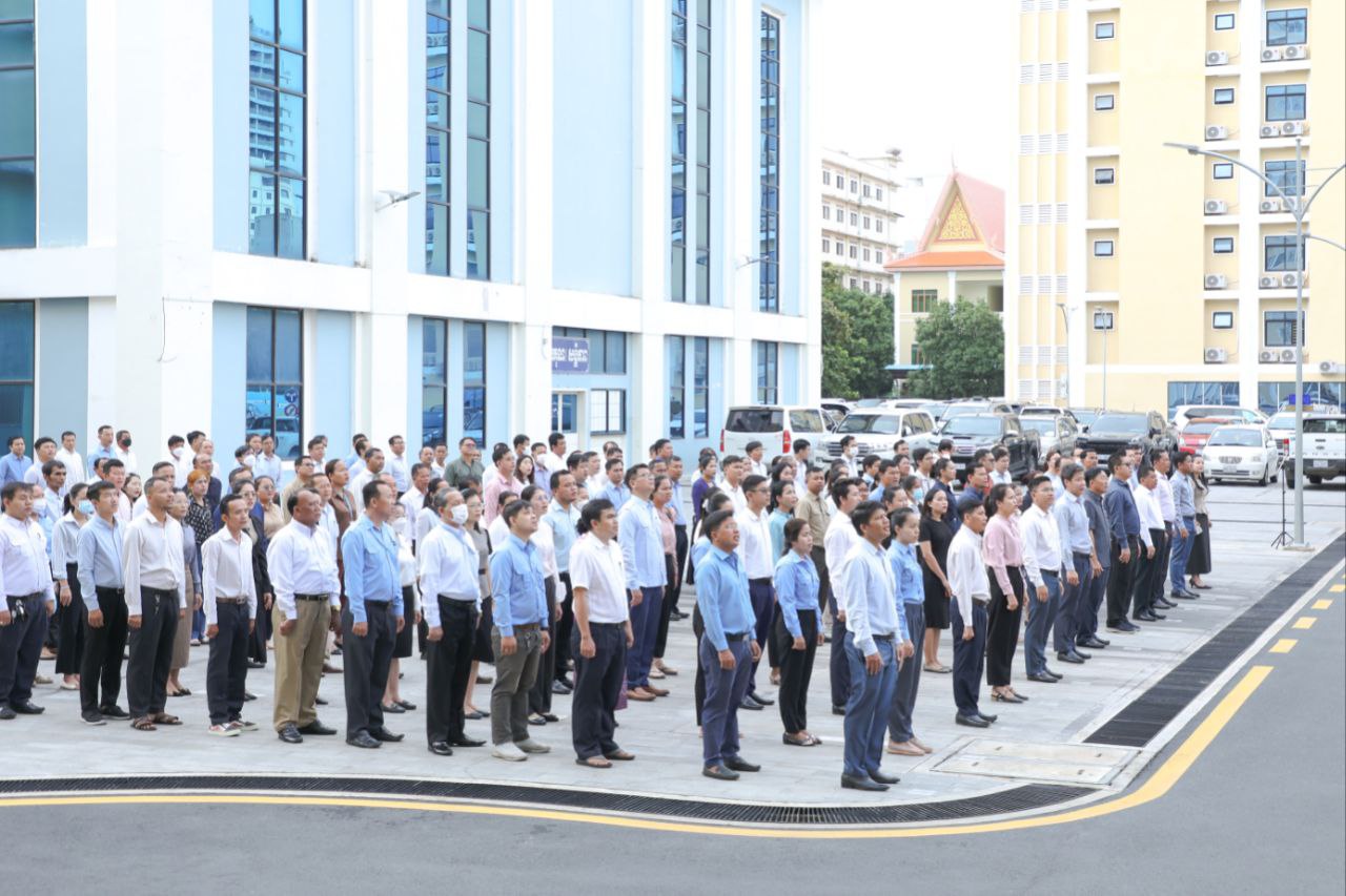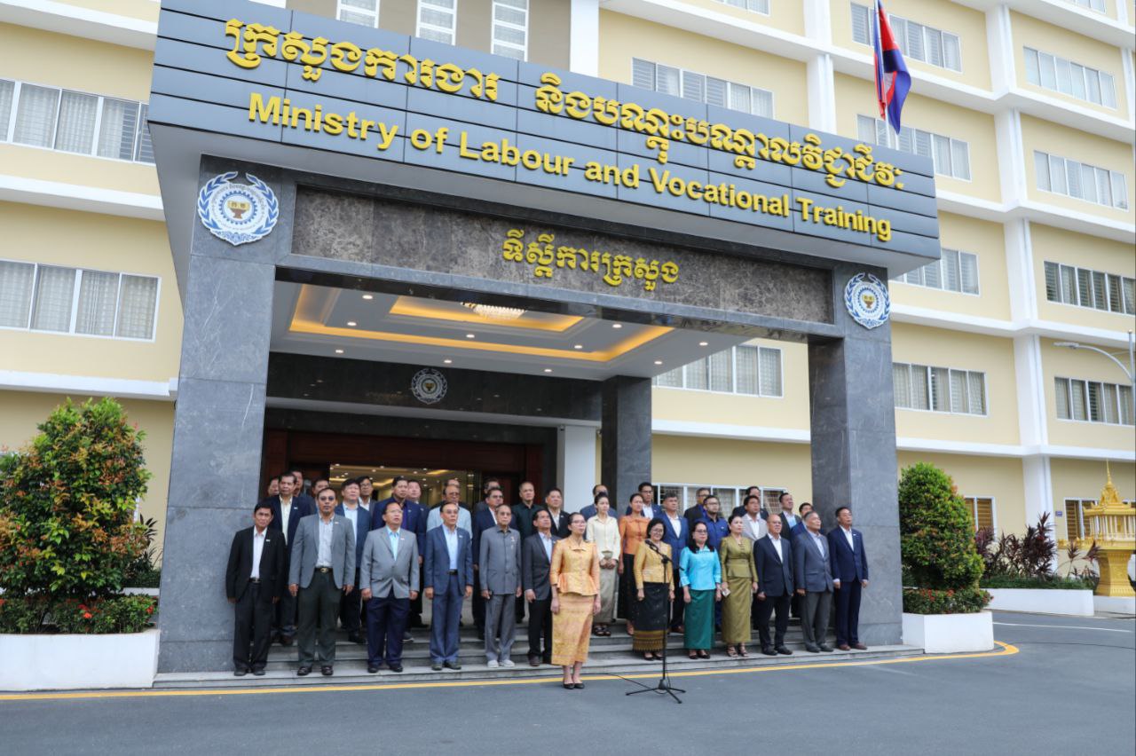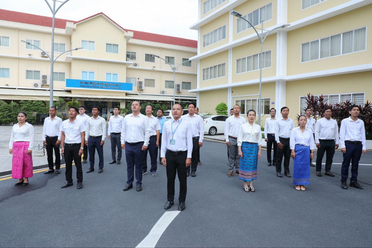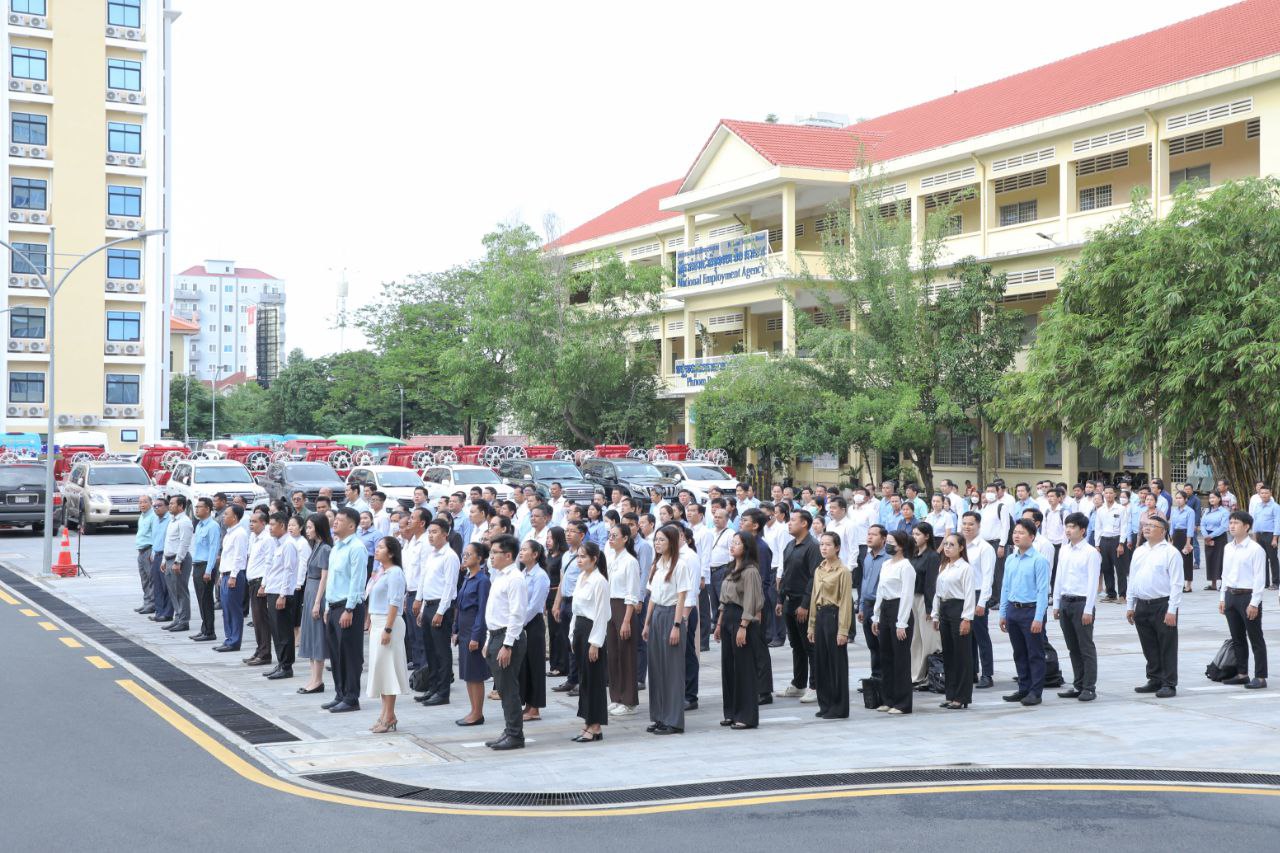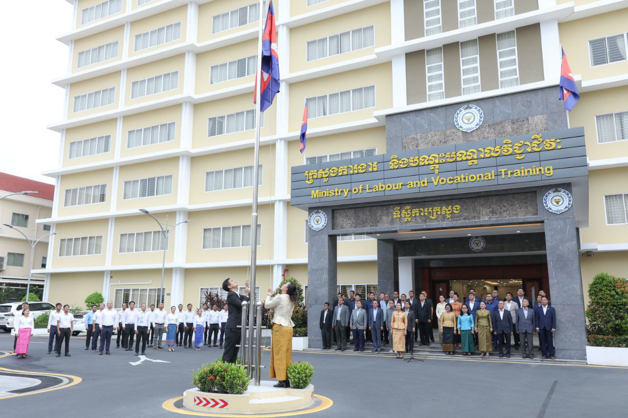នាព្រឹកថ្ងៃចន្ទទី២៩ ខែកក្កដា ឆ្នាំ២០២៤នេះ ថ្នាក់ដឹកនាំ និងមន្ត្រីរាជការនៃក្រសួងការងារ និងបណ្តុះបណ្តាលវិជ្ជាជីវៈ បានចូលរួមគោរពទង់ជាតិនៃព្រះរាជាណាចក្រកម្ពុជា ដោយច្រៀងចម្រៀងបទ «នគររាជ» និងច្រៀងបទ «ពង្សាវតារខ្មែរ» ដោយផ្ទាល់រួមគ្នា។
