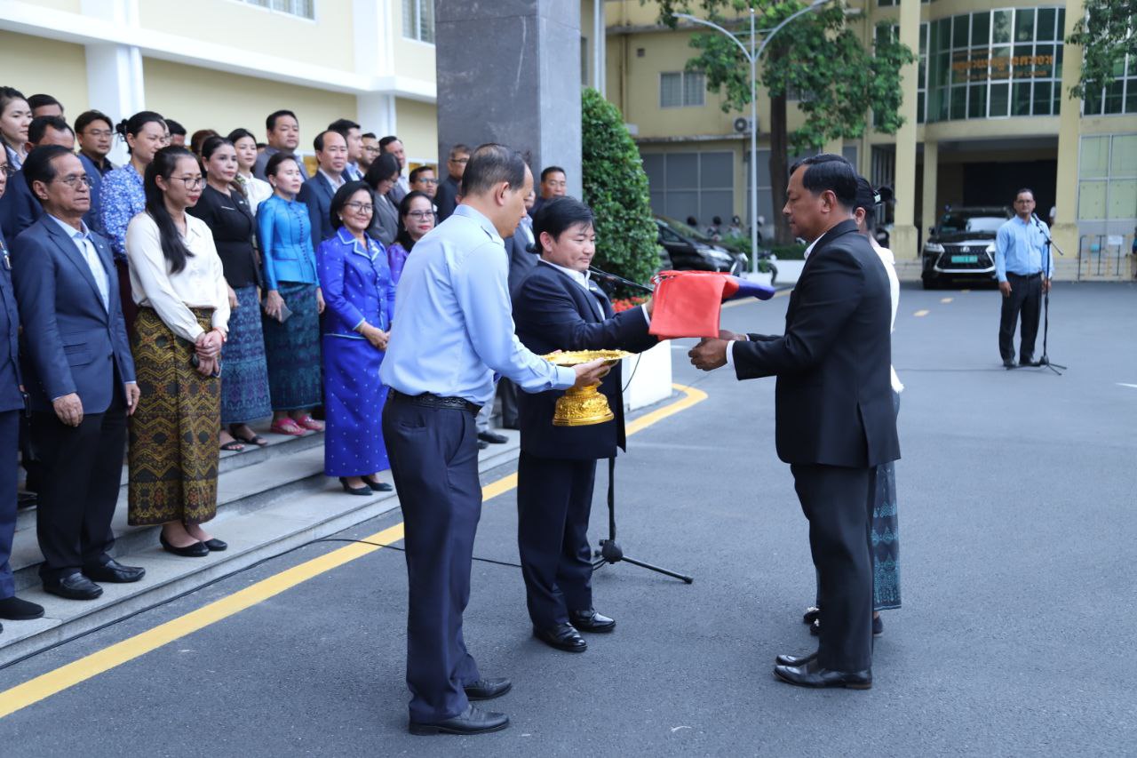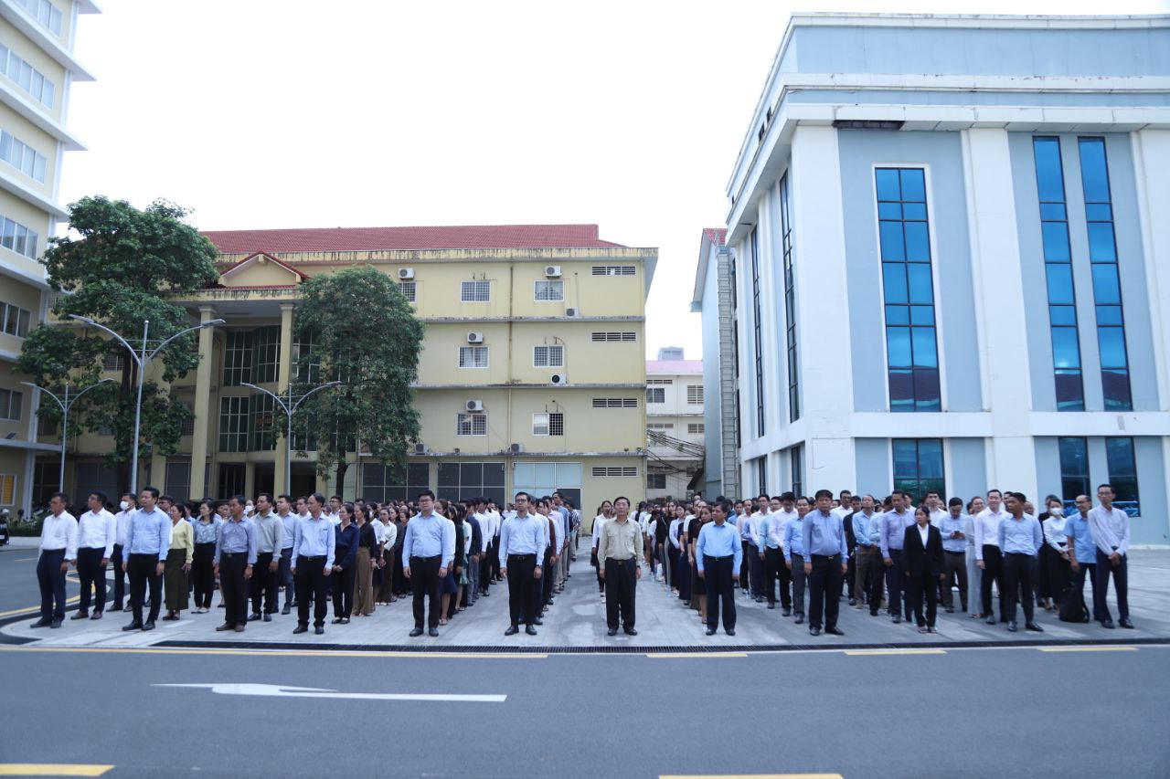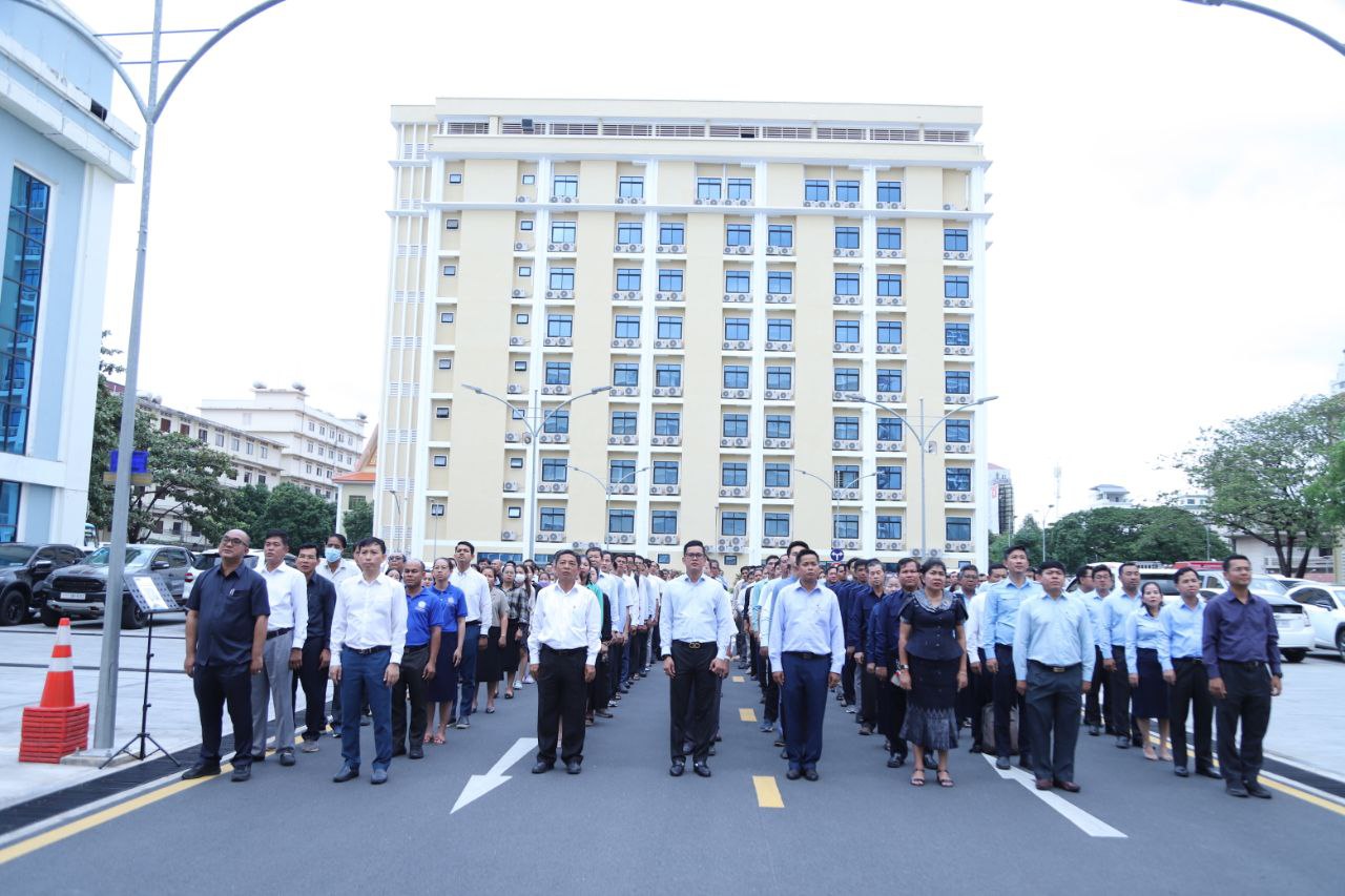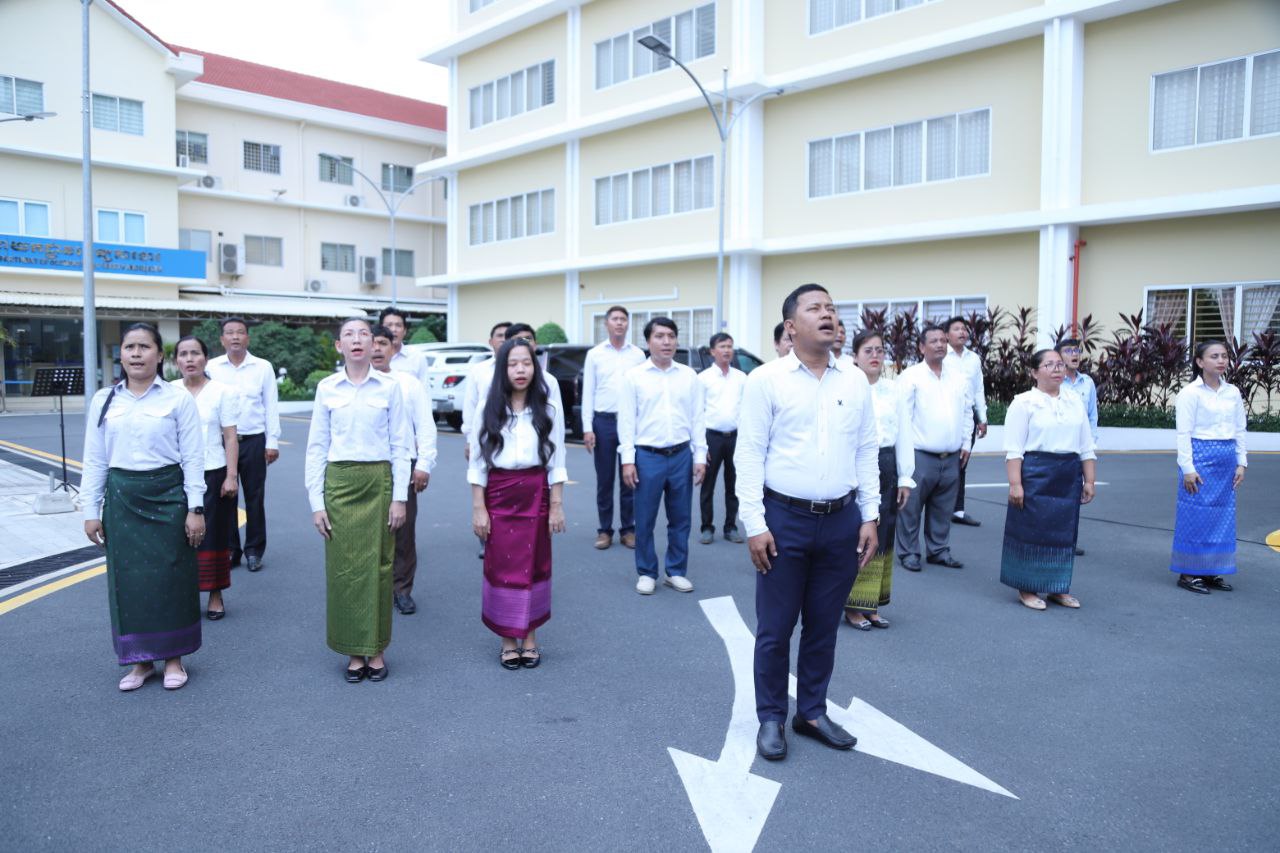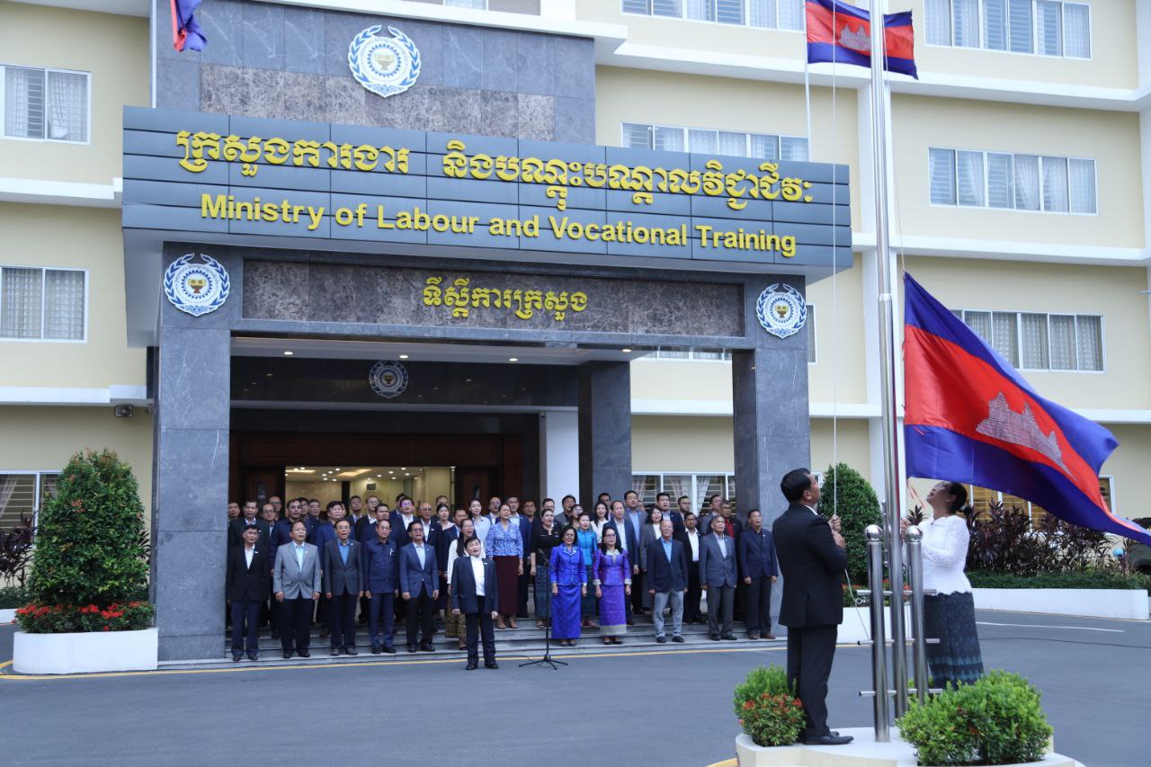 ថ្នាក់ដឹកនាំ និងមន្ត្រីរាជការនៃក្រសួងការងារ និងបណ្តុះបណ្តាលវិជ្ជាជីវៈ ចូលរួមគោរពទង់ជាតិនៃព្រះរាជាណាចក្រកម្ពុជា