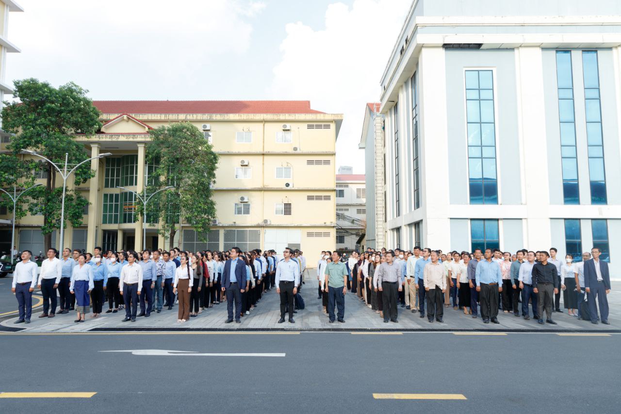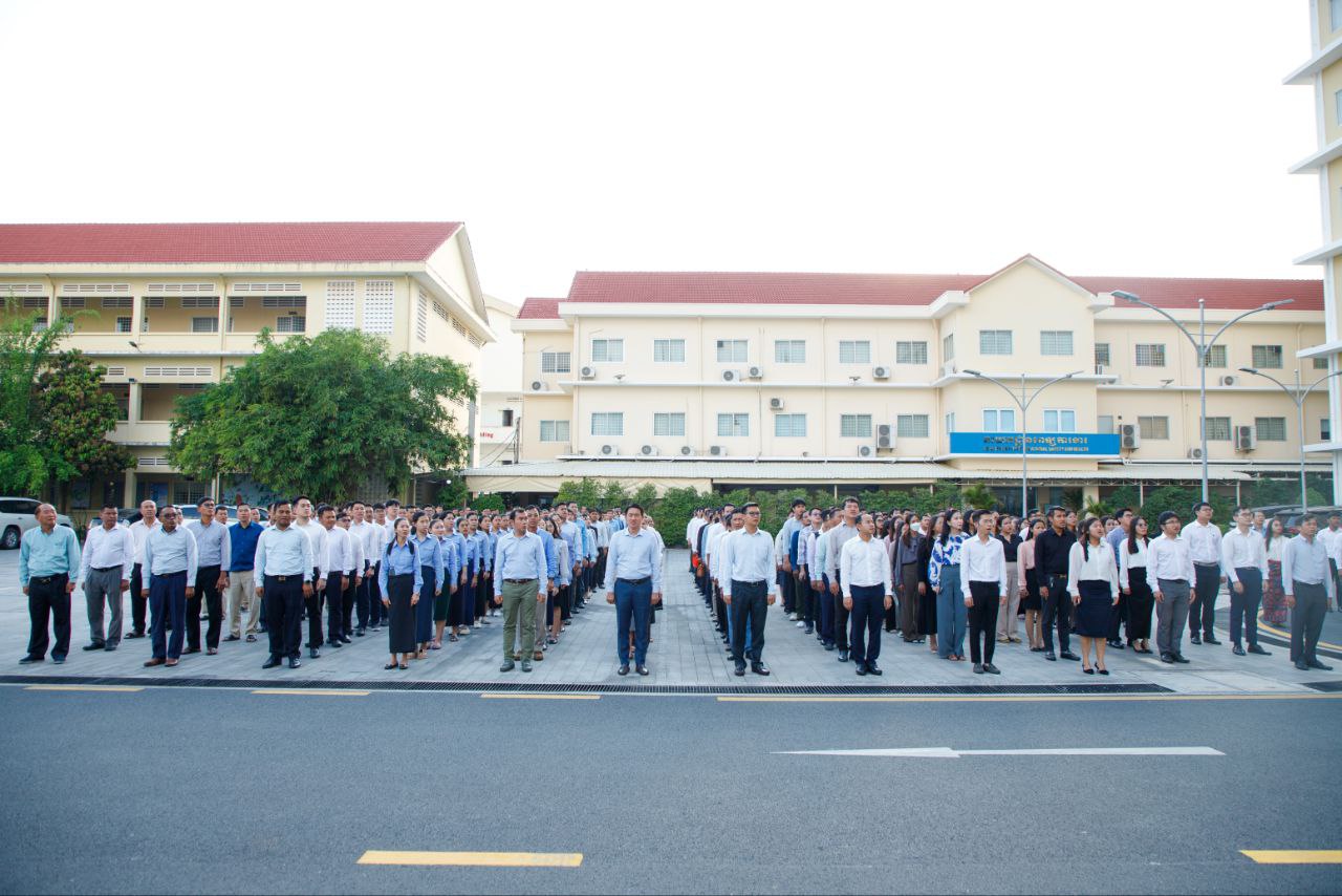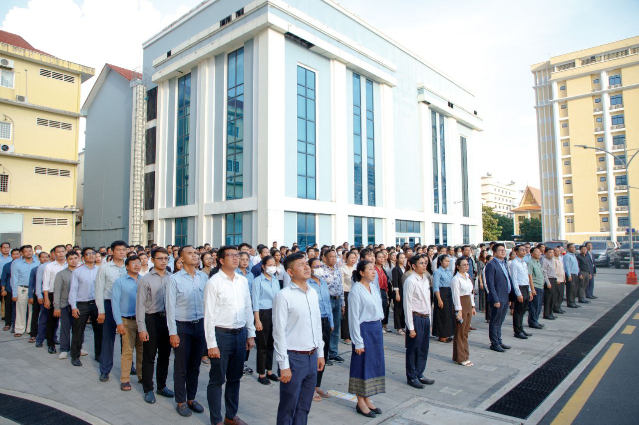 ថ្នាក់ដឹកនាំ និងមន្ត្រីរាជការនៃក្រសួងការងារ និងបណ្តុះបណ្តាលវិជ្ជាជីវៈ ចូលរួមគោរពទង់ជាតិនៃព្រះរាជាណាចក្រកម្ពុជា
