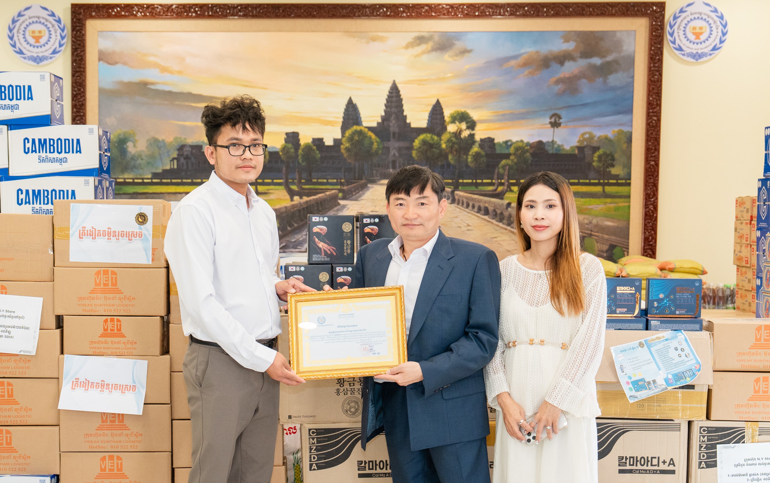 អំណោយរបស់ លោកស្រី គីម ហានីល អគ្គនាយិកាក្រុមហ៊ុន គីម ហានីល (ខេមបូឌា) ឯ.ក មាន៖ ស្តេចយិនសិនគ្រាប់សូនមាស ចំនួន ៣០ប្រអប់ ផលិតផលជំនួយសុខភាព (ខាល់ម៉ាអាឌី+A) ចំនួន ៦៥ប្រអប់ កៅអៀកយិនសិនចំនួន ៦០០កញ្ចប់ ថ្នាំរិតចុករោយ ចំនួន ១០០ដប ត្រីងៀតឆ្អិន (អ៊ុតជាថង់) ចំនួន ១៤០គ.ក និងកន្សែងពោះគោ ចំនួន ១០០កន្សែង។