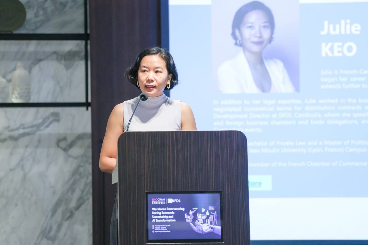 (ភ្នំពេញ)៖  នាព្រឹកថ្ងៃទី១៥ ខែមករា ឆ្នាំ២០២៦ ឯកឧត្តម គួច សុមាន រដ្ឋលេខាធិការតំណាងដ៏ខ្ពង់ខ្ពស់ឯកឧត្តម ហេង សួរ រដ្ឋមន្ត្រីក្រសួងការងារ និងបណ្តុះបណ្តាលវិជ្ជាជីវៈ បានអញ្ជើញជាអធិបតីក្នុងពិធីបើកសិក្ខាសាលាដ៏មានសារៈសំខាន់មួយ ស្តីពី «ការកែលម្អរចនាសម្ព័ន្ធកម្លាំងពលកម្ម ក្នុងអំឡុងភាពមិនច្បាស់លាស់នៃសេដ្ឋកិច្ច និងការផ្លាស់ប្តូរដោយបញ្ញាសិប្បនិមិត្ម AI» ដែលរៀបចំឡើងដោយសភាពាណិជ្ជកម្មអឺរ៉ុបនៅកម្ពុជា (EUROCHAM Cambodia) នៅសណ្ឋាគារ ហៃយ៉ាត់ រីជិនស៊ី ភ្នំពេញ។