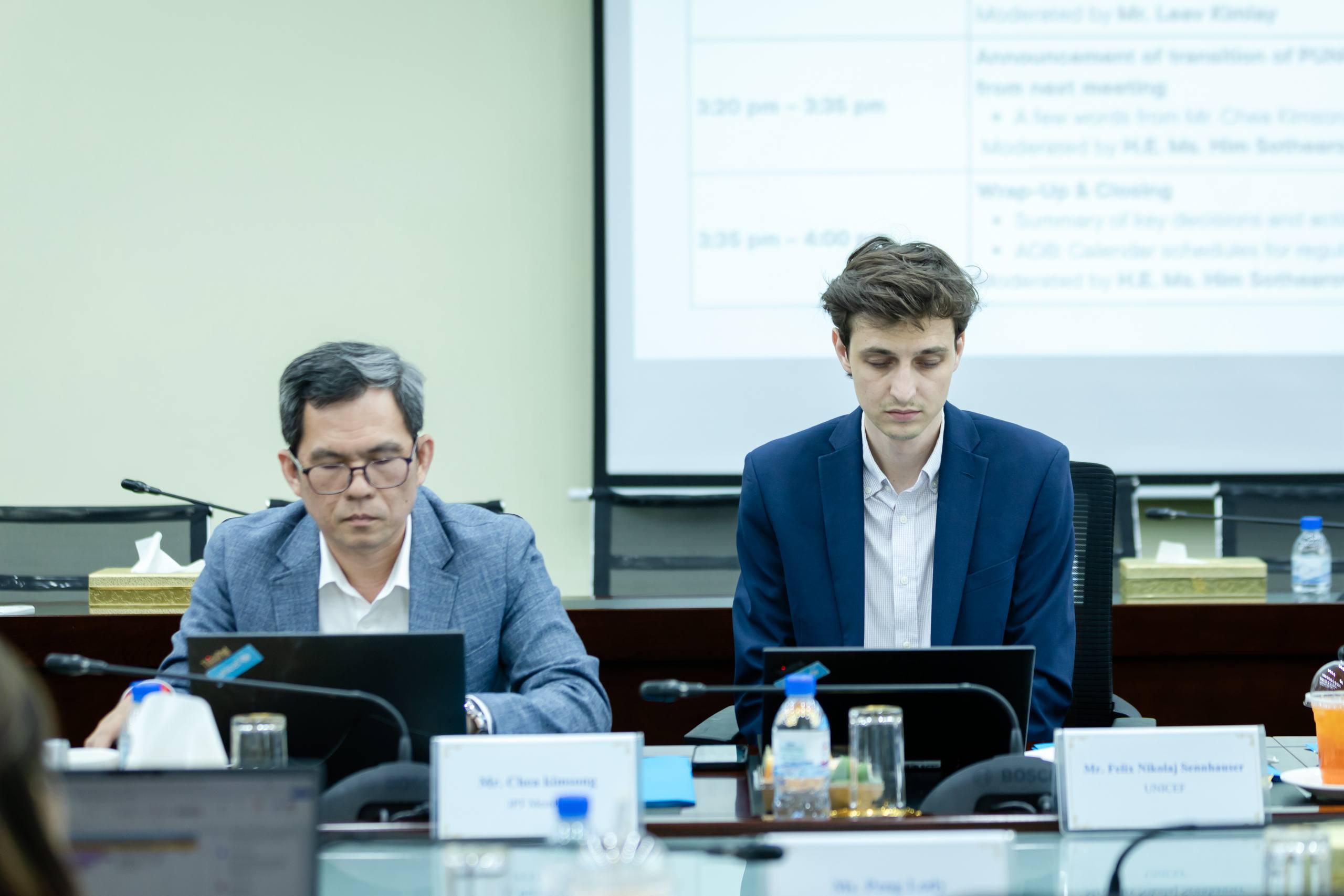 ក្នុងកិច្ចប្រជុំនេះ ក៏មានពិធីប្រគល់ភារកិច្ចសហប្រធានប្តូរវេនពីលោក លៀវ គឹមឡាយ តំណាងអង្គការ UNESCO ជូនលោក ជា គីមសុង មន្ត្រីជំនាញគោលនយោបាយសង្គម នៃអង្គការ UNICEF ជាផ្លូវការ។ លោកជំទាវ បានលើកឡើងថាពិធីនេះបានសបញ្ជាក់ពីស្មារតីសហប្រតិបត្តិការយ៉ាងជិតស្និទ្ធរវាងស្ថាប័នរដ្ឋ និងទីភ្នាក់ងារអង្គការសហប្រជាជាតិ ក្នុងការបន្តបេសកកម្មជំរុញវិស័យការងារ និងការបណ្តុះបណ្តាលជំនាញដល់យុវជនឱ្យកាន់តែប្រសើរឡើង។
