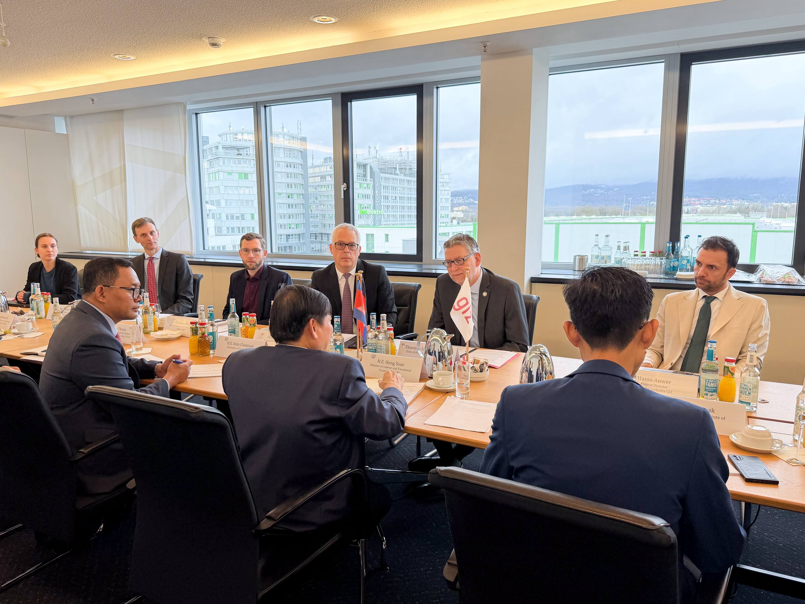 (ទីក្រុងហ្វ្រេងហ្វឺត)៖ បន្ទាប់ពីបានចូលរួមវេទិកាអង្គការសម្រាប់កិច្ចសហប្រតិបត្តិការ និងអភិវឌ្ឍន៍សេដ្ឋកិច្ច (OECD) ស្តីពីការពិនិត្យអនុលោមភាពក្នុងវិស័យកាត់ដេរ និងផលិតស្បែកជើង នាទីក្រុងប៉ារីស ប្រទេសបារាំង កាលពីថ្ងៃទី១៣ ខែកុម្ភៈ ឆ្នាំ២០២៦ ឯកឧត្តម ហេង សួរ រដ្ឋមន្ត្រី ក្រសួងការងារ និងបណ្តុះបណ្តាវិជ្ជាជីវៈ បានបន្តដឹកនាំប្រតិភូកម្ពុជាទស្សនកិច្ចសិក្សានៅទីស្នាក់ការកណ្តាលរបស់ទីភ្នាក់ងារសហប្រតិបត្តិការអាល្លឺម៉ង់ (GIZ) នាទីក្រុងហ្វ្រេងហ្វឺត (Frankfurt ) ប្រទេសអាល្លឺម៉ង់ ក្នុងគោលបំណងស្វែងយល់និងដកស្រង់យកបទពិសោធលើការងារបណ្តុះបណ្តាលបច្ចេកទេសវិជ្ជាជីវៈ ជាពិសេសការអនុវត្តកម្មវិធីបណ្តុះបណ្តាលដែលរួមបញ្ចូលគ្នារវាងការសិក្សាទ្រឹស្តីនៅសាលាជាមួយការអនុវត្តការងារជាក់ស្តែងនៅកន្លែងការងារ។