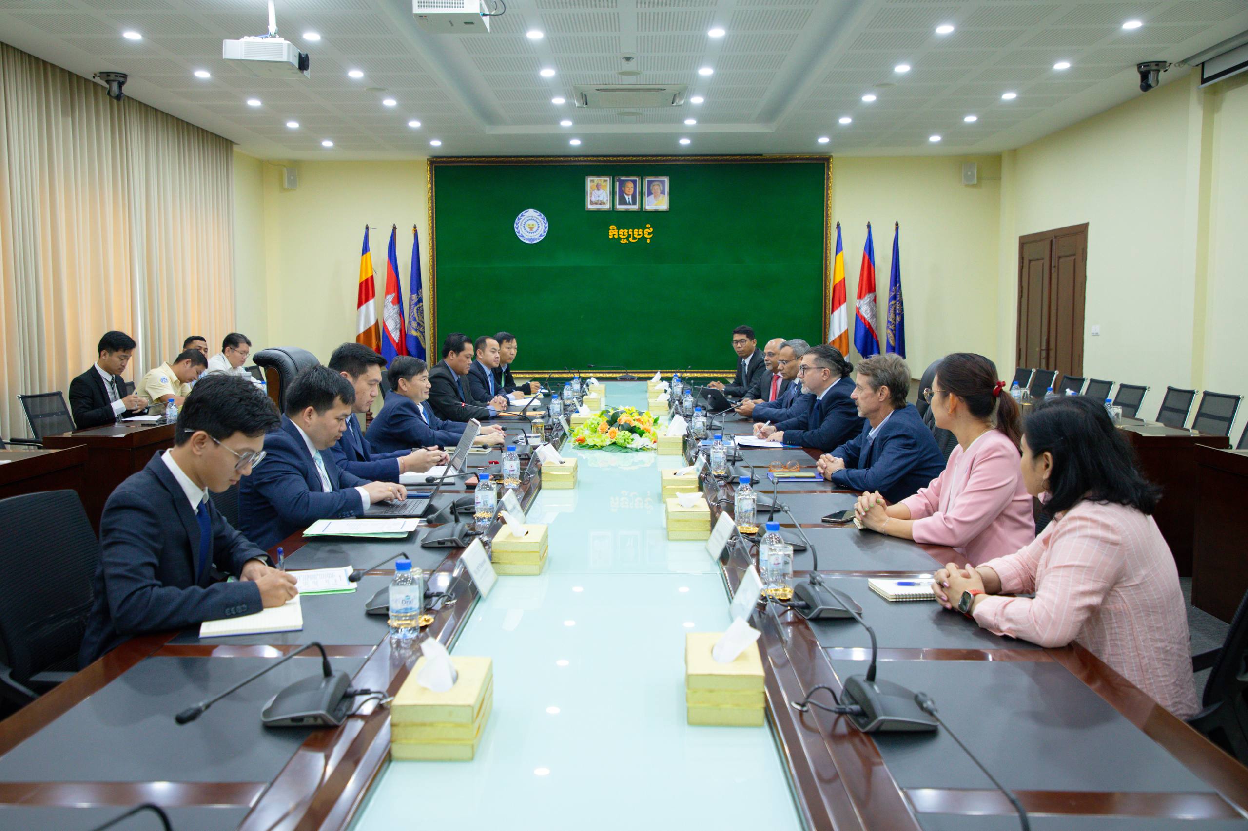 (ភ្នំពេញ)៖ ឯកឧត្ដម ហេង សួរ រដ្ឋមន្ត្រីក្រសួងការងារ និងបណ្ដុះបណ្ដាលវិជ្ជាជីវៈ បានទទួលជួបសម្តែងការគួរសម និងពិភាក្សាការងារជាមួយលោក អេនរីកូ ហ្គាវេលីយ៉ា (Enrico Gaveglia) តំណាងកម្មវិធីអភិវឌ្ឍន៍សហប្រជាជាតិ (UNDP) ប្រចាំកម្ពុជា នាព្រឹកថ្ងៃអង្គារ ទី៣ ខែមីនា ឆ្នាំ២០២៦ នៅទីស្តីការក្រសួង ដើម្បីពិនិត្យវឌ្ឍនភាពនៃកិច្ចសហប្រតិបត្តិការក្នុងគោលបំណងជំរុញ និងផ្ដួចផ្ដើមការងារយុទ្ធសាស្ត្រចំនួនពីរ ទី (១) ការធ្វើពិពិធកម្មការវិនិយោគនៃមូលនិធិសោធន ដើម្បីធានានូវនិរន្តរភាព និងការរីកលូតលាស់នៃកញ្ចប់ថវិកាសោធនសម្រាប់បងប្អូនកម្មករនិយោជិត និងទី (២) ការវិនិយោគដែលស្របតាមគោលការណ៍បរិស្ថាន សង្គម និងអភិបាលកិច្ច (ESG) នៅក្នុងប្រទេសកម្ពុជា ស្របតាមស្មារតីនៃអនុស្សរណៈនៃការយោគយល់គ្នា (MoU) ដែលស្ថាប័នទាំងពីរបានចុះហត្ថលេខាកាលពីថ្ងៃទី៩ ខែធ្នូ ឆ្នាំ២០២៥។