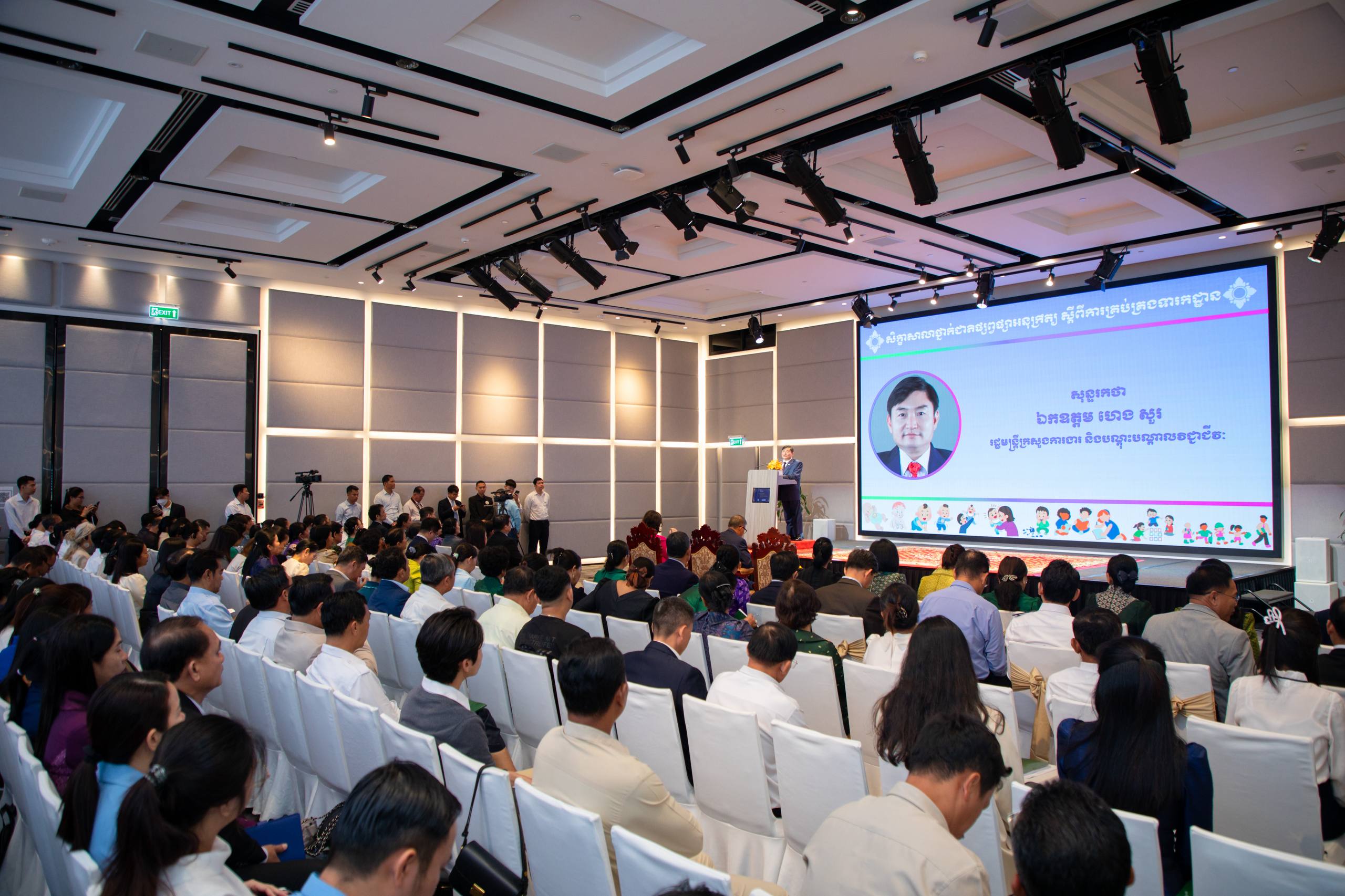 (ភ្នំពេញ)៖ នាព្រឹកថ្ងៃទី១២ ខែមីនា ឆ្នាំ២០២៦ នៅសណ្ឋាគារ ណូវ៉ូតែល ឯកឧត្តម ហេង សួរ រដ្ឋមន្រ្តីក្រសួងការងារ និងបណ្តុះបណ្តាលវិជ្ជាជីវៈ បានអញ្ជើញចូលរួមជាគណៈអធិបតី និងថ្លែងសុន្ទរកថាក្នុងពិធីបើកសិក្ខាសាលាថ្នាក់ជាតិ ស្តីពីការលើកកម្ពស់ការគ្រប់គ្រងទារកដ្ឋាន ដែលប្រព្រឹត្តទៅក្រោមអធិបតីភាពដ៏ខ្ពង់ខ្ពស់ ឯកឧត្ដមបណ្ឌិតសភាចារ្យ ហង់ ជួនណារ៉ុន ឧបនាយករដ្ឋមន្ត្រី រដ្ឋមន្ត្រីក្រសួងអប់រំ យុវជន និងកីឡា និងជាប្រធានគណៈកម្មាធិការជាតិគាំពារនិងអភិវឌ្ឍកុមារតូច។