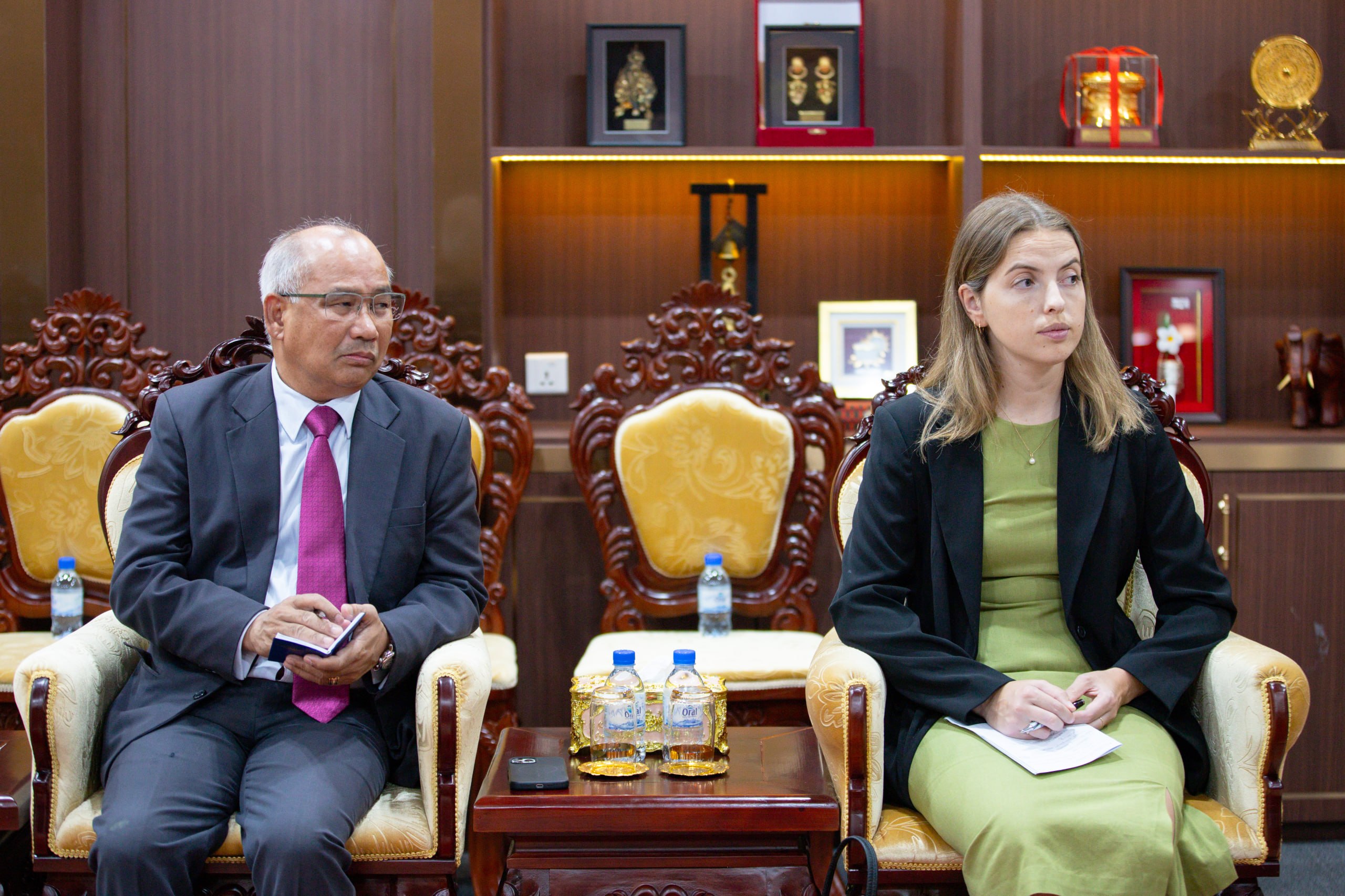 (រាជធានីភ្នំពេញ)៖ នារសៀលថ្ងៃពុធ ទី១៨ ខែមីនា ឆ្នាំ២០២៦ ឯកឧត្តម ហេង សួរ រដ្ឋមន្ត្រីក្រសួងការងារ និងបណ្តុះបណ្តាលវិជ្ជាជីវៈ បានអនុញ្ញាតឱ្យឯកឧត្តម គ្រីស្ទៀន ដេរ៉ូហ្ស (Christian DesRoches) ឯកអគ្គរដ្ឋទូតវិសាមញ្ញ និងពេញសមត្ថភាពនៃប្រទេសកាណាដាប្រចាំកម្ពុជា ចូលជួបសម្ដែងការគួរសម និងពិភាក្សាការងារ នៅទីស្តីការក្រសួង ដើម្បីពង្រឹងកិច្ចសហប្រតិបត្តិការទ្វេភាគីលើវិស័យការងារ សន្តិសុខសង្គម និងការបណ្តុះបណ្តាលវិជ្ជាជីវៈ។
