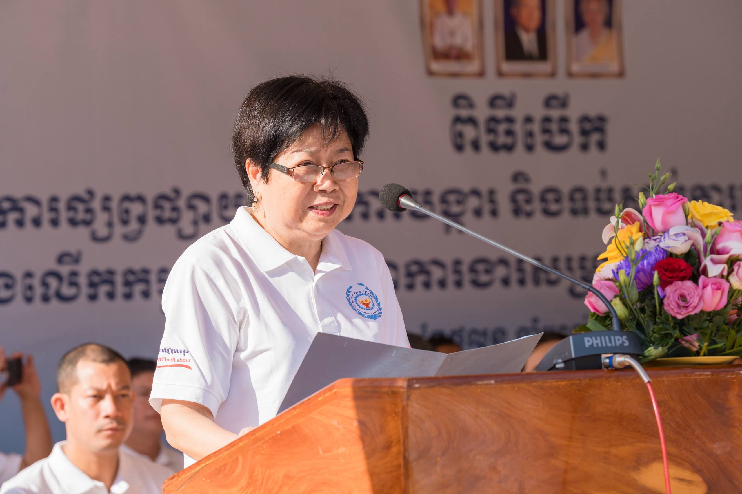 លោកជំទាវក៏បានអំពាវនាវឱ្យបន្តពង្រឹងកិច្ចសហការយ៉ាងជិតស្និទ្ធពីគ្រប់ភាគីពាក់ព័ន្ធ ដើម្បីរួមគ្នាបញ្ចប់រាល់ទម្រង់ធ្ងន់ធ្ងរនៃពលកម្មកុមារ និងបន្តលើកកម្ពស់លក្ខខណ្ឌការងារសម្រាប់កម្មករនិយោជិតវ័យក្មេង ជាពិសេស នៅក្នុងវិស័យដែលបម្រើឲ្យការនាំចេញ រួមទាំងវិស័យកសិ-ឧស្សាហកម្ម និងសិប្បកម្មផលិតឥដ្ឋ-ក្បឿង សំដៅរក្សាកេរ្តិ៍ឈ្មោះប្រទេសកម្ពុជា ជាប្រទេសដែលគោរពសិទ្ធិការងារនិងលក្ខខណ្ឌការងារ។