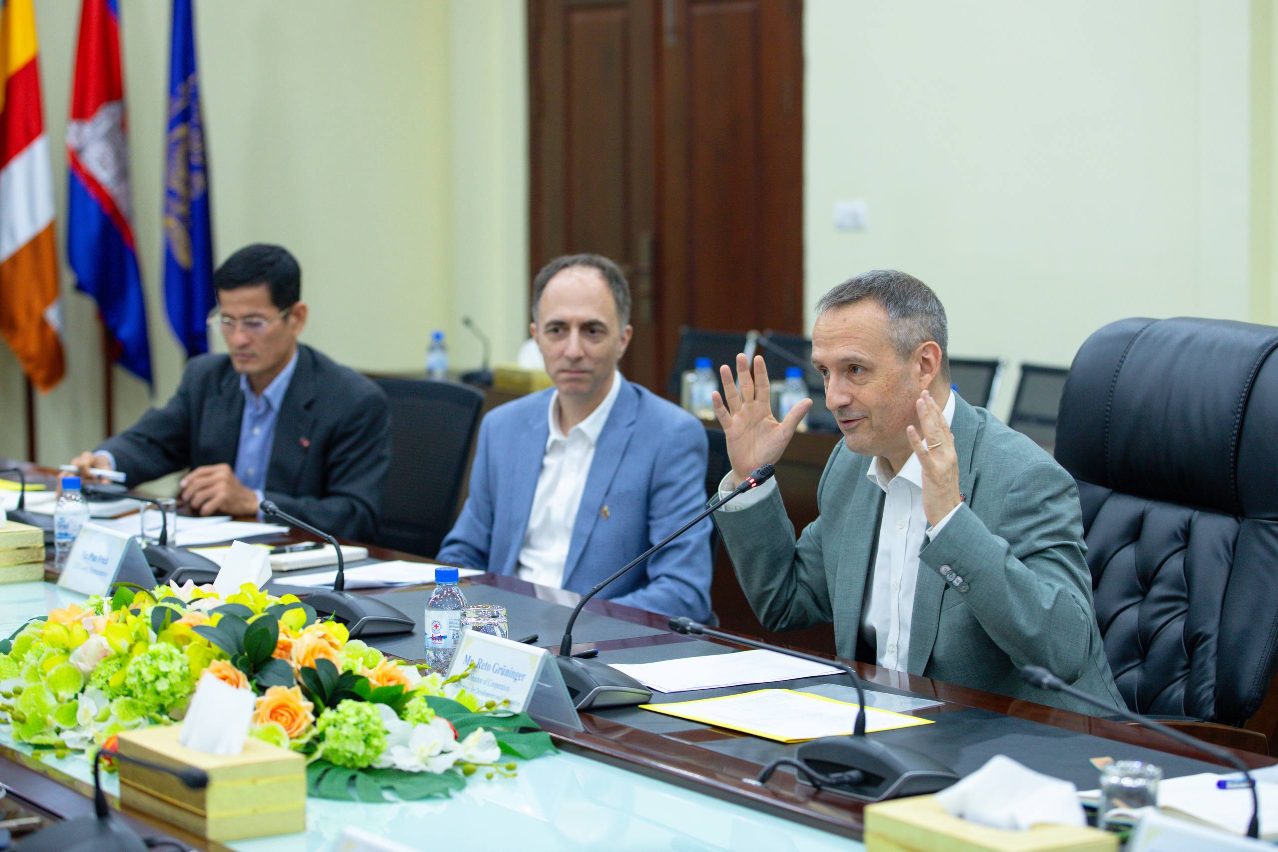(ភ្នំពេញ)៖ ឯកឧត្តម ហេង សួរ រដ្ឋមន្ត្រីក្រសួងការងារ និងបណ្ដុះបណ្ដាលវិជ្ជាជីវៈ បានទទួលជួបសម្តែងការគួរសម និងពិភាក្សាការងារជាមួយលោក Reto Grüninger នាយកទីភ្នាក់ងារស្វីសសម្រាប់ការអភិវឌ្ឍនិងកិច្ចសហប្រតិបត្តិការ (SDC) នៅកម្ពុជា នារសៀលថ្ងៃទី៣០ ខែមីនា ឆ្នាំ២០២៦ នៅទីស្តីការក្រសួង ដើម្បីធ្វើបច្ចុប្បន្នភាពពីវឌ្ឍនភាពនៃកិច្ចសហប្រតិបត្តិការ និងផ្លាស់ប្តូរយោបល់លើការបន្តកិច្ចគាំទ្រលើអភិបាលកិច្ច និងការសម្របសម្រួលលើប្រព័ន្ធ TVET នៅកម្ពុជា។