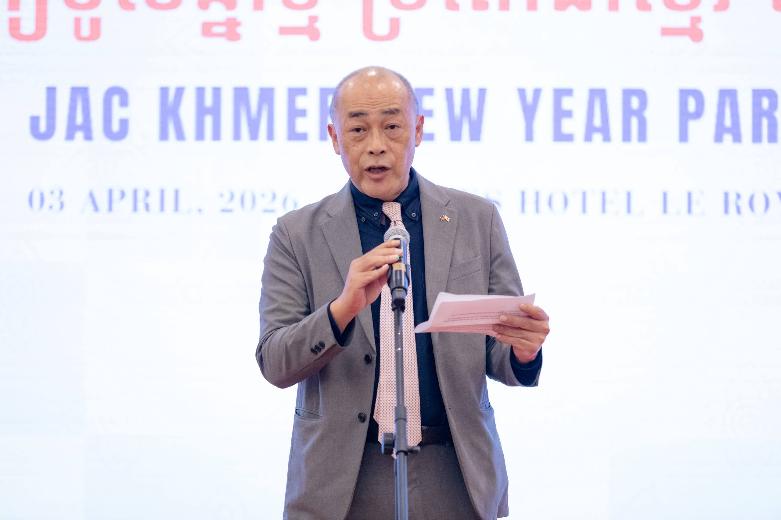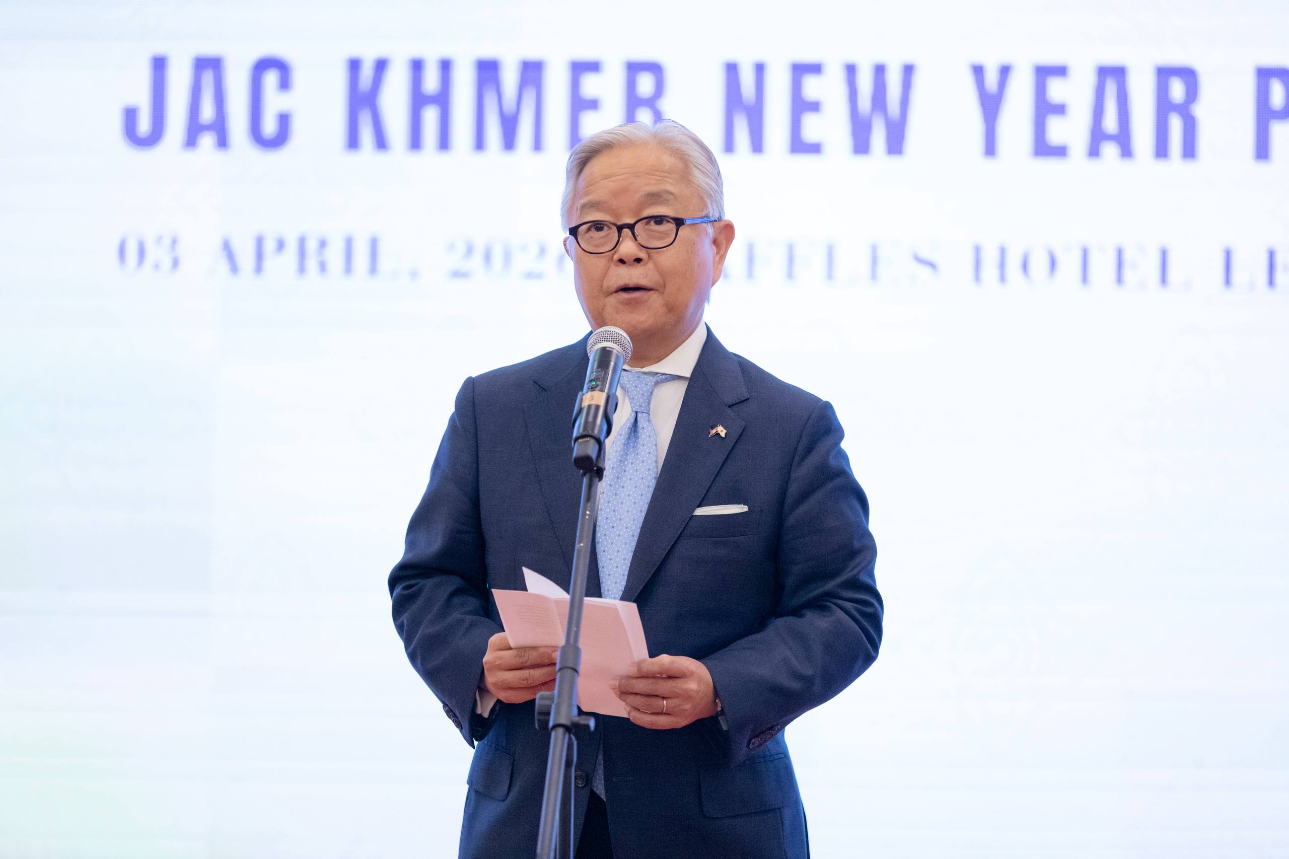 (ភ្នំពេញ)៖ ឯកឧត្តម ហេង សួរ រដ្ឋមន្ត្រីក្រសួងការងារ និងបណ្តុះបណ្តាលវិជ្ជាជីវៈបានអញ្ជើញចូលរួមកម្មវិធី អបអរសាទរបុណ្យចូលឆ្នាំថ្មីប្រពៃណីជាតិខ្មែរ ឆ្នាំ២០២៦ នៃសមាគមអតីតនិស្សិតខ្មែរពីប្រទេសជប៉ុន(JAC) នាល្ងាចថ្ងៃទី៣ ខែមេសា ឆ្នាំ២០២៦ នៅសណ្ឋាគារ Raffles Hotel Le Royal ដែលមានការអញ្ជើញចូលរួមពីថ្នាក់ដឹកនាំរាជរដ្ឋាភិបាល ឯកឧត្តម អ៊ូអិណុ អាត់ស៊ូស៊ី (UENO Atsushi) ឯកអគ្គរាជទូតជប៉ុនប្រចាំកម្ពុជា រួមទាំងថ្នាក់ដឹកនាំសមាគម និងអតីតនិស្សិតខ្មែរមកពីប្រទេសជប៉ុនសរុបជាង ១០០រូប។