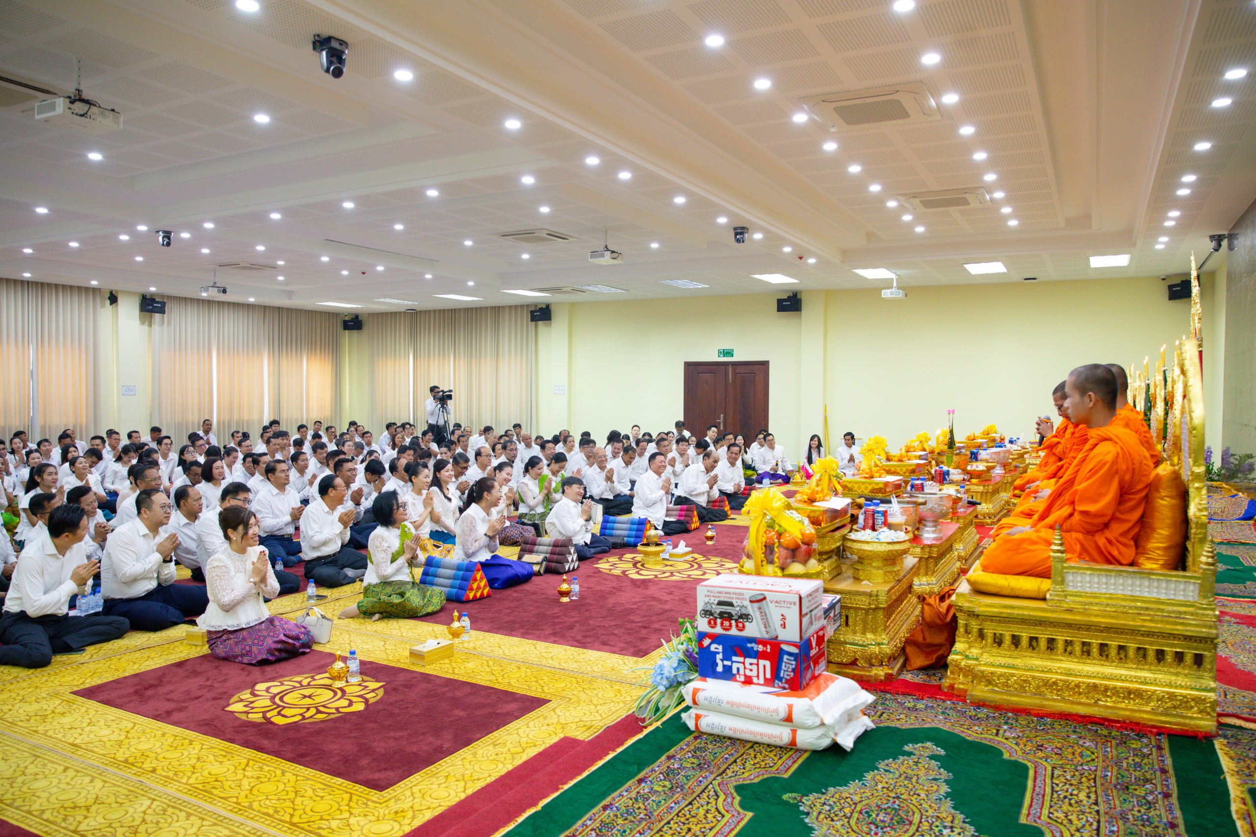 ថ្នាក់ដឹកនាំបានធ្វើកិច្ចនមស្ការព្រះរតនត្រ័យ ថ្វាយគ្រឿងសក្ការបូជា ទេយ្យទាន និង ទេយ្យវត្ថុ ដល់ព្រះសង្ឃ ព្រមទាំងនិមន្តព្រះសង្ឃសូត្រមន្តចម្រើនព្រះបរិត្ត ពុទ្ធជ័យមង្គល សិរីសួស្តី វិបុលសុខ សមាទានសីលទៅតាមគន្លងទំនៀមទម្លាប់ប្រពៃណីខ្មែរ និងព្រះពុទ្ធសាសនា។ ព្រះសង្ឃបាននិមន្តប្រោះព្រំទឹកមន្ត ដើម្បីបណ្តេញគ្រោះចង្រៃទាំងពួងផងដែរ។