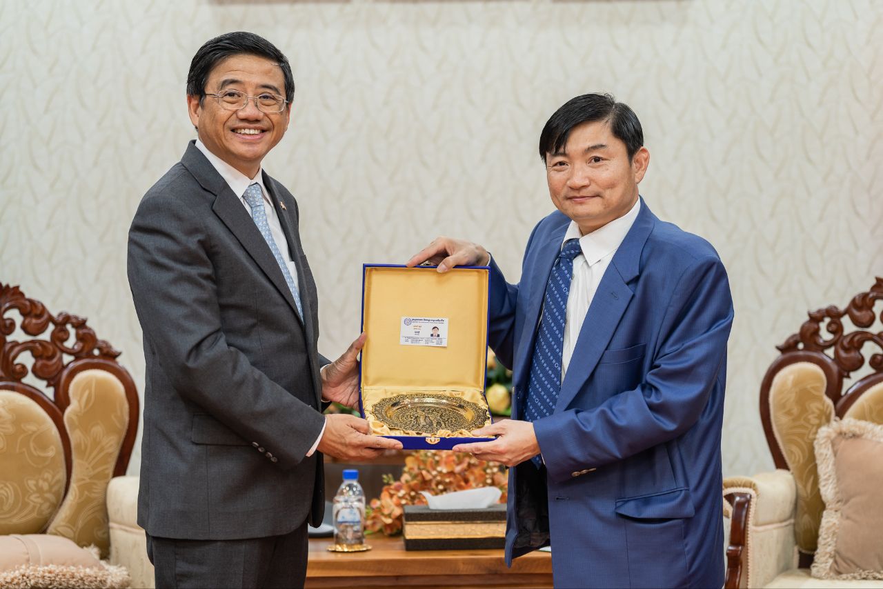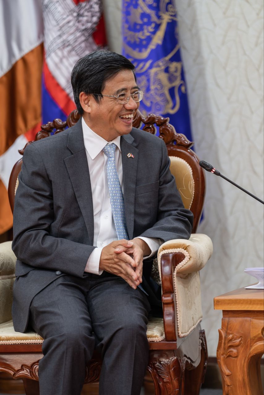 (ភ្នំពេញ)៖ ឯកឧត្តម ហេង សួរ រដ្ឋមន្ត្រីក្រសួងការងារ និងបណ្តុះបណ្តាលវិជ្ជាជីវៈ ក្នុងជំនួបជាមួយឯកឧត្តម ឆឺតកៀក អាត់ថាក័រ (Cherdkiat ATTHAKOR) អគ្គរាជទូតថៃប្រចាំព្រះរាជាណាចក្រកម្ពុជា បានឯកភាពបន្តពង្រឹងកិច្ចសហប្រតិបត្តិការលើវិស័យការងារ និងបណ្តុះបណ្តាលវិជ្ជាជីវៈ នៃប្រទេសទាំងពីរឱ្យកាន់តែមានប្រសិទ្ធភាពបន្ថែមទៀតដើម្បីរក្សាបានប្រយោជន៍ជូនពលរដ្ឋសងខាង។