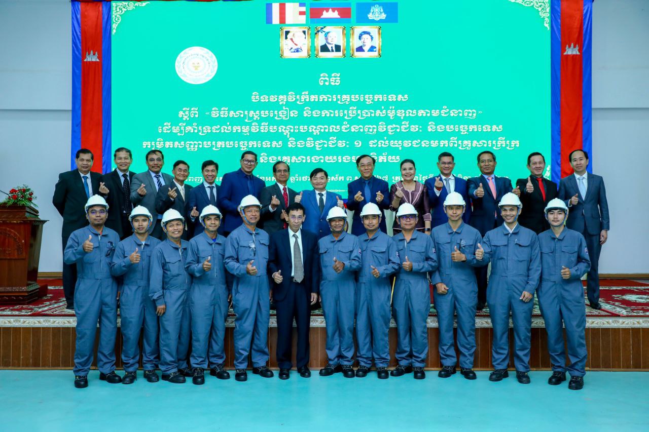 (ភ្នំពេញ)៖ ឯកឧត្តម ហេង សួរ រដ្ឋមន្ត្រីក្រសួងការងារ និងបណ្តុះបណ្តាលវិជ្ជាជីវៈ នៅថ្ងៃសៅរ៍ ទី៤ ខែវិច្ឆិកា ឆ្នាំ២០២៣នេះ បានអញ្ជើញបិទវគ្គវិក្រឹតការគ្រូបច្ចេកទេស ស្តីពី «វិធីសាស្ត្របង្រៀន និងការប្រើប្រាស់ម៉ូឌុលតាមជំនាញ» ដើម្បីគាំទ្រដល់កម្មវិធីបណ្តុះបណ្តាលជំនាញវិជ្ជាជីវៈ និងបច្ចេកទេសកម្រិតសញ្ញាបត្របច្ចេកទេស និងវិជ្ជាជីវៈ ១ ដល់យុវជនមកពីគ្រួសារក្រីក្រ និងគ្រួសារងាយរងហានិភ័យដែលធ្វើឡើងនៅវិទ្យាស្ថានជាតិពហុបច្ចេកទេសកម្ពុជា(NPIC)។