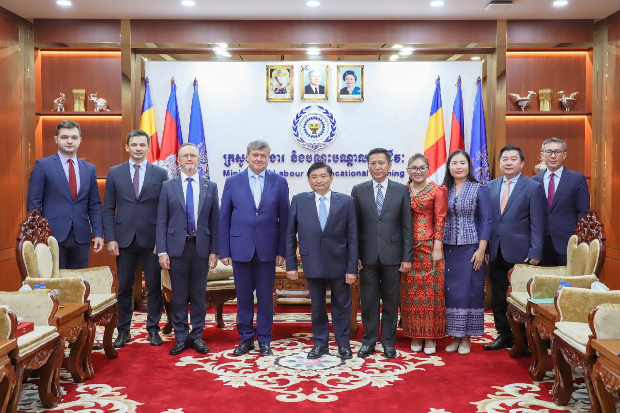 (ភ្នំពេញ)៖ ឯកឧត្តម ហេង សួរ រដ្ឋមន្ត្រីក្រសួងការងារ និងបណ្តុះបណ្តាលវិជ្ជាជីវៈ នៅរសៀលថ្ងៃទី១០ ខែមករា ឆ្នាំ២០២៤នេះ បានជួបពិភាក្សាការងារជាមួយឯកឧត្តម Anatoly Borovik ឯកអគ្គរដ្ឋទូតសហព័ន្ធរុស្ស៊ីប្រចាំនៅកម្ពុជា ដើម្បីពិភាក្សាលើកិច្ចសហការបណ្តុះបណ្តាលធនធានមនុស្សលើជំនាញបច្ចេកទេស និងវិជ្ជាជីវៈ សម្រាប់បំពេញតម្រូវការសេដ្ឋកិច្ចរបស់កម្ពុជា។