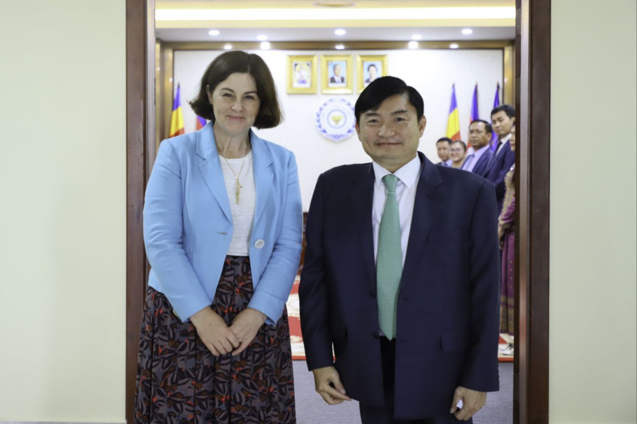 (ភ្នំពេញ)៖ លោកស្រី Rachel Thompson (រ៉ាឆេល ថមសុន) នាយកប្រតិបត្តិនៃក្រុមប្រឹក្សាភិបាល នៃធនគារអភិវឌ្ឍន៍អាស៊ី (ADB) នៅព្រឹកថ្ងៃអង្គារ ទី៦ ខែកុម្ភៈឆ្នាំ២០២៤នេះ បានកោតសរសើររាជរដ្ឋាភិបាលកម្ពុជាក្នុងអាណត្តិទី៧នេះ ចំពោះការដាក់ចេញនូវកម្មវិធីបណ្តុះបណ្តាលជំនាញបច្ចេកទេសវិជ្ជាជីវៈដល់យុវជនក្រុមគោលដៅមកពីគ្រួសារក្រីក្រ និងងាយរងហានិភ័យចំនួន១.៥លាននាក់។ ការថ្លែងយ៉ាងដូចនេះ ធ្វើឡើងក្នុងពេលដែលលោកស្រី អញ្ជើញជួបសម្តែងការគួរសម និងពិភាក្សាការងារជាមួយឯកឧត្តម ហេង សួរ រដ្ឋមន្ត្រីក្រសួងការងារ និងបណ្តុះបណ្តាលវិជ្ជាជីវៈ នៅទីស្តីការក្រសួង។