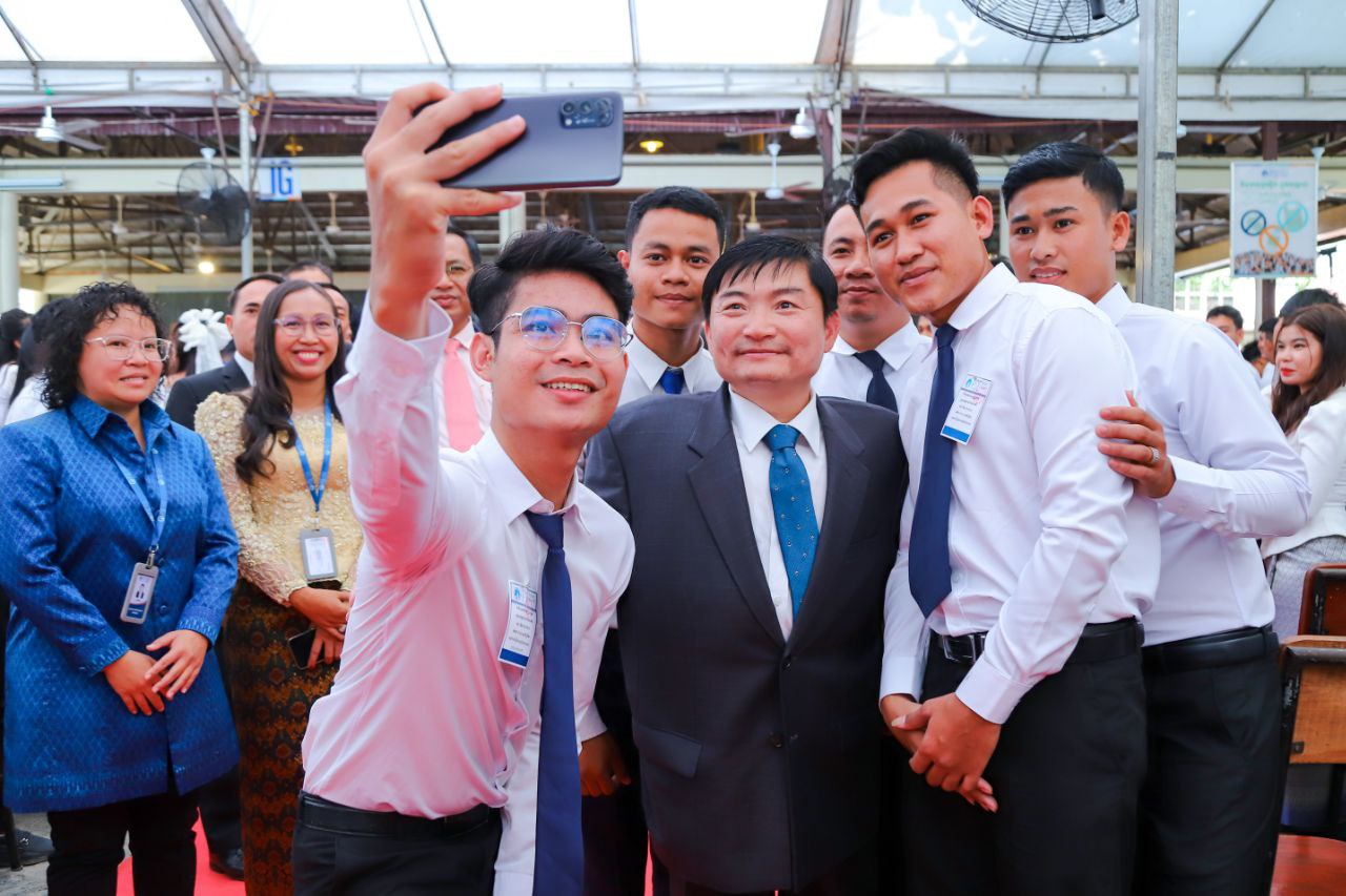 (ភ្នំពេញ)៖ ឯកឧត្តម ហេង សួរ រដ្ឋមន្ត្រីក្រសួងការងារ និងបណ្តុះបណ្តាលវិជ្ជាជីវៈ បានថ្លែងកោតសរសើរដល់វិទ្យាស្ថានប៉េ អេស អឺ(PSE) នៃអង្គការដើម្បីភាពញញឹមនៃកុមារ ចំពោះការជ្រើសរើសការបណ្តុះបណ្តាលជំនាញបច្ចេកទេសវិជ្ជាជីវៈដល់យុវជនកម្ពុជាដែលមានជីវភាពខ្វះខាតឱ្យមានជំនាញជាក់លាក់ក្នុងរយៈពេលខ្លីហើយទទួលបានឱកាសការងារសមរម្យដើម្បីលើកស្ទួយជីវភាពគ្រួសារ។ ការថ្លែងកោតសរសើរដូចនេះ គឺក្នុងពេលដែលឯកឧត្តមរដ្ឋមន្ត្រី បានអញ្ជើញជាអធិបតីក្នុងពិធីប្រគល់សញ្ញាបត្រជូនដល់សិស្ស និស្សិតរបស់វិទ្យាស្ថាន ប៉េ អេស អឺ នៃអង្គការដើម្បីភាពញញឹមនៃកុមារ នាព្រឹកថ្ងៃអង្គារ ទី១២ ខែមីនា ឆ្នាំ២០២៤នេះ។