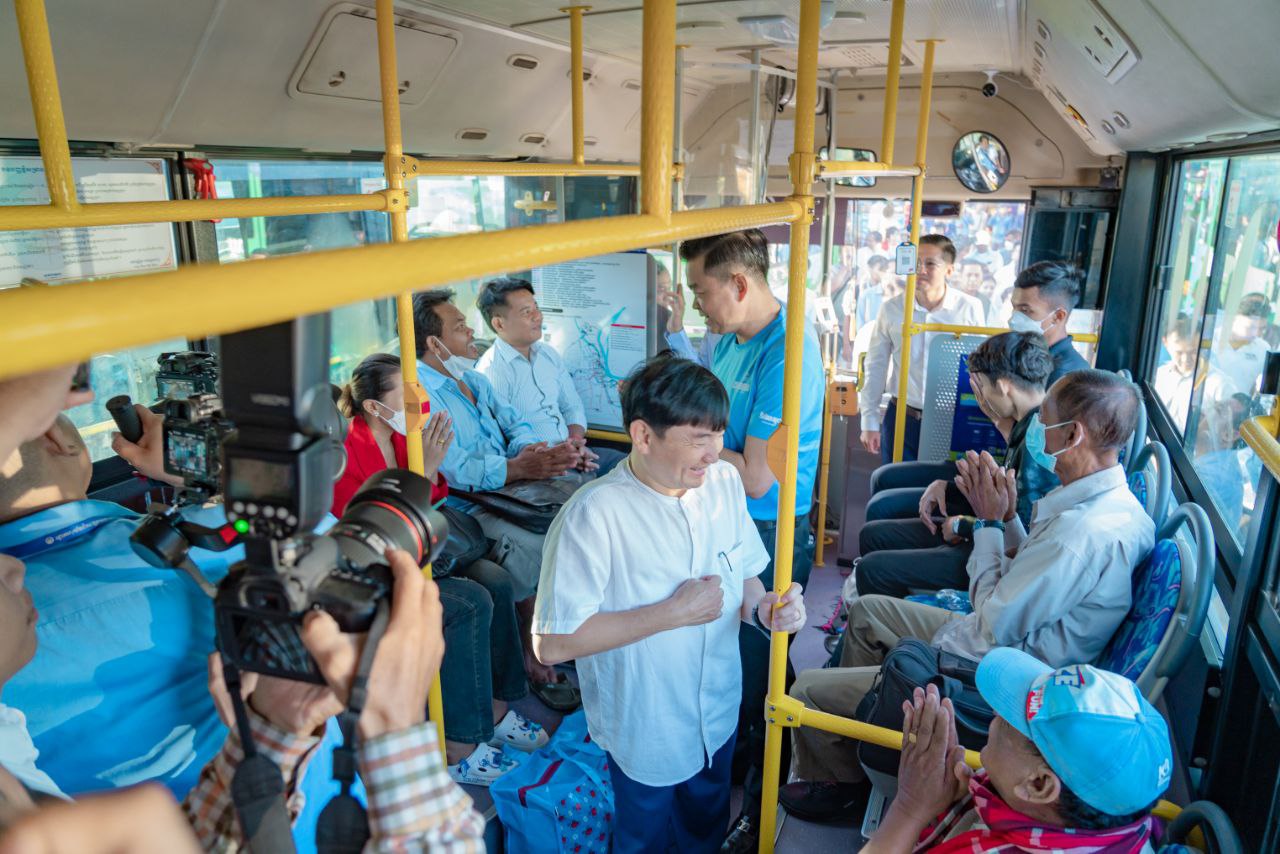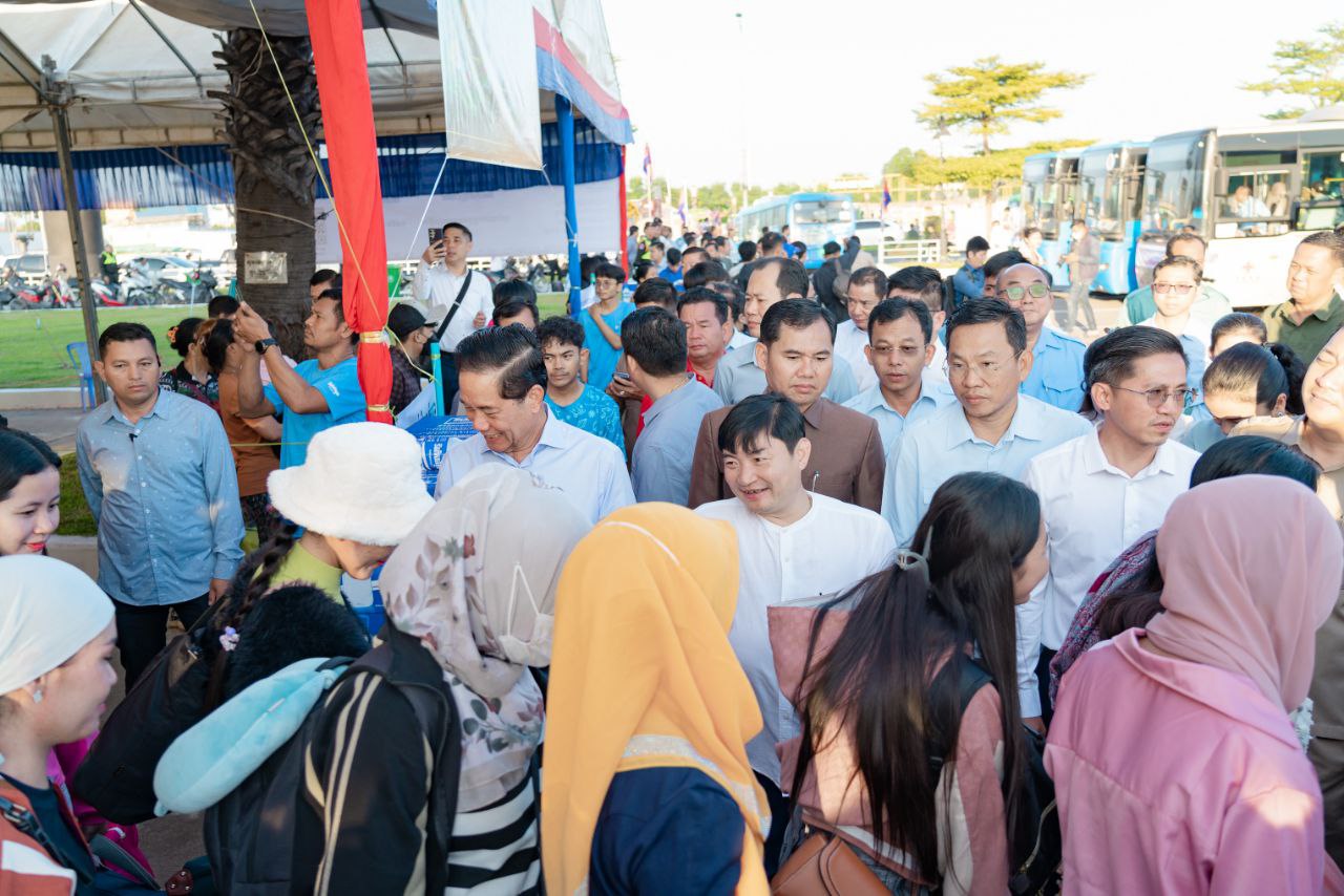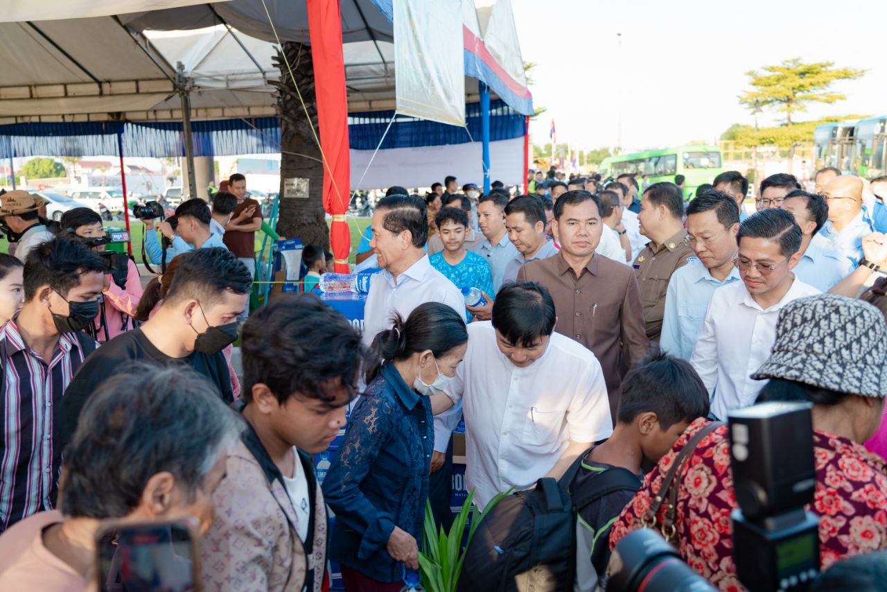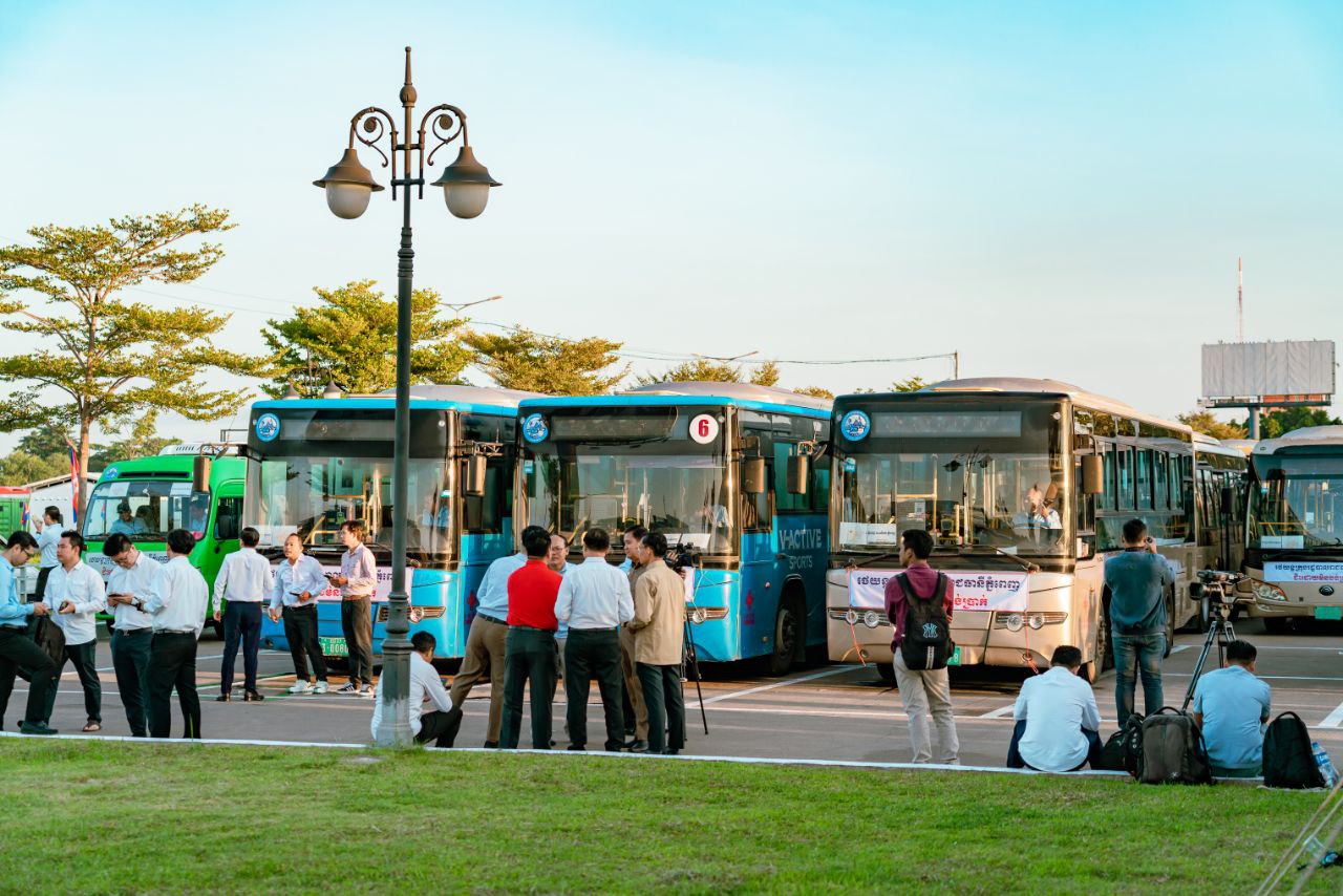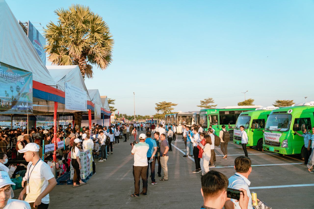 (ភ្នំពេញ)៖ នៅព្រឹកថ្ងៃទី២៩ ខែកញ្ញា ឆ្នាំ ២០២៤នេះ ឯកឧត្តម ហេងសួរ រដ្ឋមន្ត្រីក្រសួងការងារ និងបណ្ដុះបណ្ដាលវិជ្ជាជីវៈ រួមនិង ឯកឧត្តម ឃួង ស្រេង អភិបាលនៃគណៈអភិបាលរាជធានីភ្នំពេញ បានអញ្ជើញជូនដំណើរបងប្អូន កម្មករ-និយោជិត ប្រជាពលរដ្ឋ ធ្វើដំណើរទៅកាន់ស្រុកកំណើតតាមរយៈរថយន្តក្រុងរបស់សាលារាជធានីភ្នំពេញ (City Bus) ដោយជិះមិនបង់ប្រាក់។