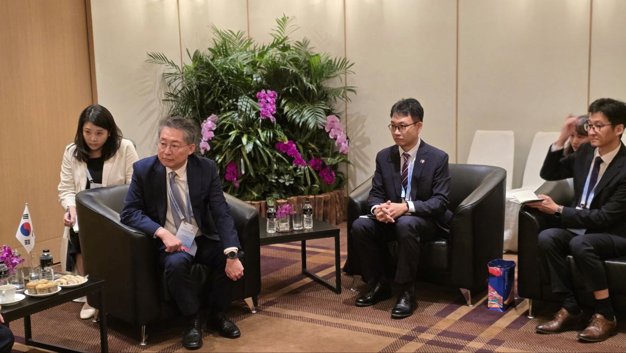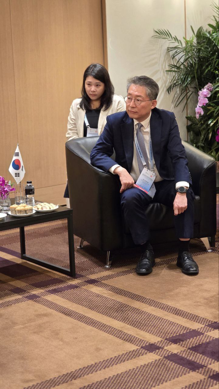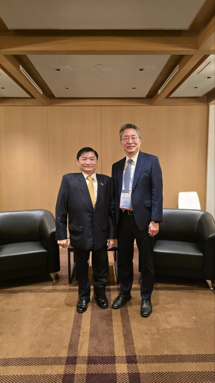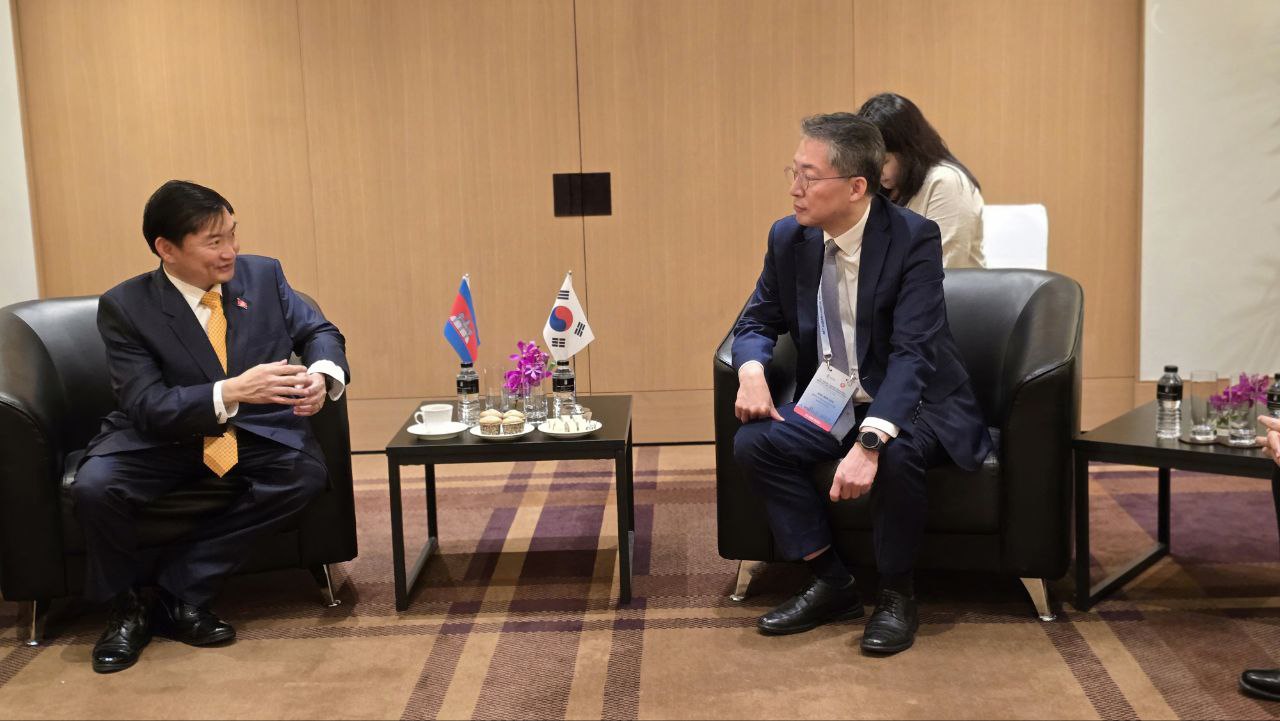 ឯកឧត្តម ហេង សួរ ជួបពិភាក្សាការងារជាមួយអនុរដ្ឋមន្ត្រី ក្រសួងមុខរបរ និងការងារនៃសាធារណរដ្ឋកូរ៉េ  អំឡុងពេលកិច្ចប្រជុំរដ្ឋមន្រ្តីការងារអាស៊ានលើកទី២៨ និងកិច្ចប្រជុំពាក់ព័ន្ធ