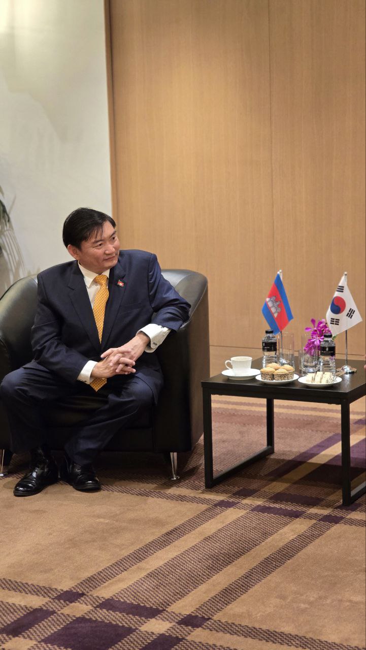 នៅក្នុងជំនួបទ្វេភាគីនេះ ឯកឧត្តមរដ្ឋមន្ត្រី បានថ្លែងអំណរគុណ ចំពោះរដ្ឋាភិបាលនៃសាធារណរដ្ឋកូរ៉េ ដែលតែងតែយកចិត្តទុកដាក់ដល់ពលករទេសន្តរប្រវេសន៍កម្ពុជា ដែលកំពុងបម្រើការងារនៅក្នុងសាធារណរដ្ឋកូរ៉េ ក៏ដូចជាការជួយគាំទ្រ និងជំរុញការអភិវឌ្ឍជំនាញបណ្ដុះបណ្តាលវិជ្ជាជីវៈ ពិសេសលើវិស័យឧស្សាហកម្ម និងច្បាប់សុវត្ថិភាពនិងសុខភាពការងារ (Occupational Safety and Health - OSH) តាមរយៈទីភ្នាក់ងារសេវាមុខរបរ និងការងារកូរ៉េ (Korea Labor and Employment Service - KLES) និងតាមរយៈប្រព័ន្ធអនុញ្ញាតមុខរបរ (Employment Permit System - EPS)។ ឯកឧត្តមរដ្ឋមន្រ្តី ក៏បានស្នើឱ្យរដ្ឋាភិបាលកូរ៉េពិចារណាបង្កើនកូតា (Quota) និងឱកាសការងារបន្ថែមទៀតសម្រាប់ពលករជំនាញកម្ពុជា ដើម្បីអាចឱ្យពលករជំនាញទាំងនោះអាចចូលរួមចំណែកក្នុងការអភិវឌ្ឍកម្ពុជា ពេលចប់អាណត្តិការងារនៅសាធារណរដ្ឋកូរ៉េ។