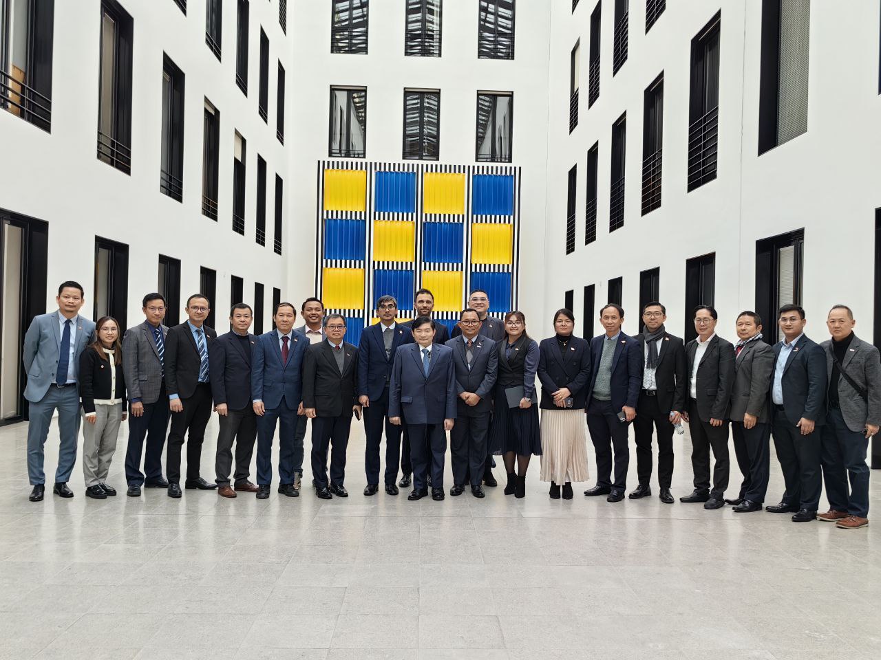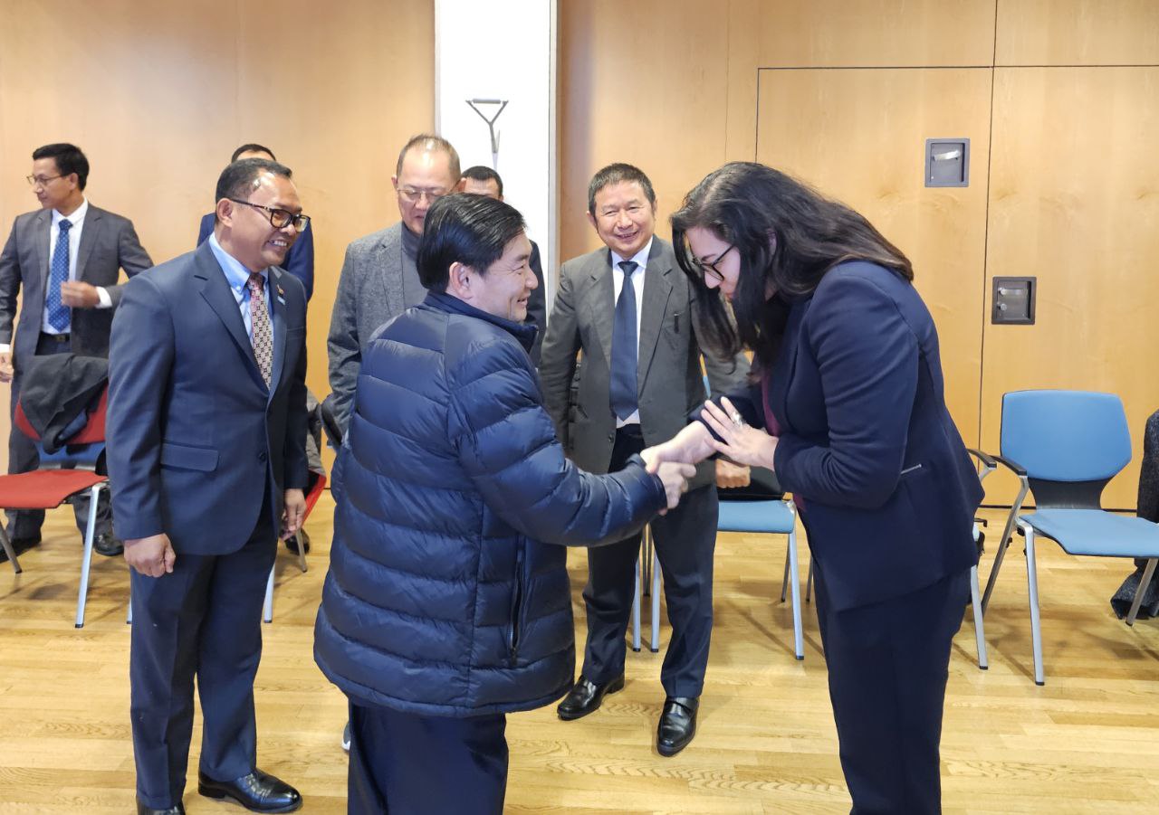 (អាល្លឺម៉ង់)៖ តបតាមការអញ្ជើញរបស់ទីភ្នាក់ងារសហប្រតិបត្តិការអាល្លីម៉ង់ (GIZ) ឯកឧត្តម ហេង សួរ រដ្ឋមន្ត្រីក្រសួងការងារ និងបណ្តុះបណ្តាលវិជ្ជាជីវៈ បានដឹកនាំគណៈប្រតិភូអន្តរក្រសួងកម្ពុជាទៅបំពេញទស្សនកិច្ចនៅសាធារណរដ្ឋសហព័ន្ធអាល្លឺម៉ង់ ចាប់ពីថ្ងៃទី១៣ រហូតដល់ថ្ងៃទី១៧ ខែមករា ឆ្នាំ២០២៥។ ដំណើរទស្សនកិច្ចនេះ គឺដើម្បីស្វែងយល់អំពីគោលនយោបាយ និងច្បាប់នានាពាក់ព័ន្ធនឹងវិស័យវាយនភណ្ឌ កាត់ដេរ ស្បែកជើង និងផលិតផលធ្វើដំណើរនិងកាបូប នៅក្នុងសហគមន៍អឺរ៉ុប និងអាល្លឺម៉ង់។