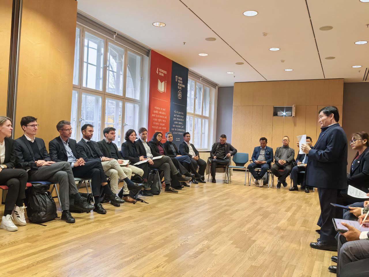 ក្នុងដំណើរទស្សនកិច្ចនេះ គណៈប្រតិភូអន្តរក្រសួងកម្ពុជា បានជួបពិភាក្សាការងារជាមួយតំណាងគណៈកម្មការអឺរ៉ុប (EU Commission), តំណាងនៃក្រសួងការងារ និងសង្គមកិច្ចអាល្លឺម៉ង់, តំណាងនៃក្រសួងសហព័ន្ធសម្រាប់កិច្ចសហប្រតិបត្តិការនិងអភិវឌ្ឍន៍សេដ្ឋកិច្ចអាល្លឺម៉ង់, តំណាង IndustriAll, តំណាងសហព័ន្ធនិយោជក, សហព័ន្ធសហជីពអាល្លឺម៉ង់, តំណាងស្ថាប័ន ACT, និងក្រុមហ៊ុនម្ចាស់ម៉ាកសំខាន់ៗមួយចំនួនរបស់អាល្លឺម៉ង់ ដែលកំពុងបញ្ជាទិញផលិតផលវាយនភណ្ឌ កាត់ដេរ ស្បែកជើង ផលិតផលធ្វើដំណើរនិងកាបូបពីកម្ពុជា។