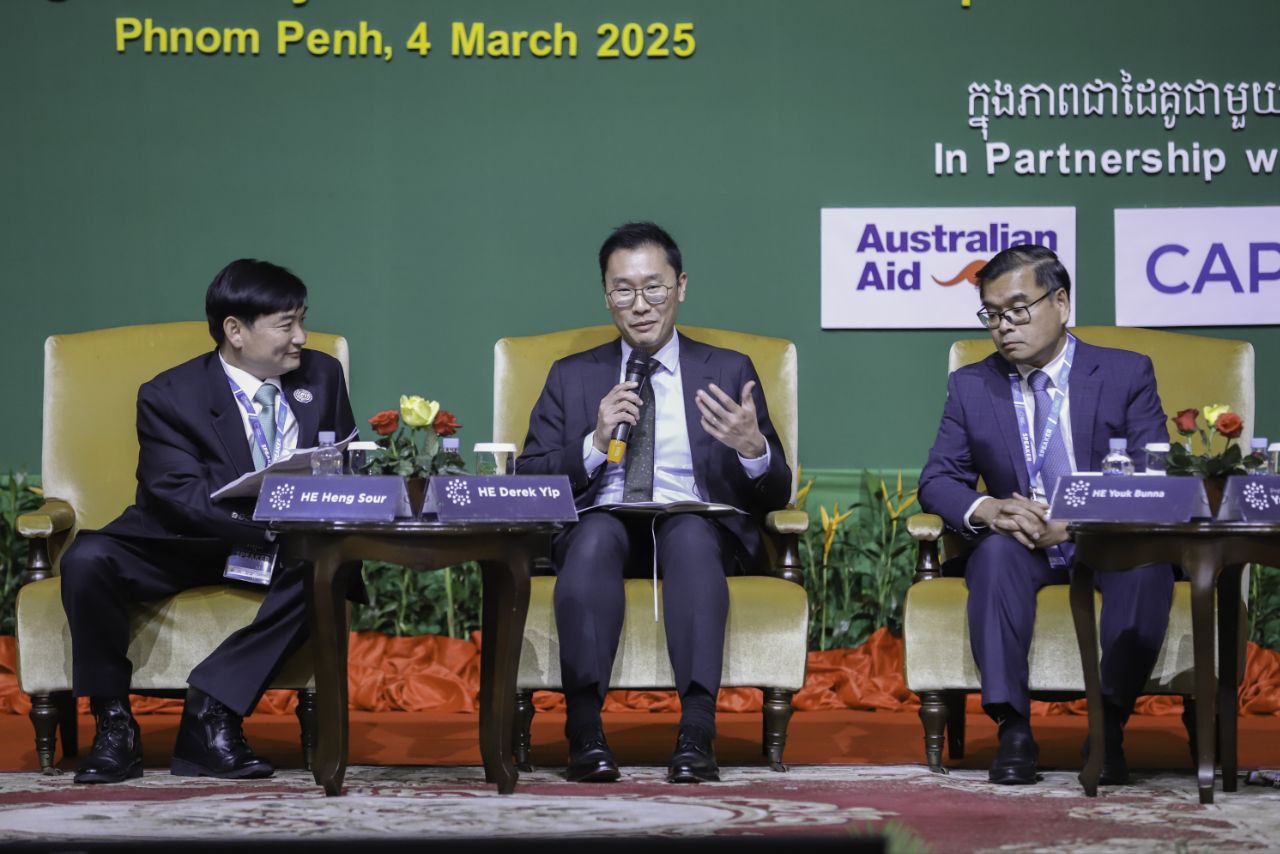 ការគូសបញ្ជាក់នូវគន្លឹះសំខាន់ៗនេះ គឺនៅក្នុងឱកាសដែលឯកឧត្តម ហេង សួរ រដ្ឋមន្ត្រីក្រសួងការងារ និងបណ្តុះបណ្តាលវិជ្ជាជីវៈ បានអញ្ជើញចូលរួមជាវាគ្មិនក្នុងកិច្ចពិភាក្សា ស្តីពី "បញ្ហាប្រឈមនៃរចនាសម្ព័ន្ធ និងរបៀបវារៈកំណែទម្រង់បន្ទាន់សម្រាប់កំណើនរយៈពេលវែងដោយគុណភាព" នាថ្ងៃទី៤ ខែមីនា ឆ្នាំ២០២៥ នៅសណ្ឋាគារសុខាភ្នំពេញ ដោយមានវត្តមានរបស់ ឯកឧត្តម Derek Yip ឯកអគ្គរដ្ឋទូតអូស្ត្រាលី ប្រចាំប្រទេសកម្ពុជា ជាប្រធានវគ្គពិភាក្សា រួមជាមួយវាគ្មិនផ្សេងទៀត គឺឯកឧត្តម យក់ ប៊ុនណា រដ្ឋលេខាធិការប្រចាំការនៃក្រសួងមុខងារសាធារណៈ, លោកជំទាវឧកញ៉ា កែវ មុំ ស្ថាបនិកក្រុមហ៊ុន លីលី ហ៊្វូដ អ៊ិនដាសទ្រី ខូ អិលធីឌី, សាស្ត្រាចារ្យ Yasuyuki Sawada សាស្ត្រាចារ្យនៃសាកលវិទ្យាល័យតូក្យូ និងជាអតីតប្រធានសេដ្ឋវិទូនៃធនាគារអភិវឌ្ឍន៍អាស៊ី, លោកបណ្ឌិត សុង សុភក្តិ នាយកប្រតិបត្តិរង និងអ្នកស្រាវជ្រាវជាន់ខ្ពស់នៃវិទ្យាស្ថាន CDRI។